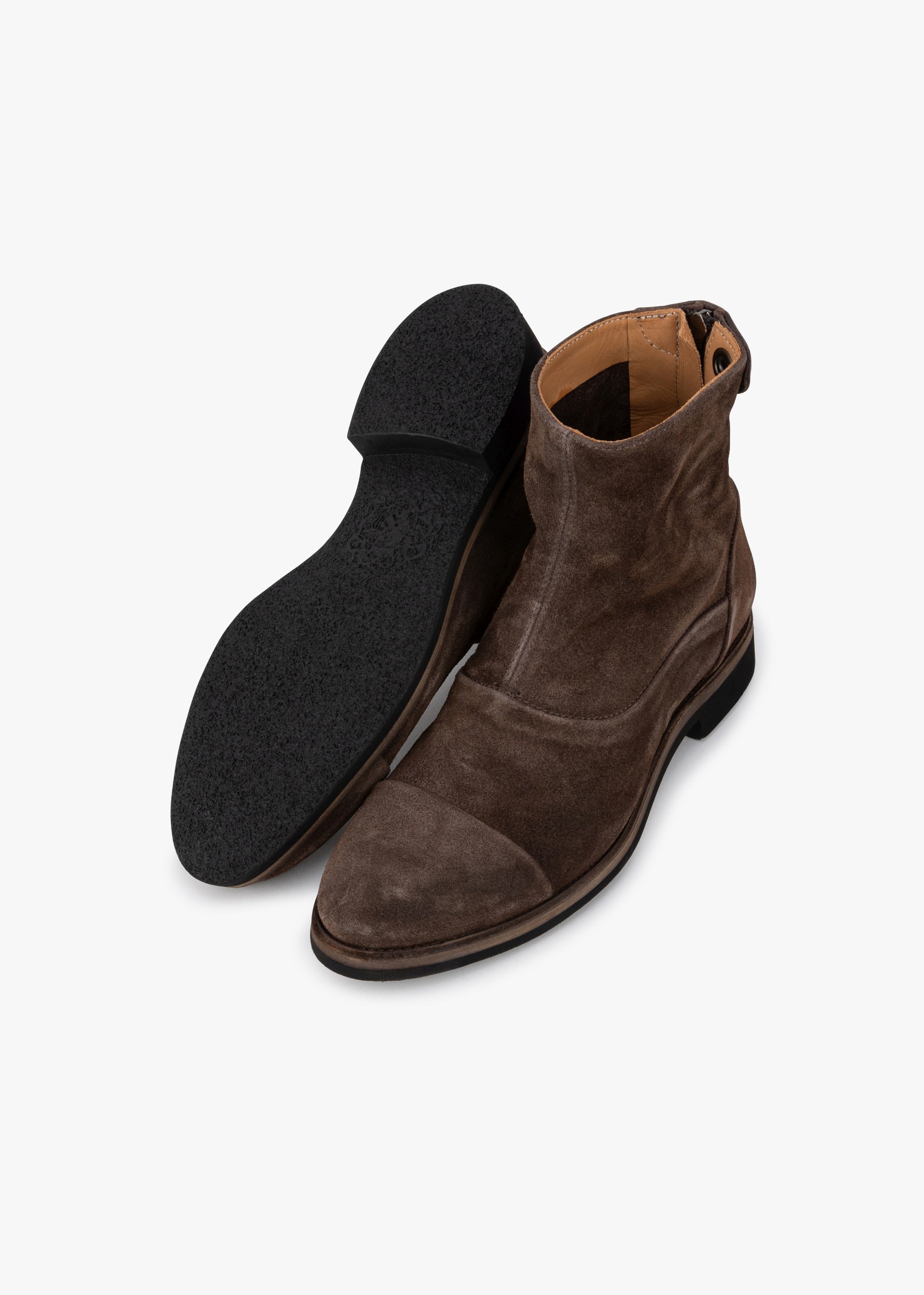 Handmade ankle boots 'Camil 70009' by Alberto Fasciani made of high-quality suede, close with a zipper at the heel and a snap fastener.