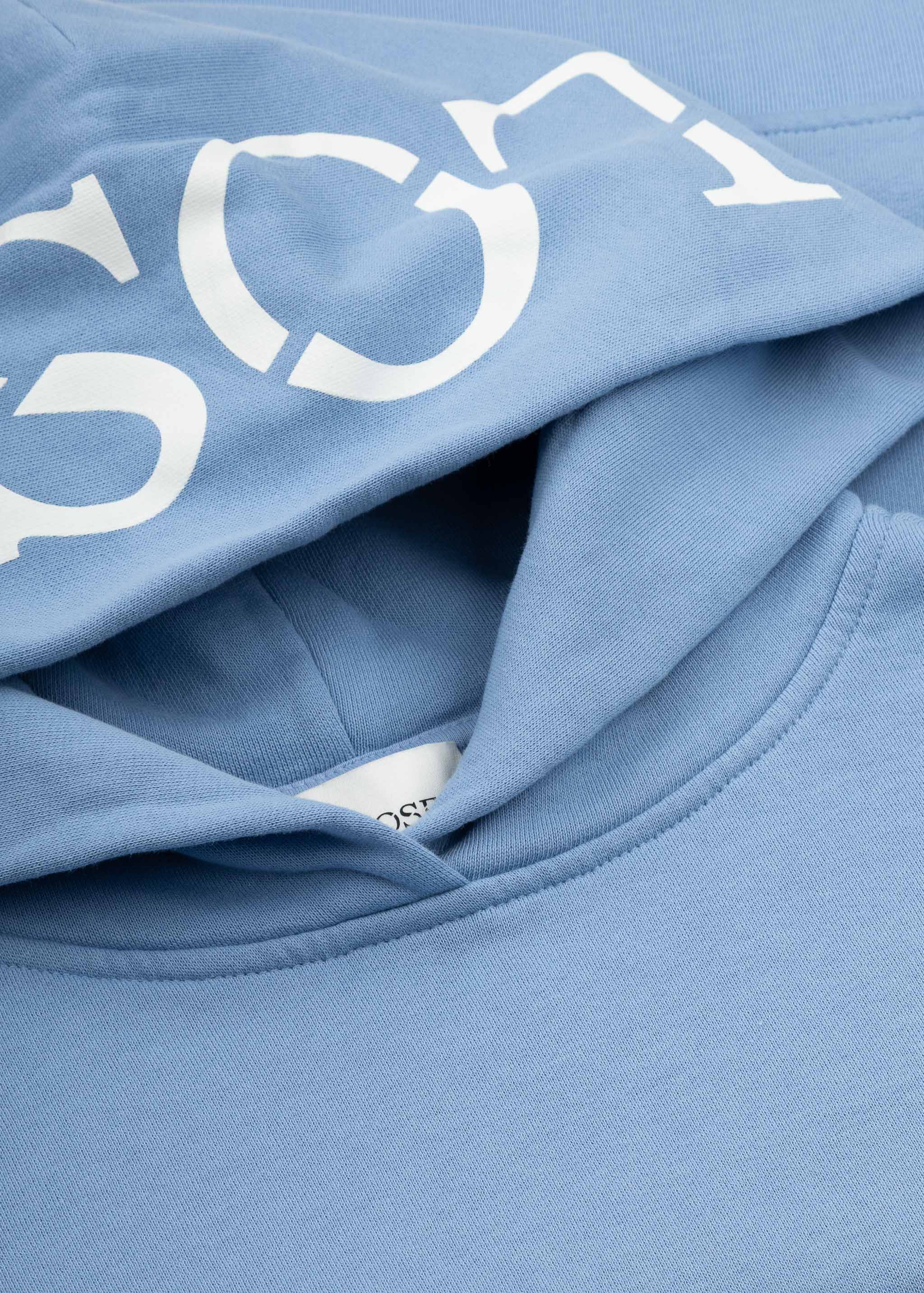 Loose-fitting sweater from Closed made of soft organic cotton, hood with logo print, dropped shoulders, long sleeves, side pockets, ribbed cuffs and hem, fluffy interior, straight hem.