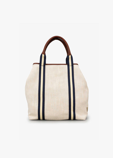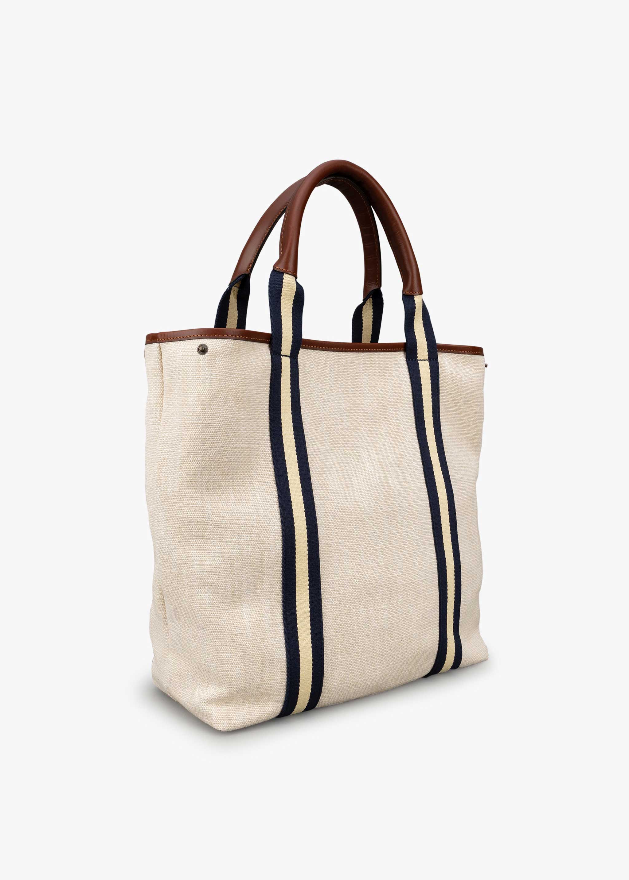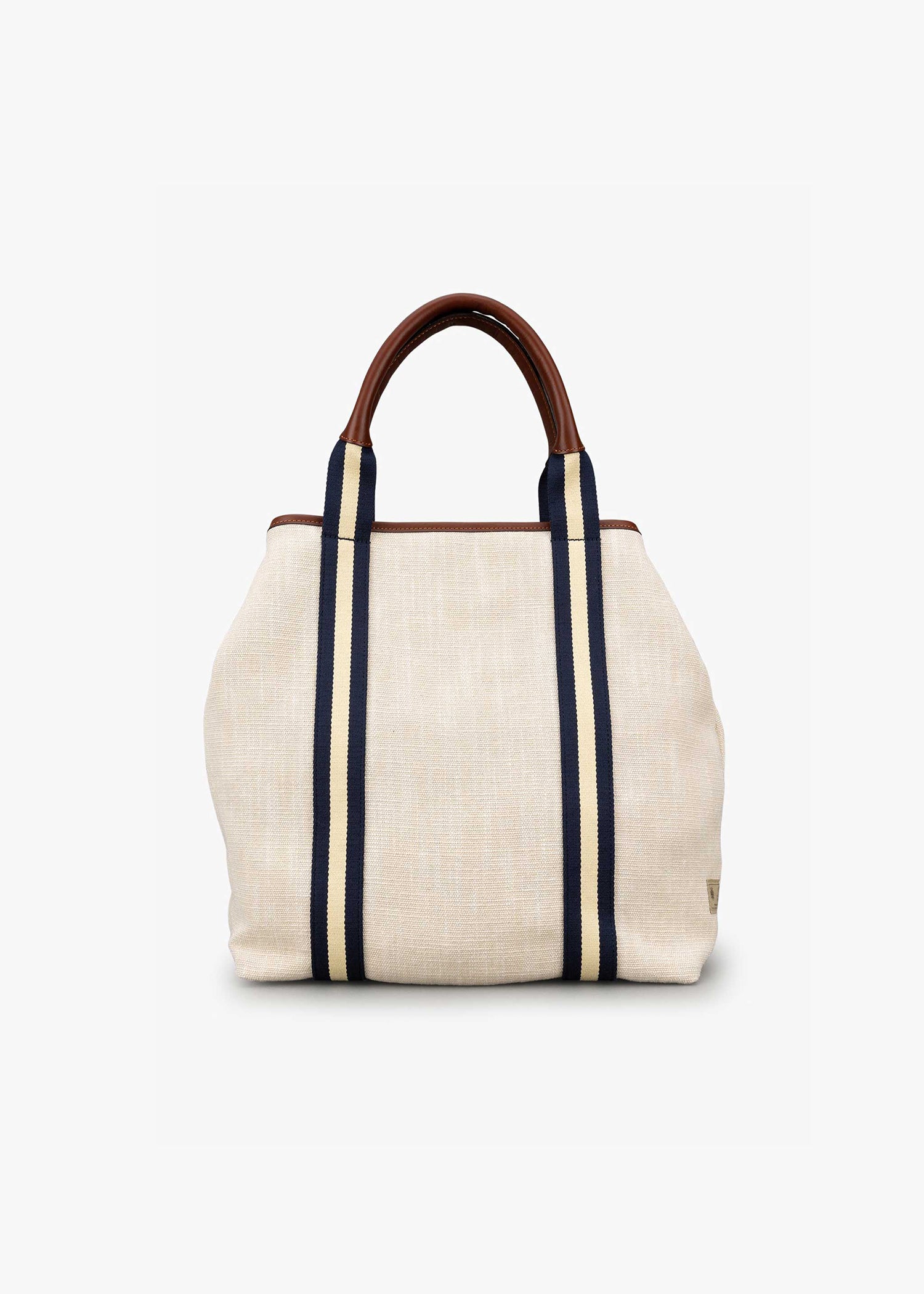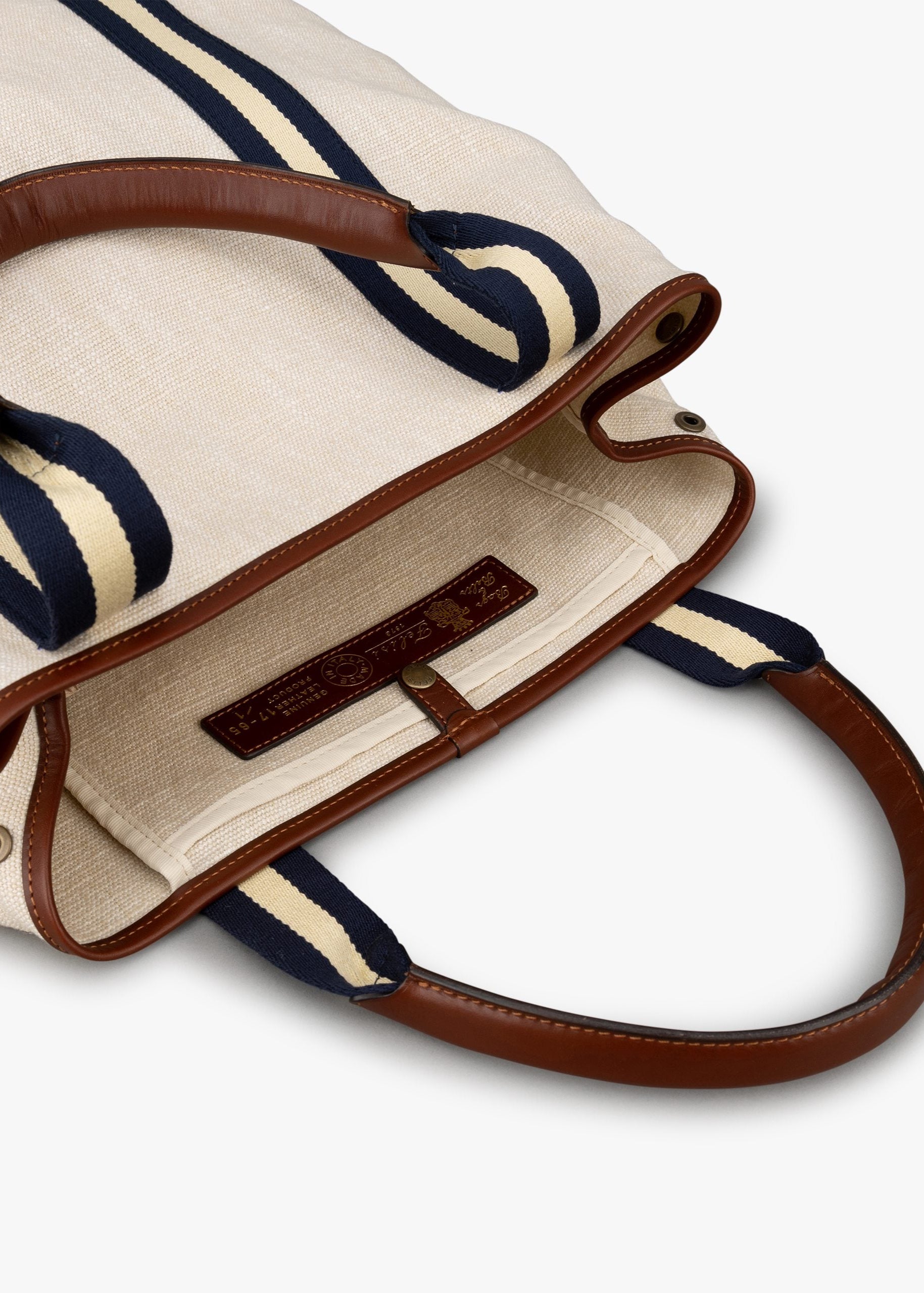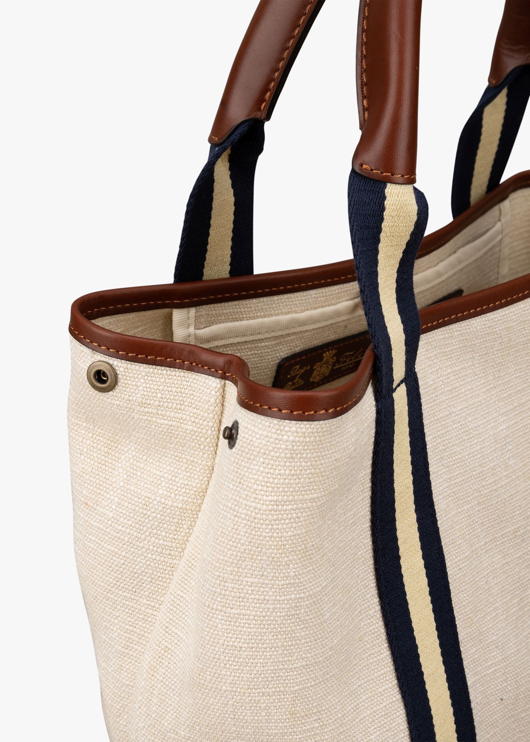 Tote bag by Felisi made of canvas, large inside compartment, a small compartment with snap fastener, leather handle.