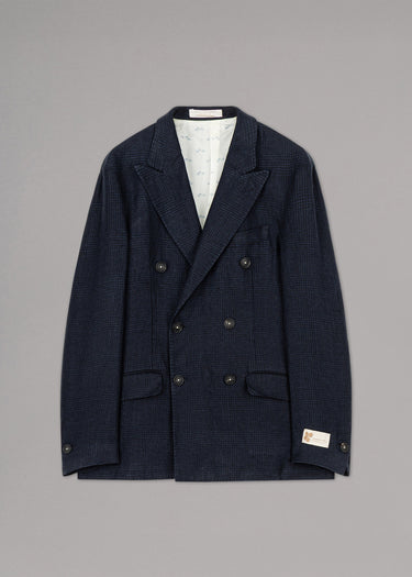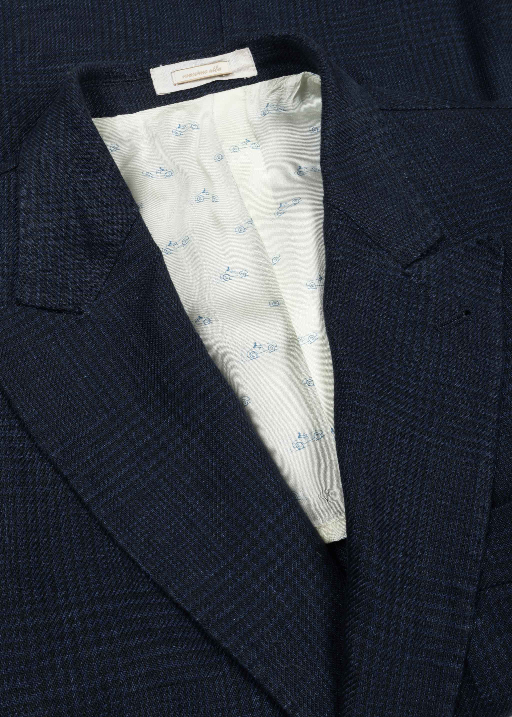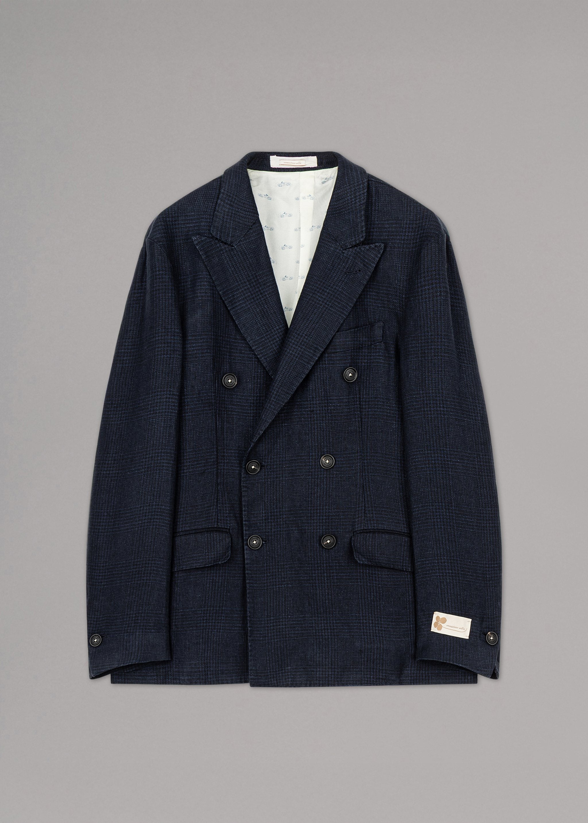 Double-breasted 'Brando' jacket by Massimo Alba made of cotton, peaked lapel, long sleeves with buttoned cuffs, one breast pocket, two flap pockets, two inside pockets, partially lined construction, straight hem with walking vents.
