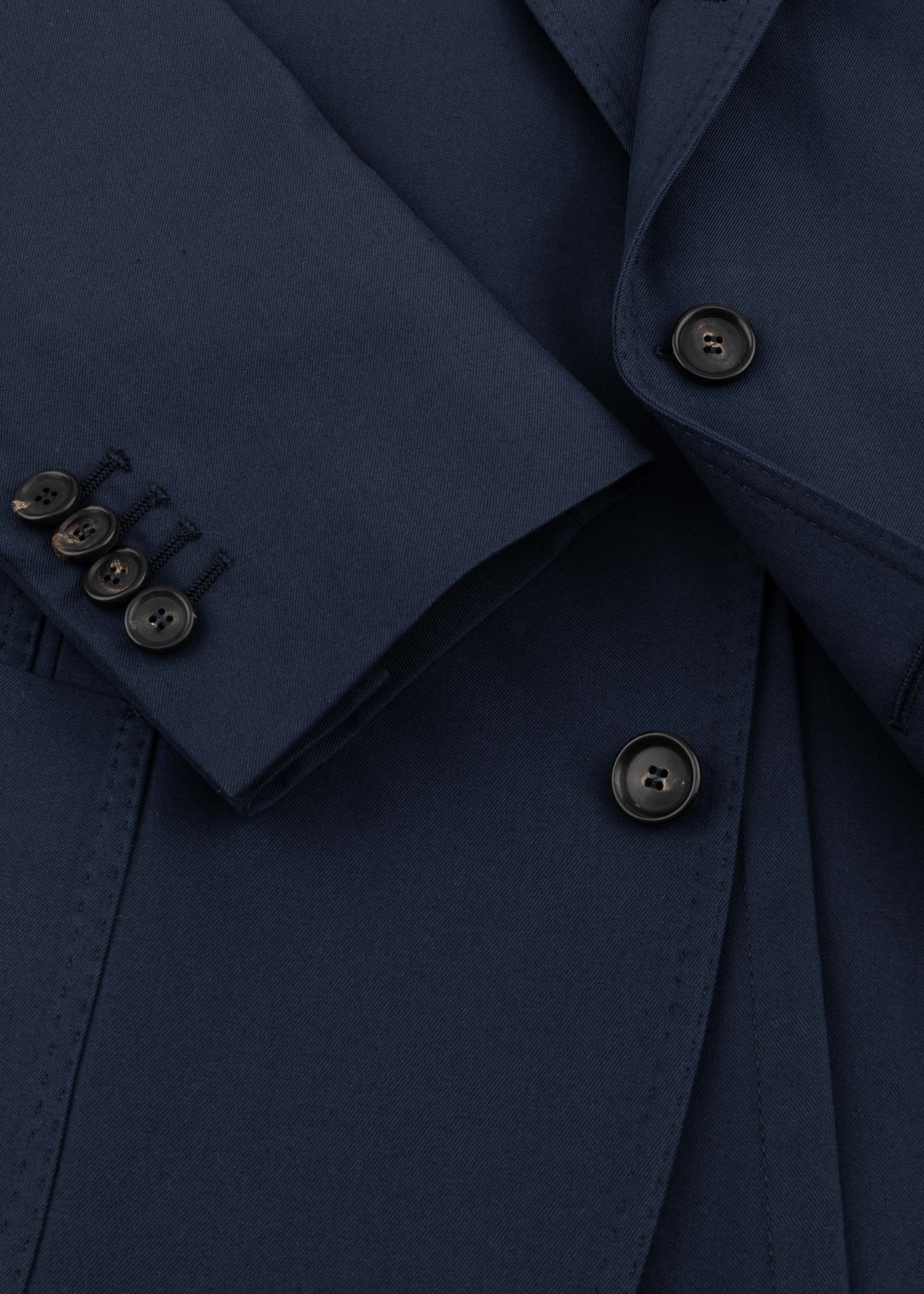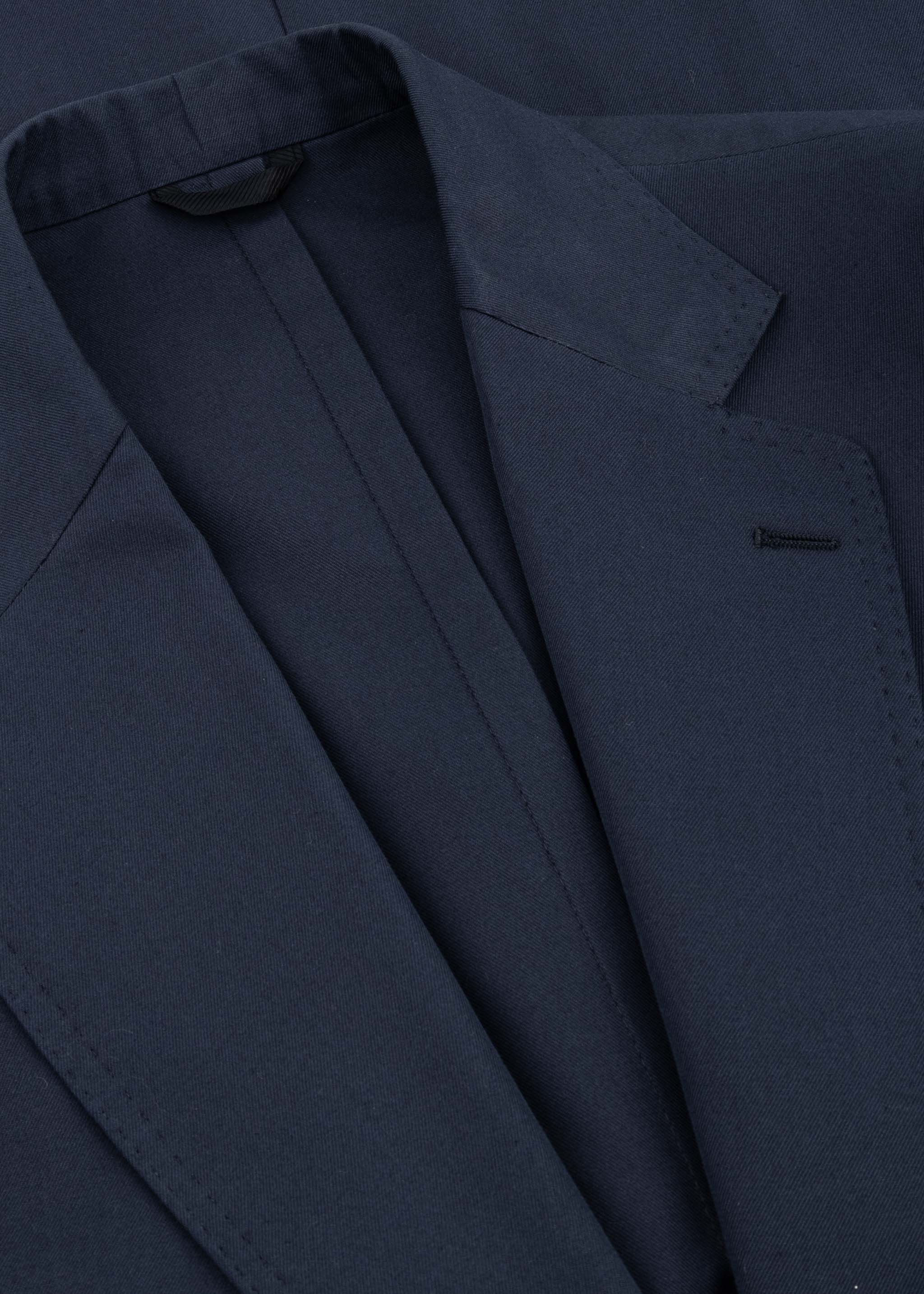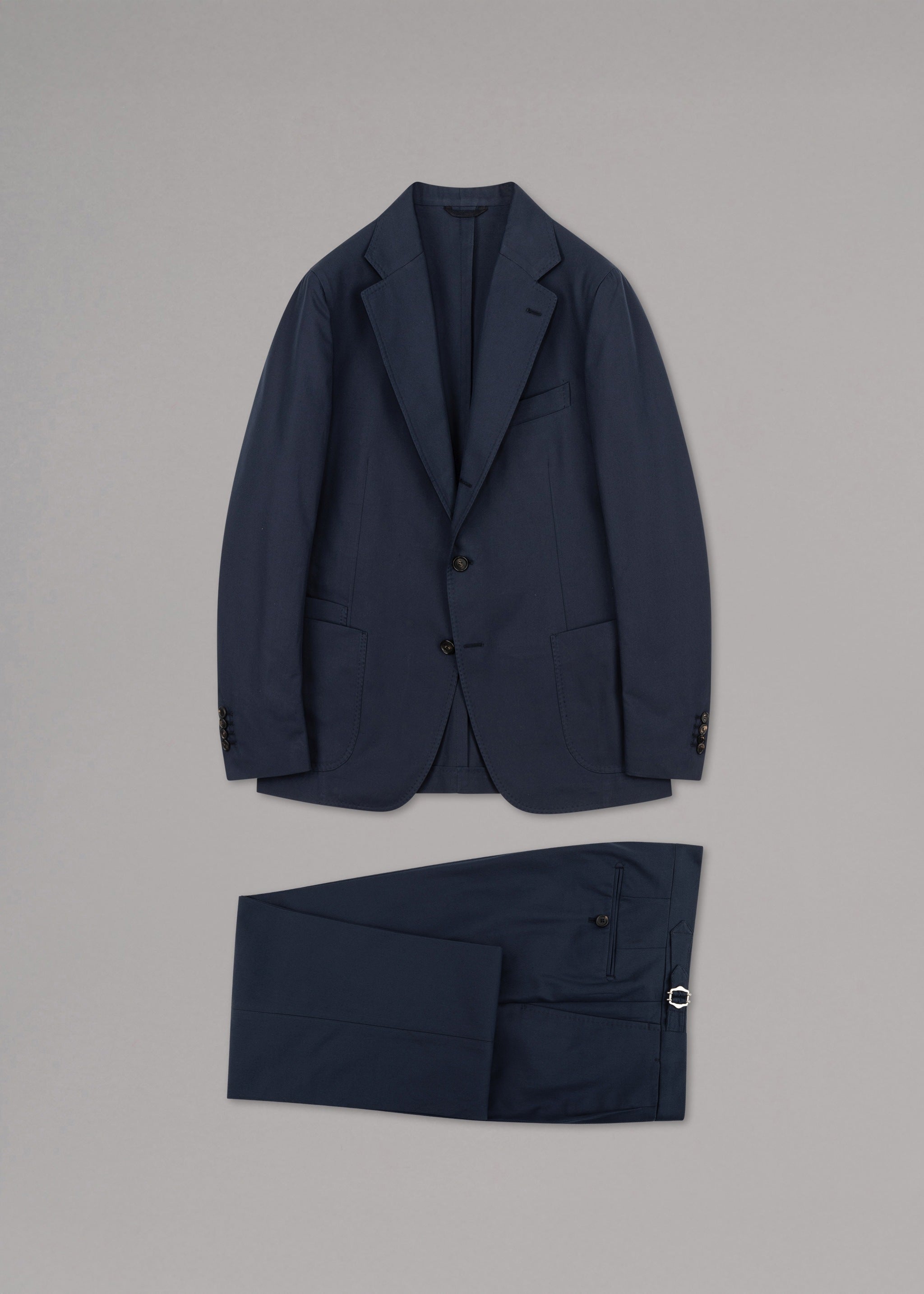 Single-breasted 'Posillipo' suit by De Petrillo, notched lapel, one breast pocket, two patch pockets, three inside pockets, long sleeves with buttoned cuffs, straight hem with walking slits, partially lined finish.