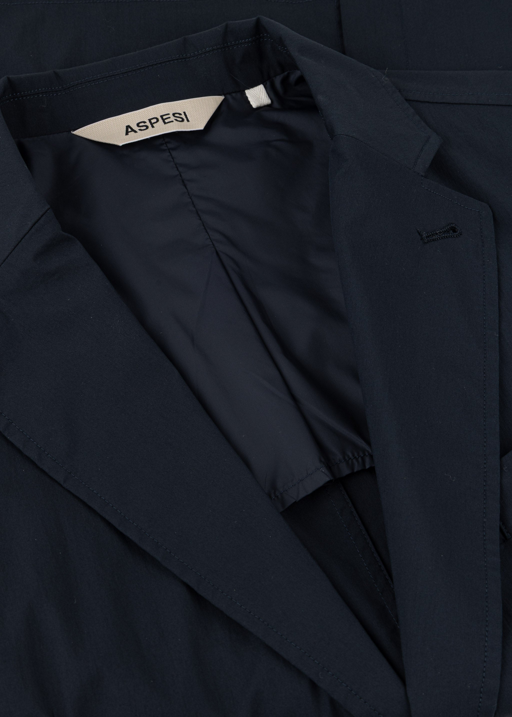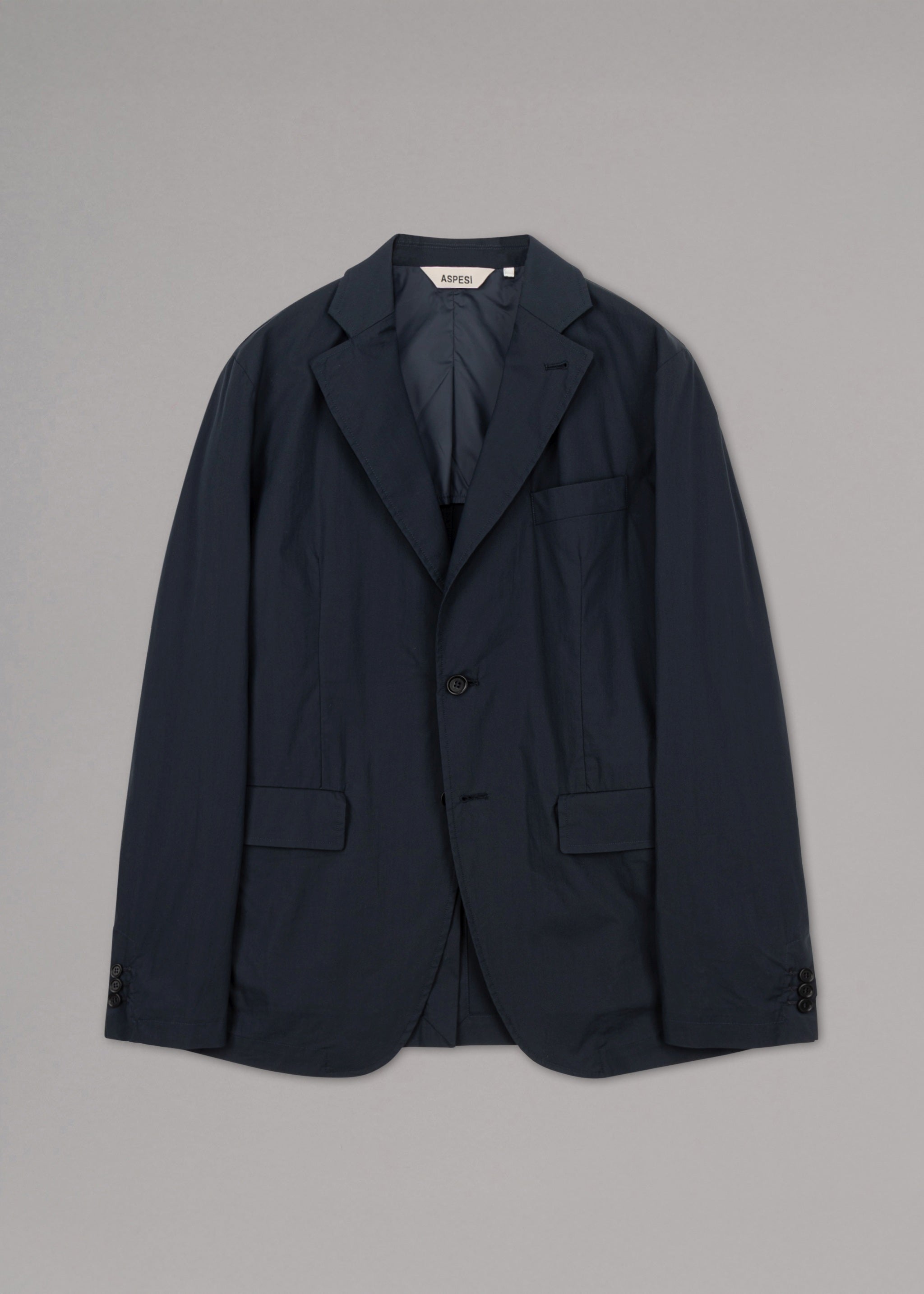 Regular-fit blazer from Aspesi in a light technical material blend, notched lapels, long sleeves, one breast pocket, two flap pockets, one interior pocket, rounded hem with back vent, partially lined, soft feel, slight sheen.