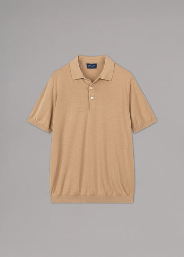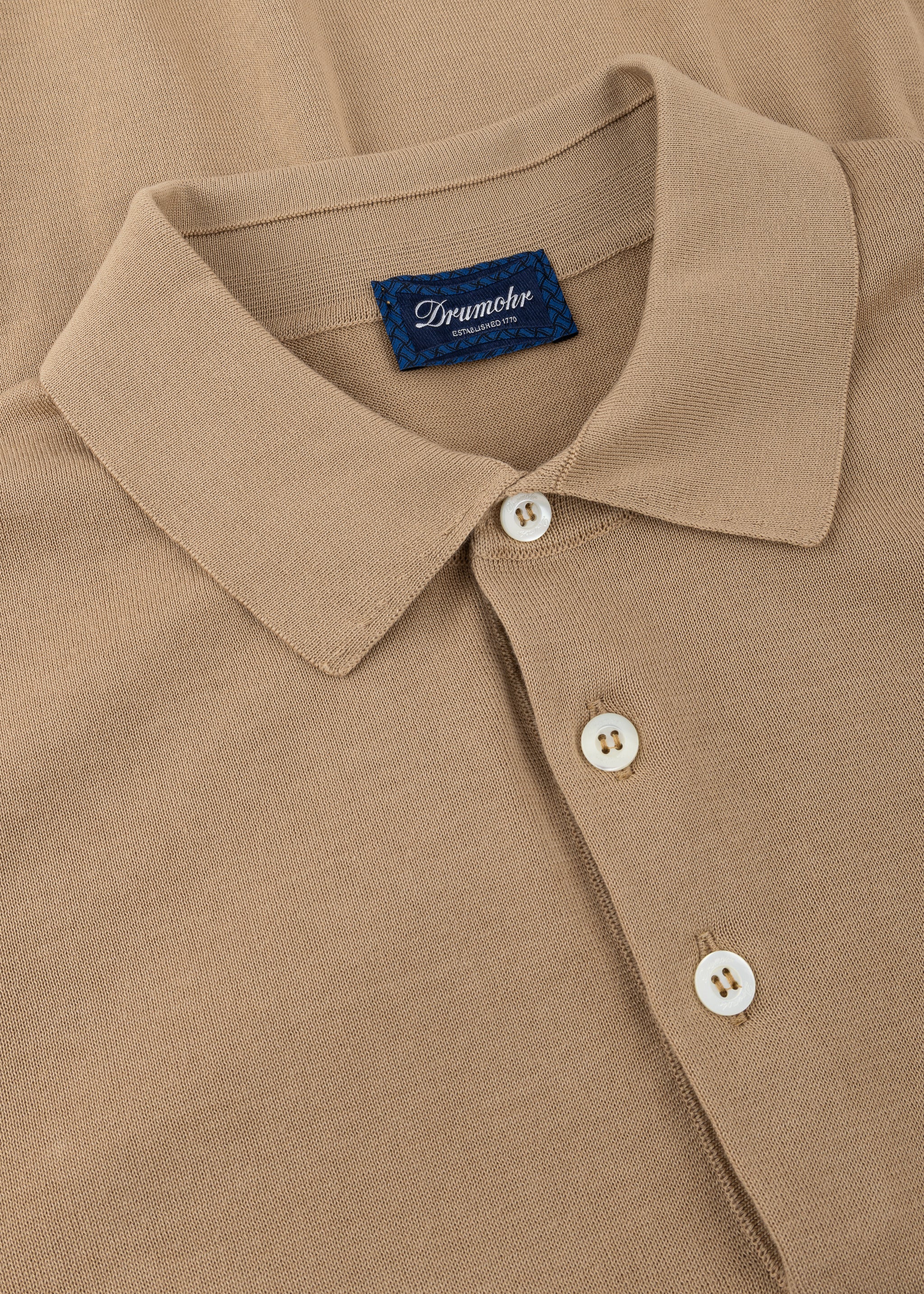 Fine knit polo shirt from the Italian brand Drumohr made of fine cotton, classic collar with short button placket, straight hem, ribbed cuffs, smooth feel.