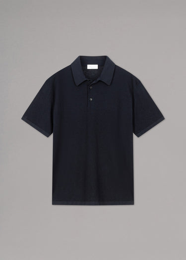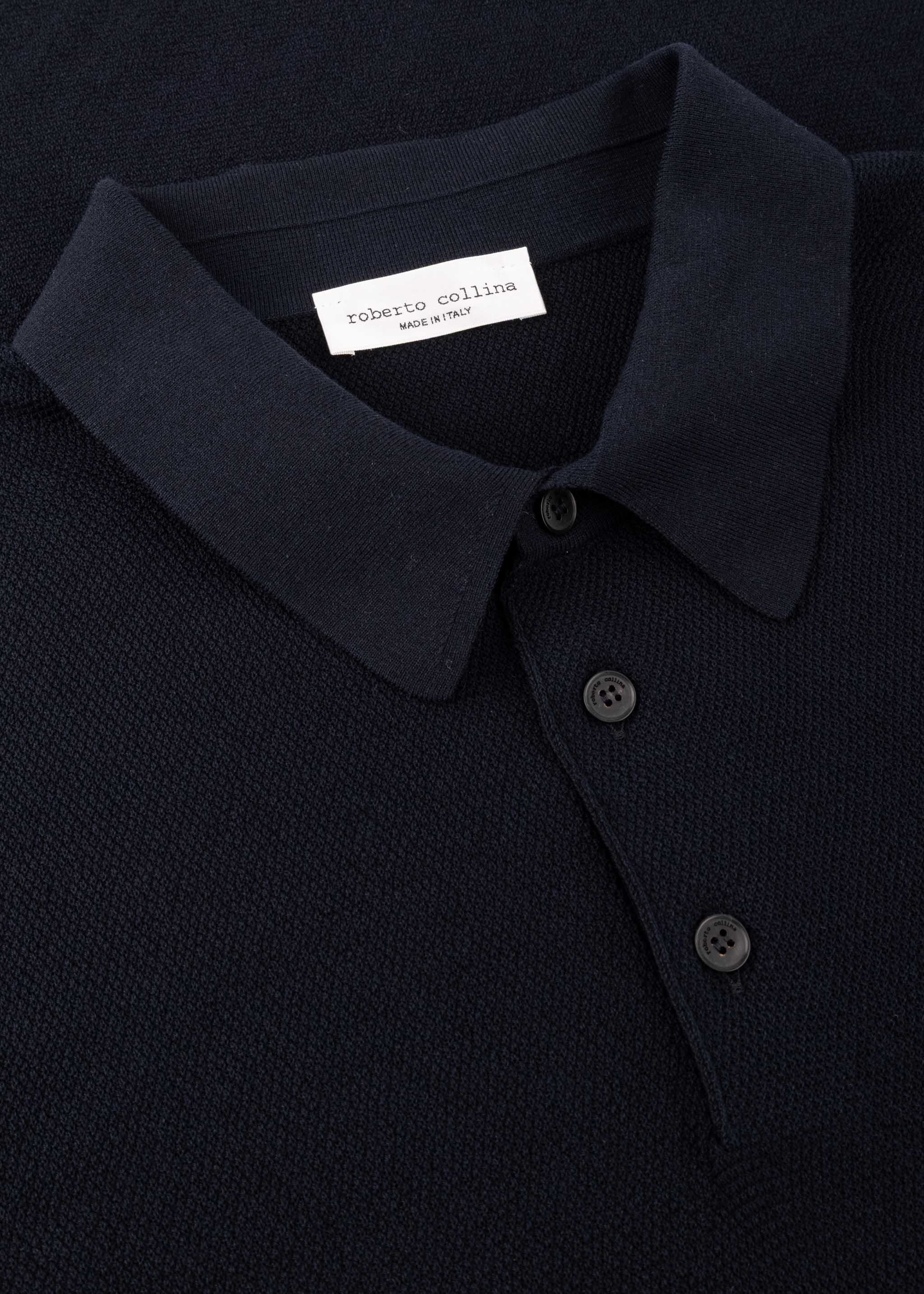 Fine knit polo shirt by Roberto Collina made of textured cotton, classic collar with short button placket, ribbed cuffs, fine material, slightly transparent.