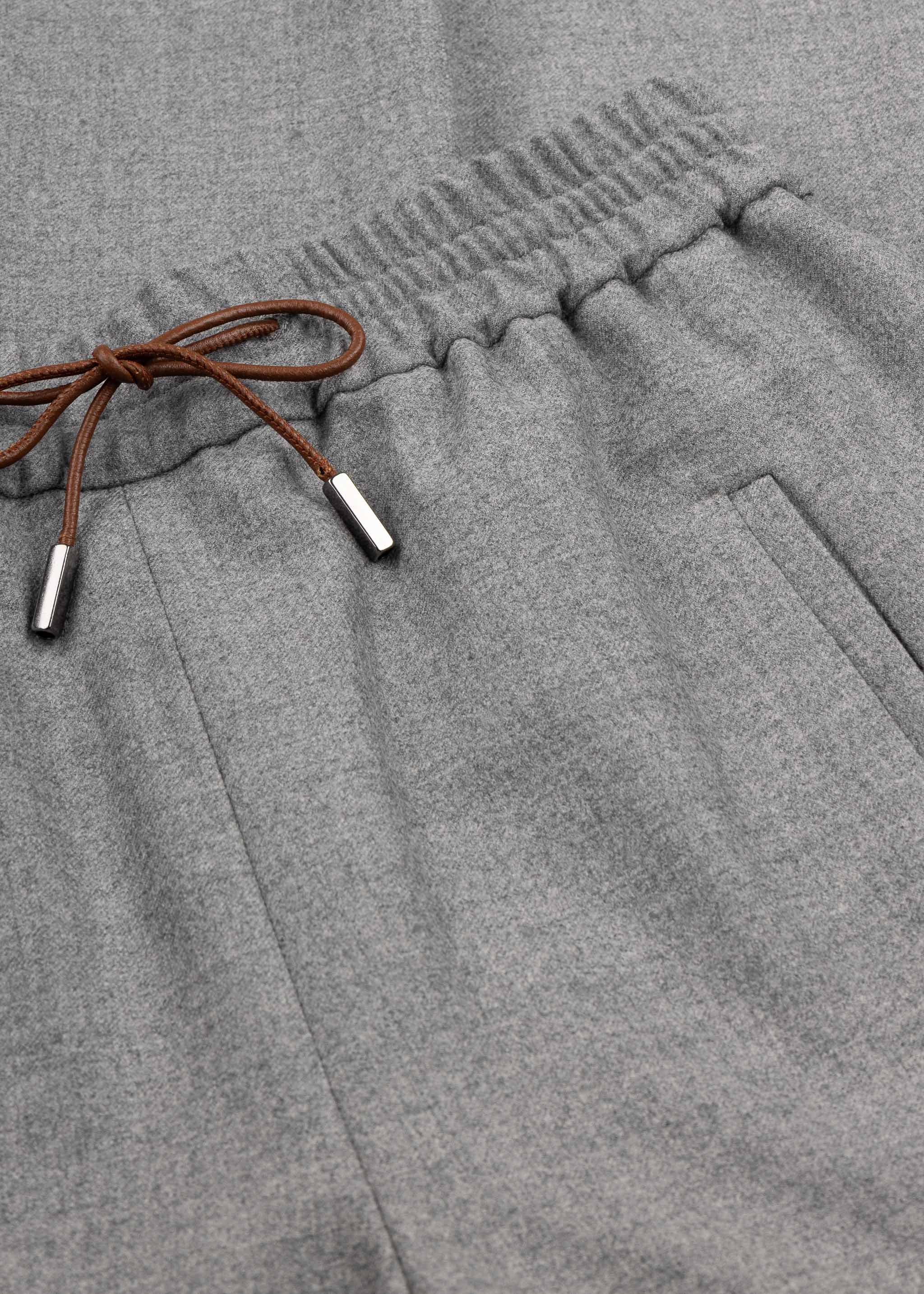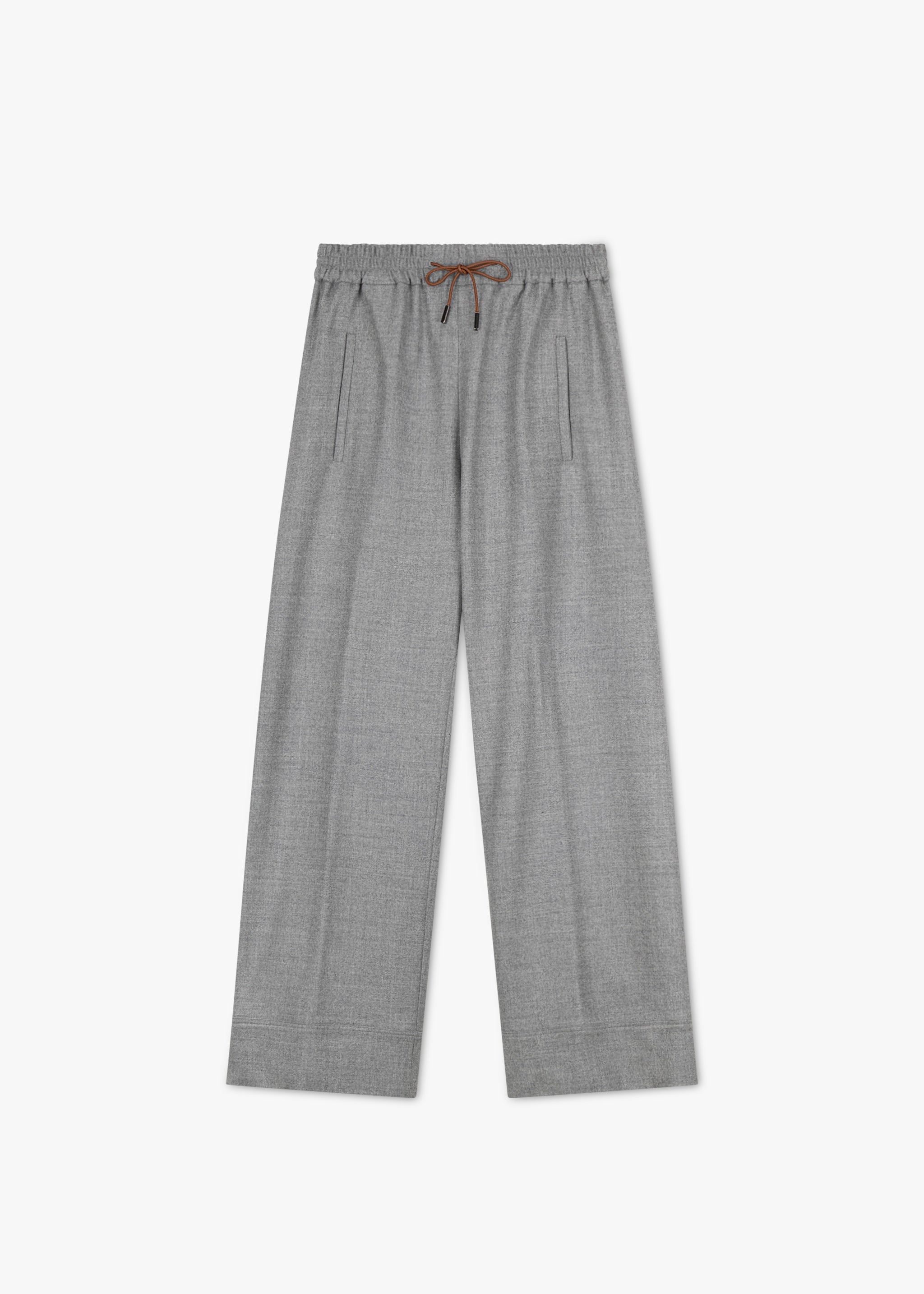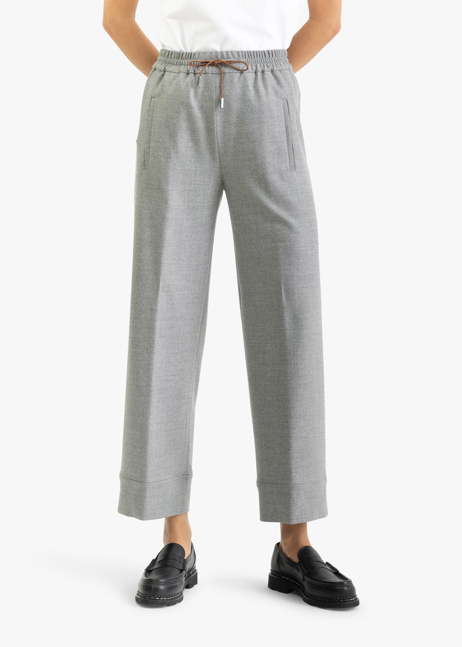 Cropped trousers by Quelle Due made of soft virgin wool, with an elastic waistband with drawstring, pressed pleats, and side welt pockets.