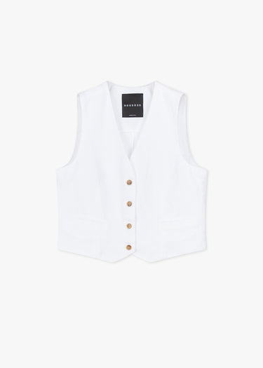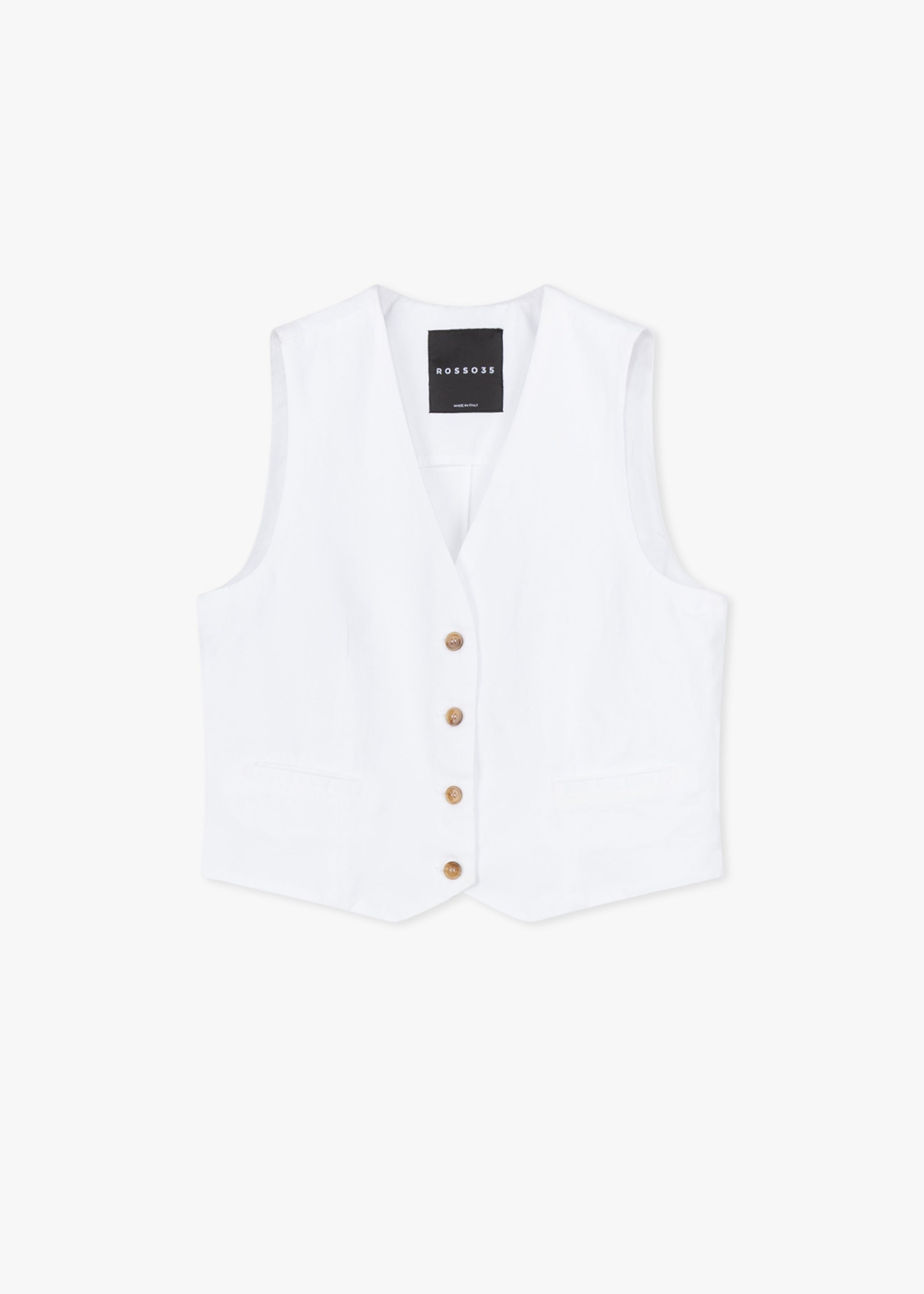 Fitted vest from Rosso 35 made from a cotton-linen blend, V-neck, button placket, small welt pockets.