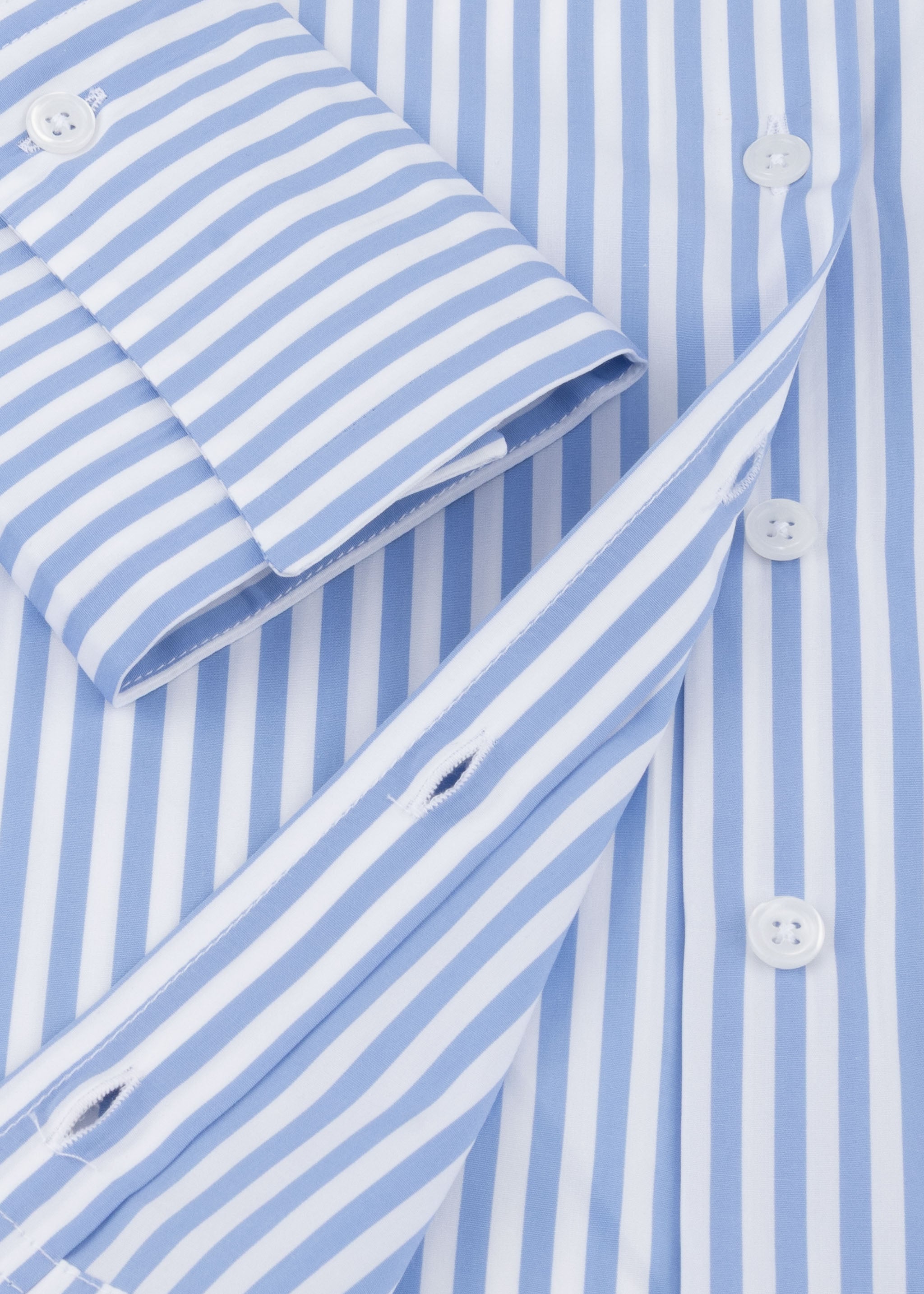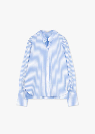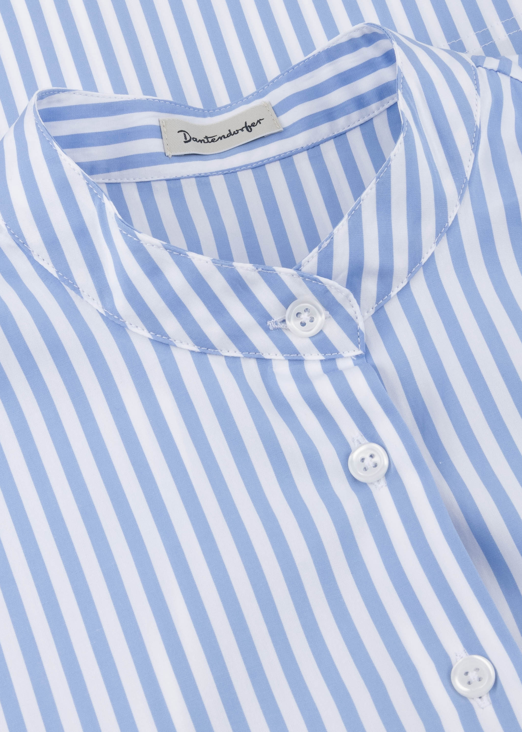 Loose blouse from Dantendorfer made of fine cotton, stand-up collar, fitted shoulders, long sleeves with wide button cuffs, full button placket, rounded hem, soft feel.