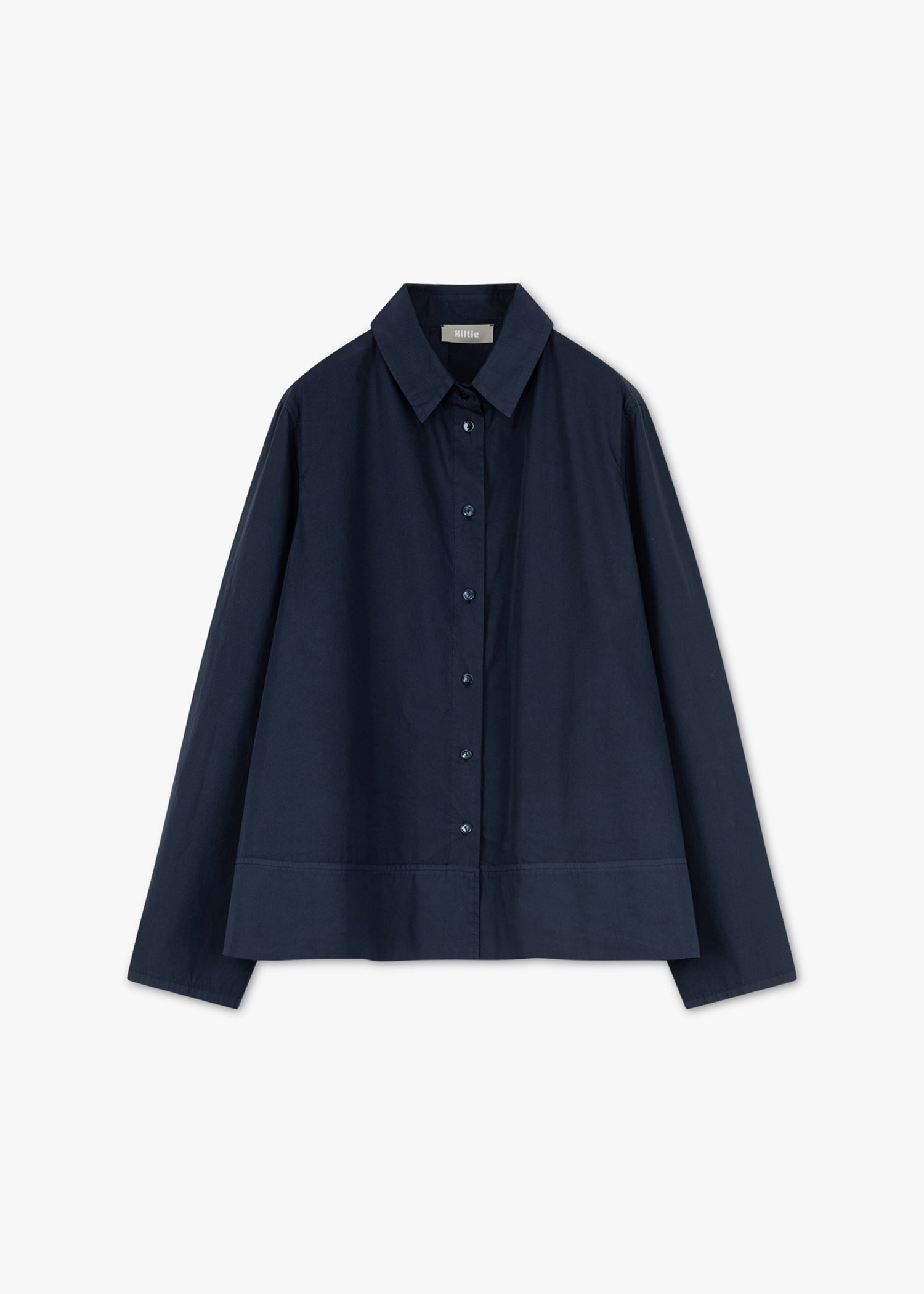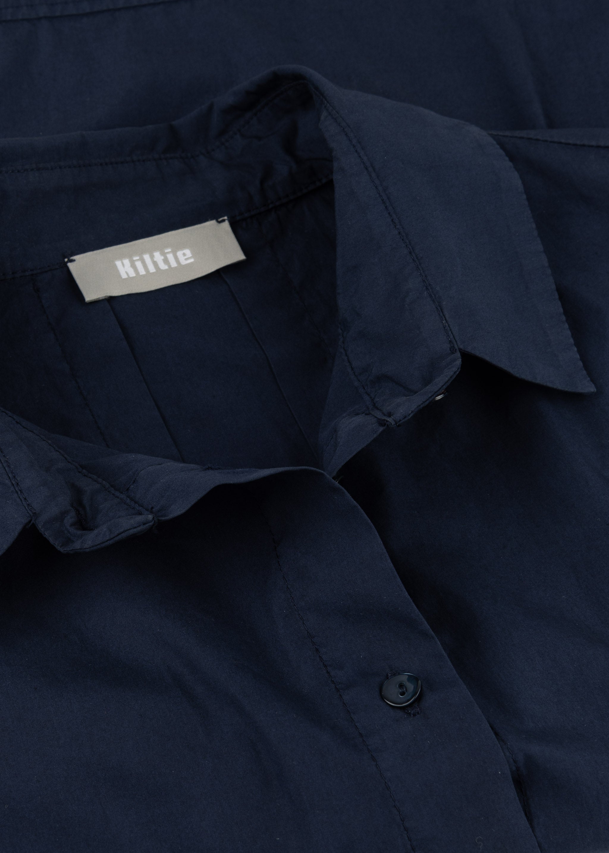 Loose-fitting blouse 'Teda' by Kiltie made of soft cotton, classic collar, back yoke with box pleat, slightly dropped shoulders, 3/4 sleeves, button placket, straight hem.