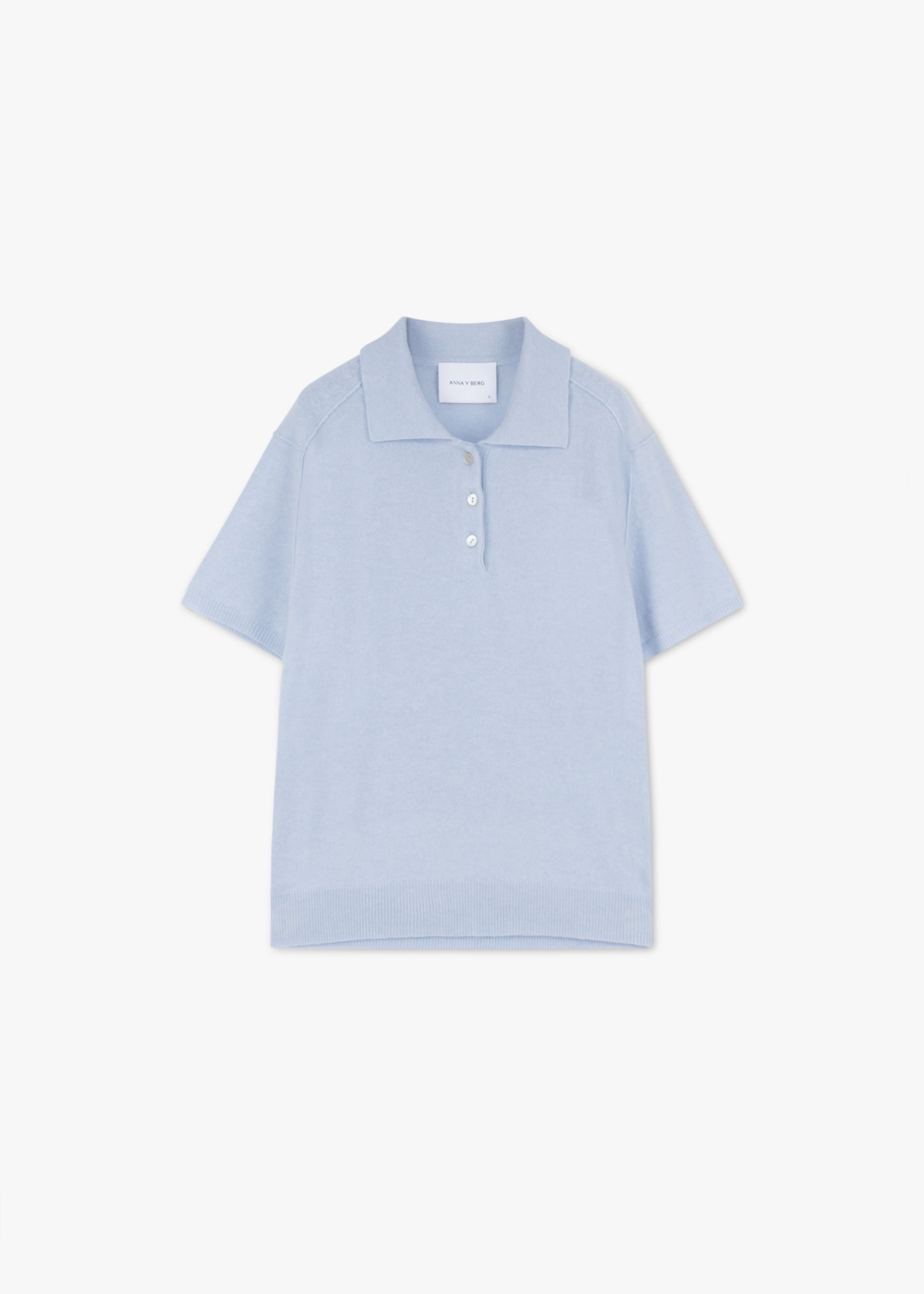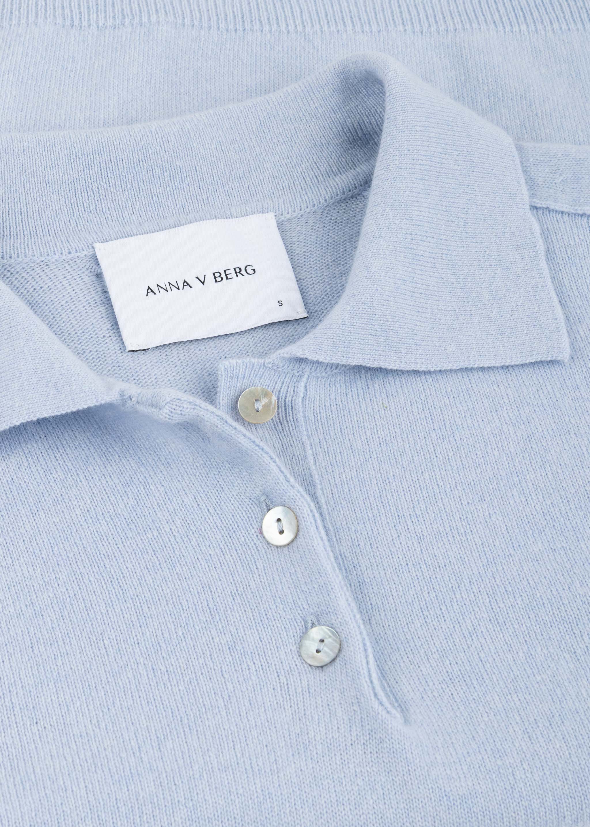 Cozy 'Liv' sweater by Anna v Berg made from a fine merino-cashmere blend, polo collar with short button placket, short sleeves, ribbed cuffs, slim fit, straight hem.