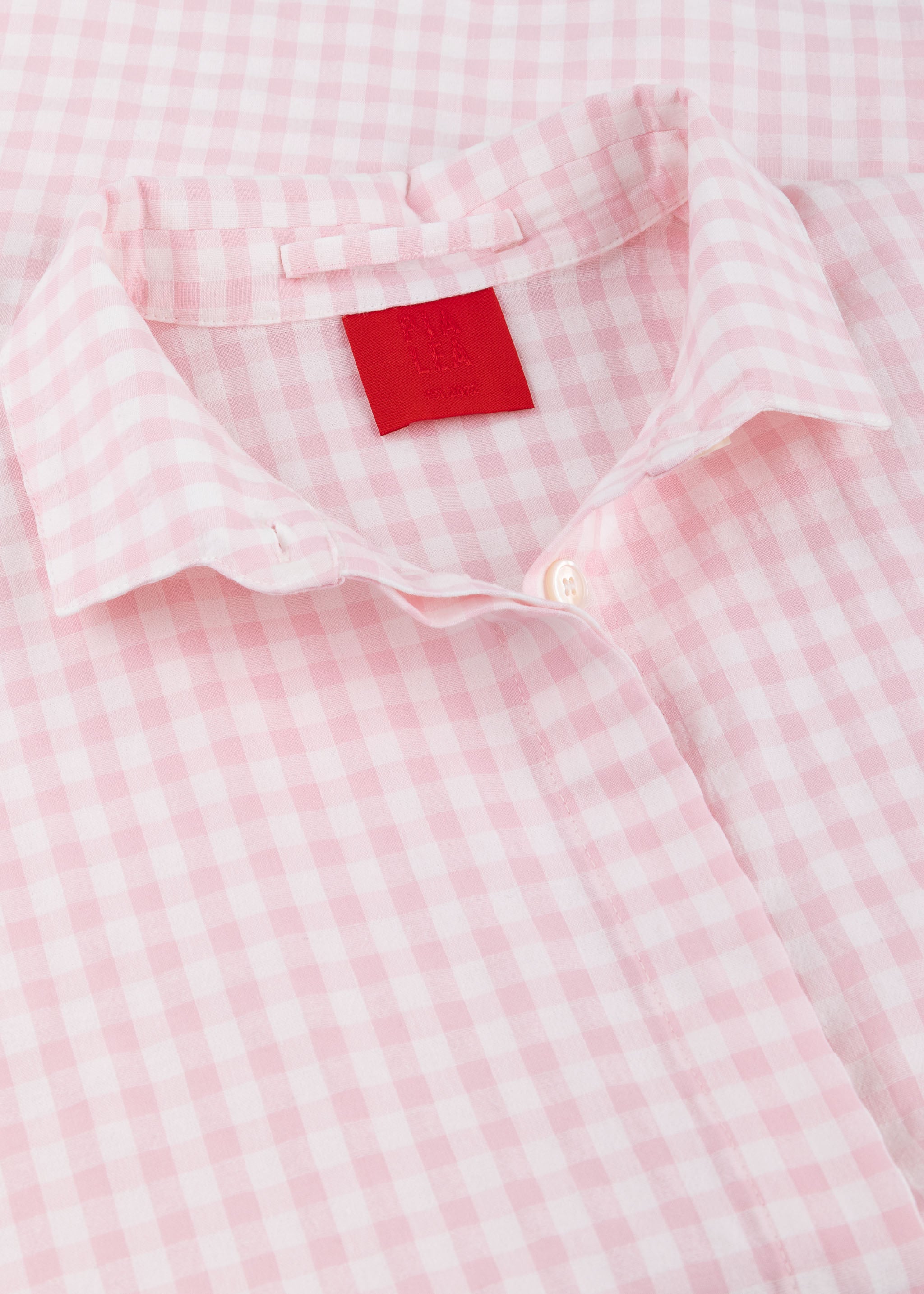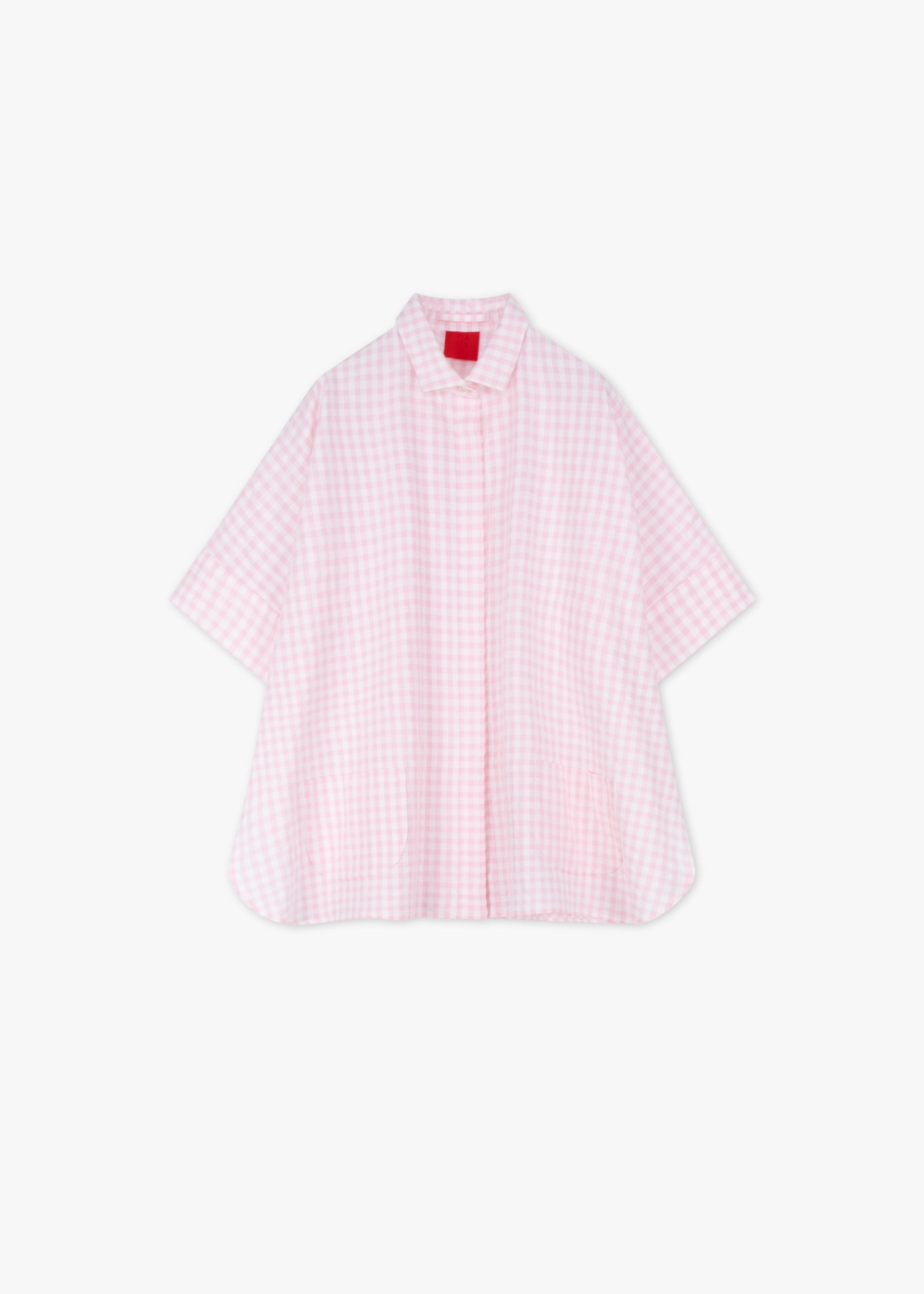 Loose blouse from PiaLea made from a fine linen-cotton blend, pointed collar, concealed button placket, short sleeves with turn-up cuffs, two patch pockets, rounded hem.