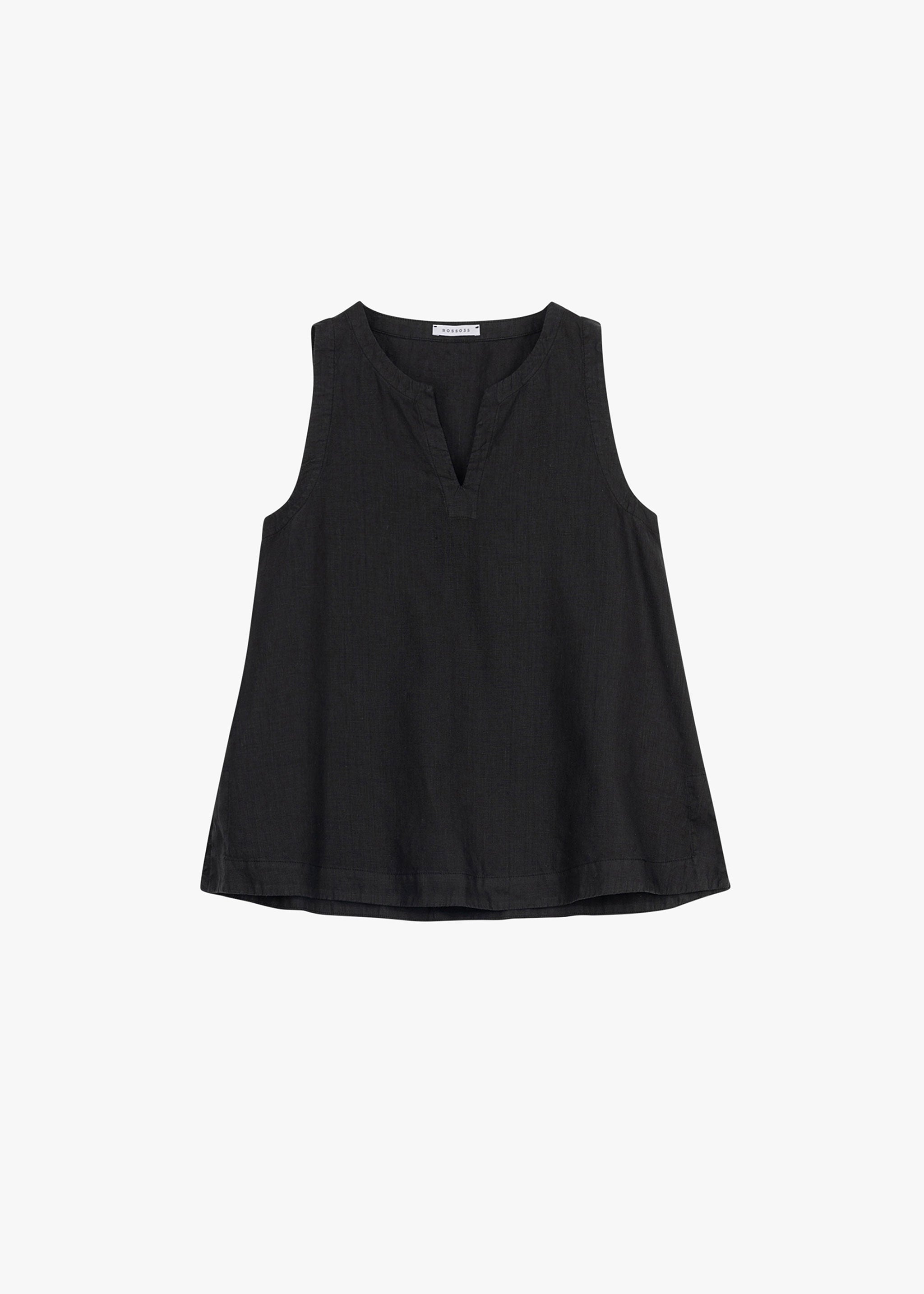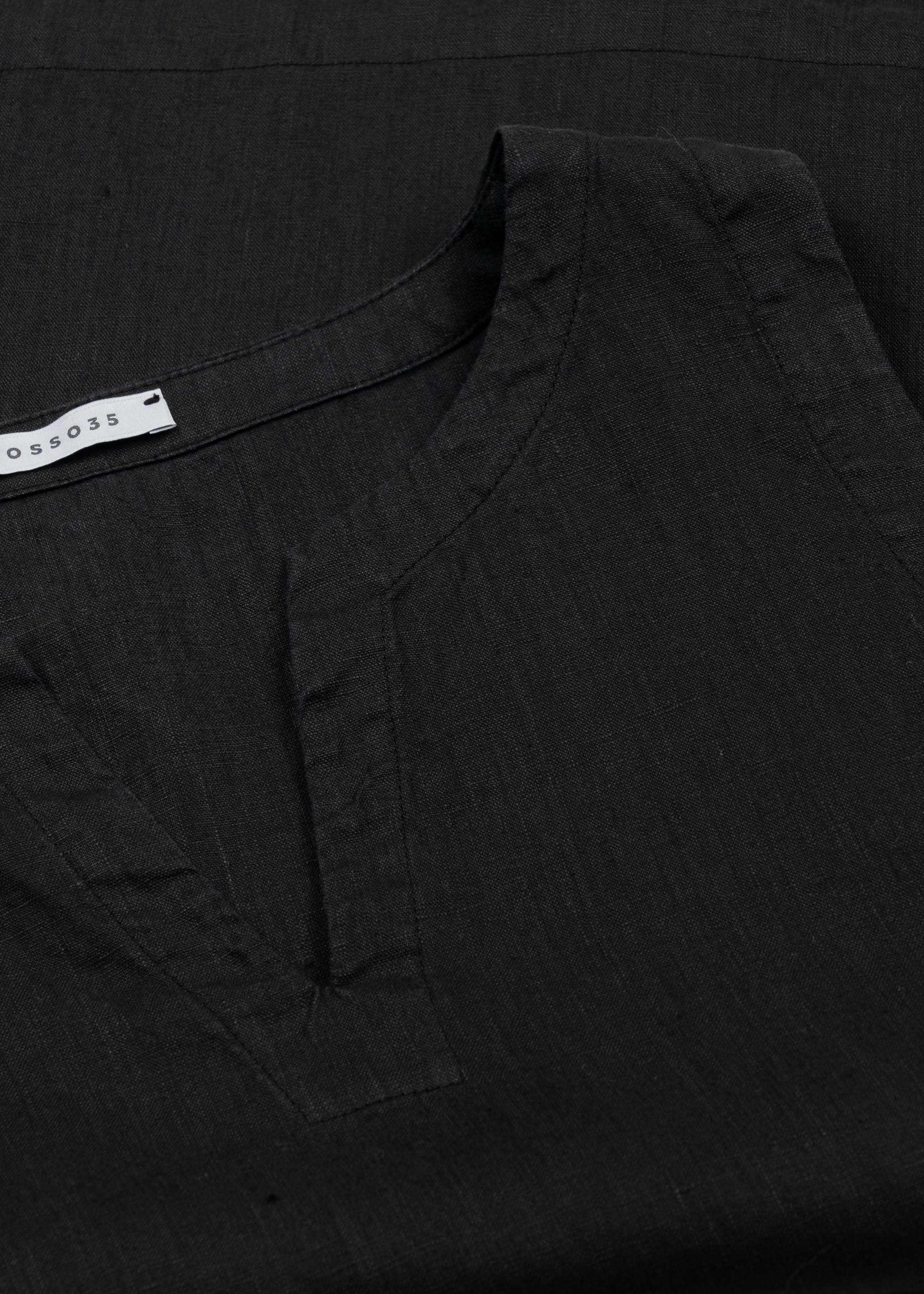 Rosso35 short-sleeved top made of linen, round neck with V-neck, A-line, straight hem with side slits.