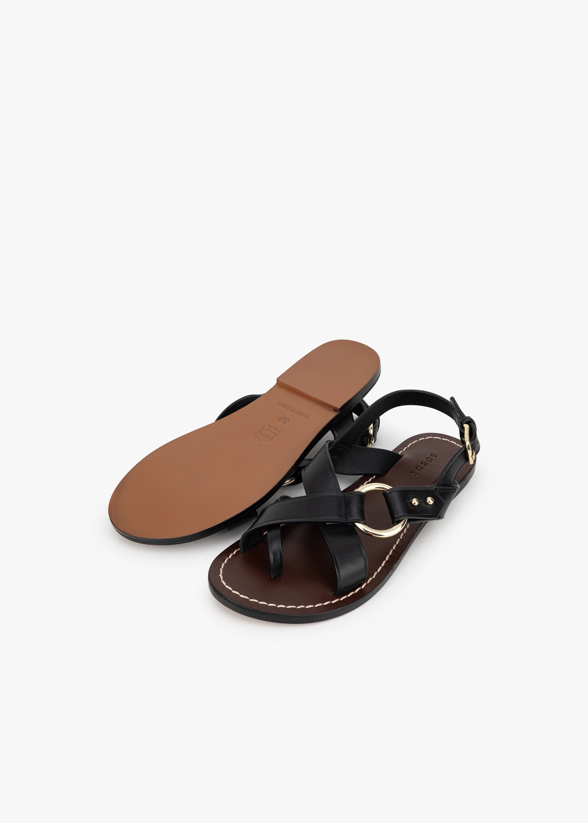 Flat sandals 'Florence' by Soeur, crossed straps, gold-colored metal fittings, adjustable ankle strap, metal buckle with closure on the instep..
