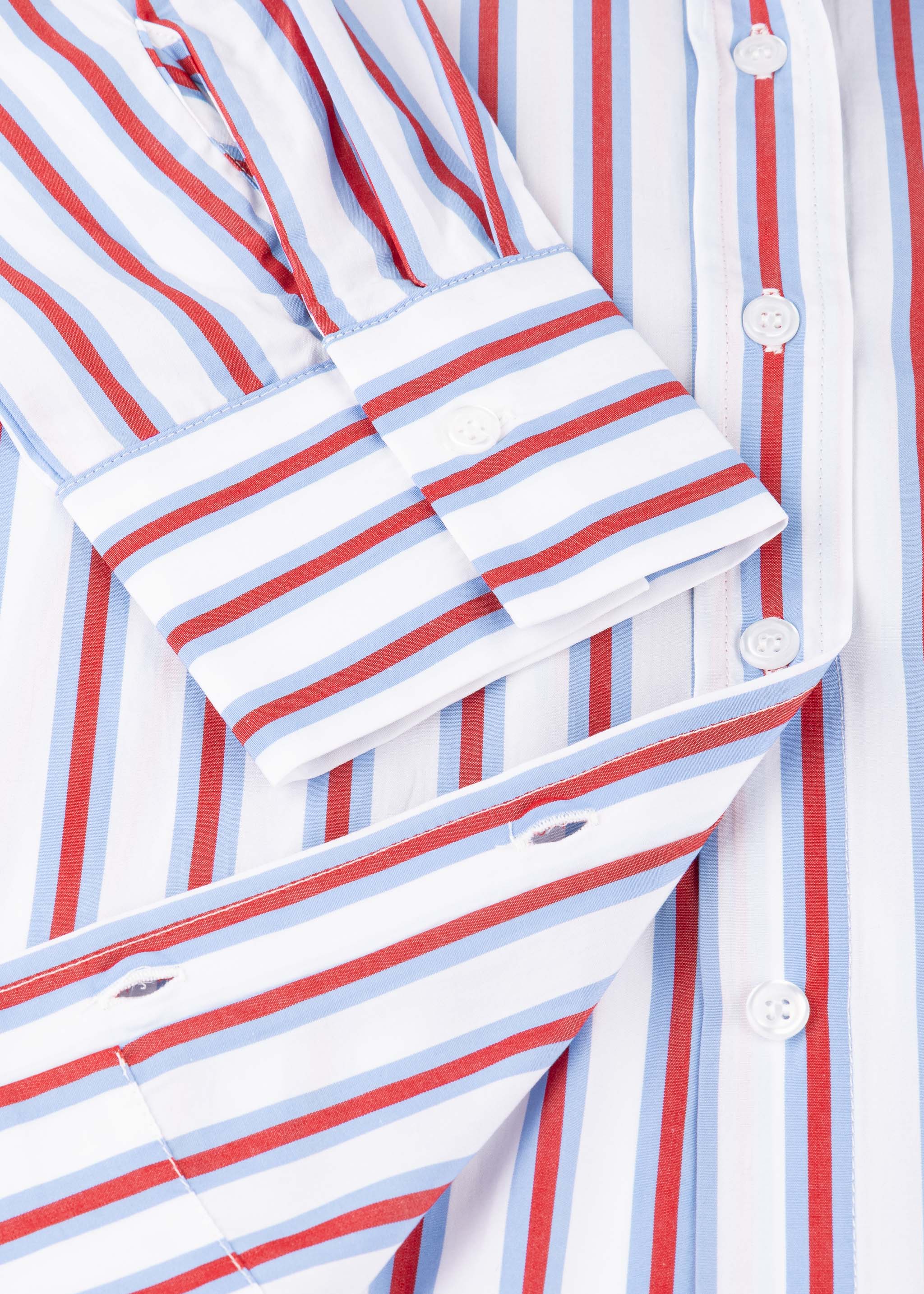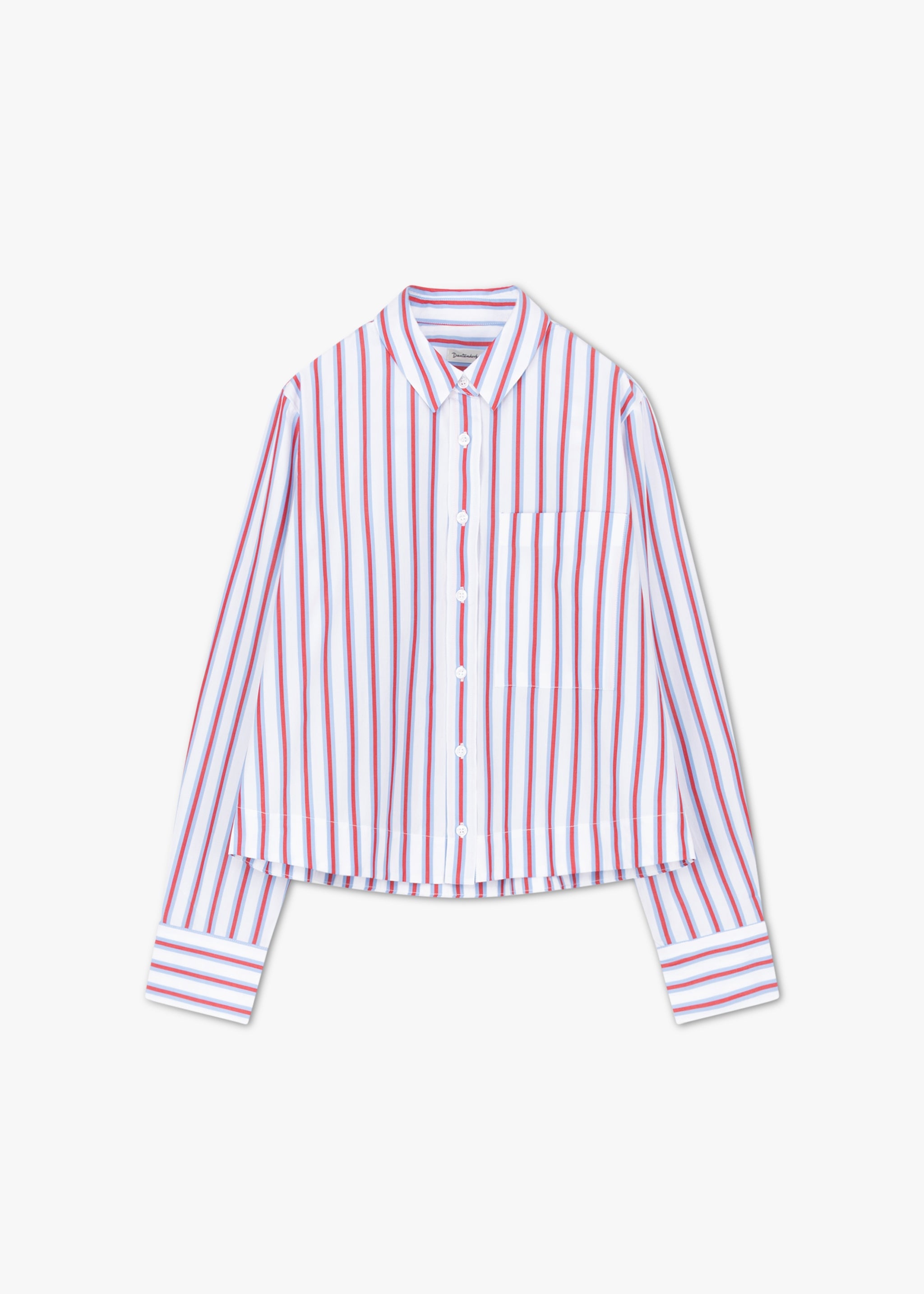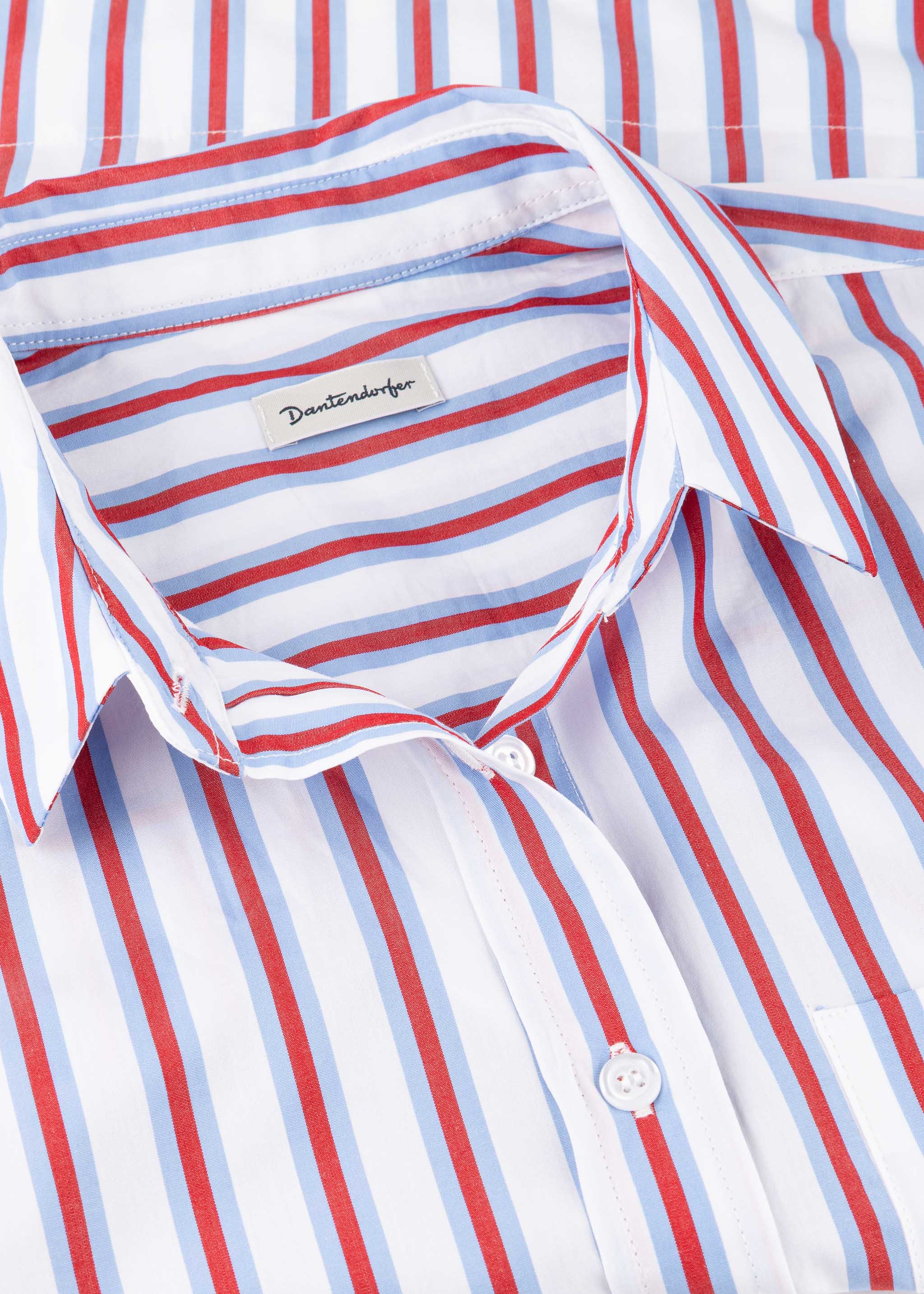 Hip-length blouse from Dantendorfer made of soft cotton, classic collar, full button placket, one breast pocket, back yoke with box pleat, fitted shoulders, long sleeves with button cuffs, slightly rounded hem, fine material.