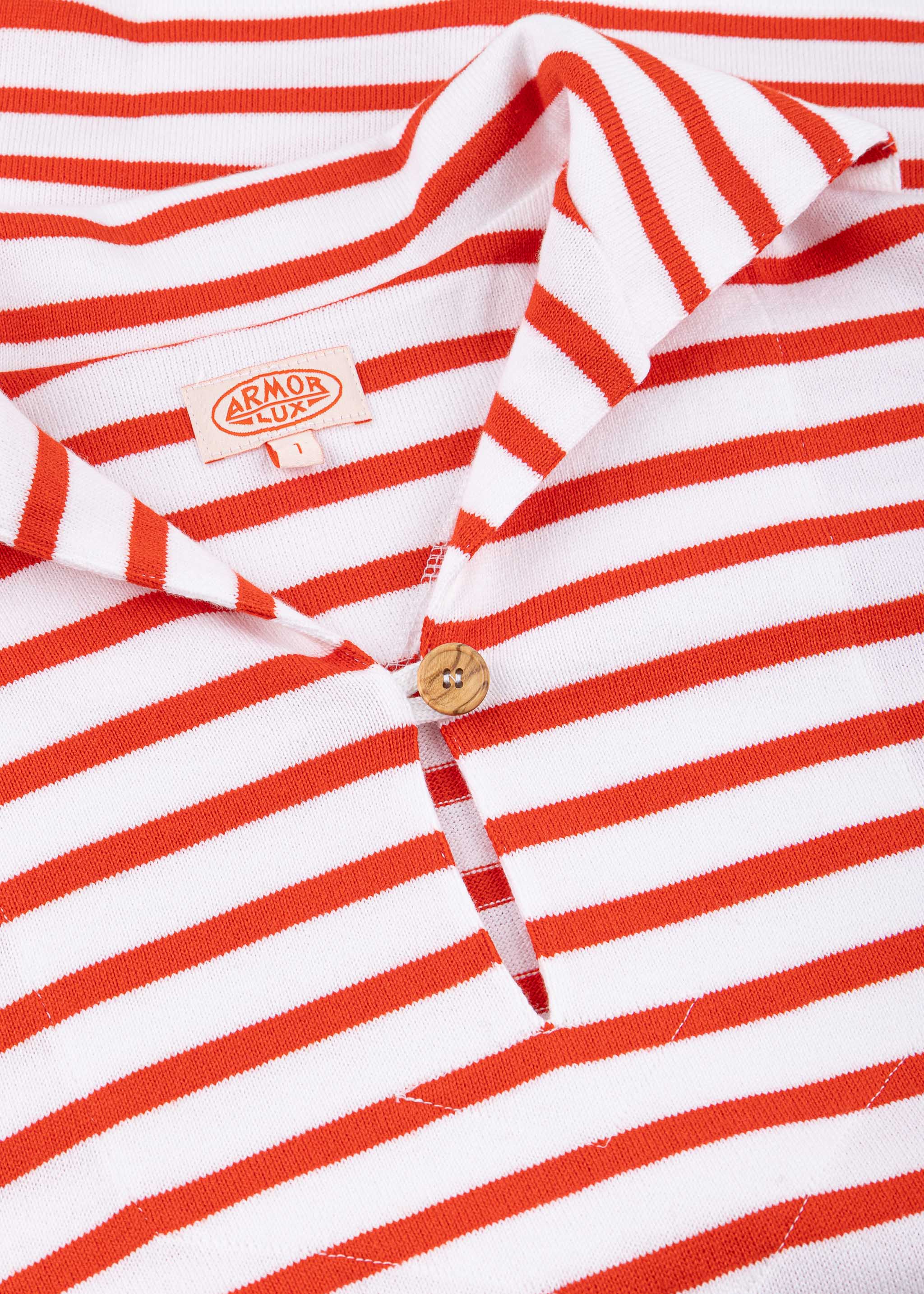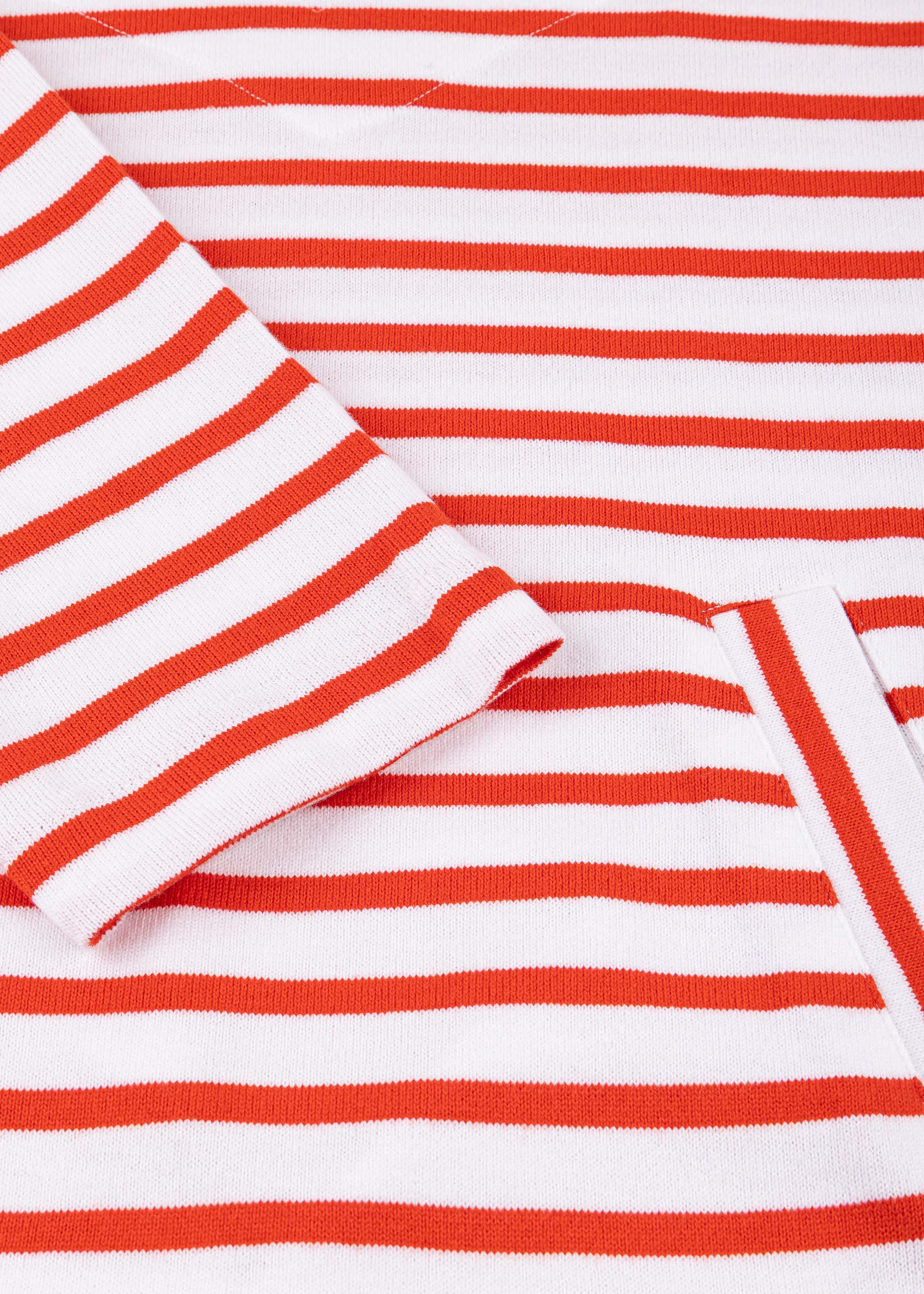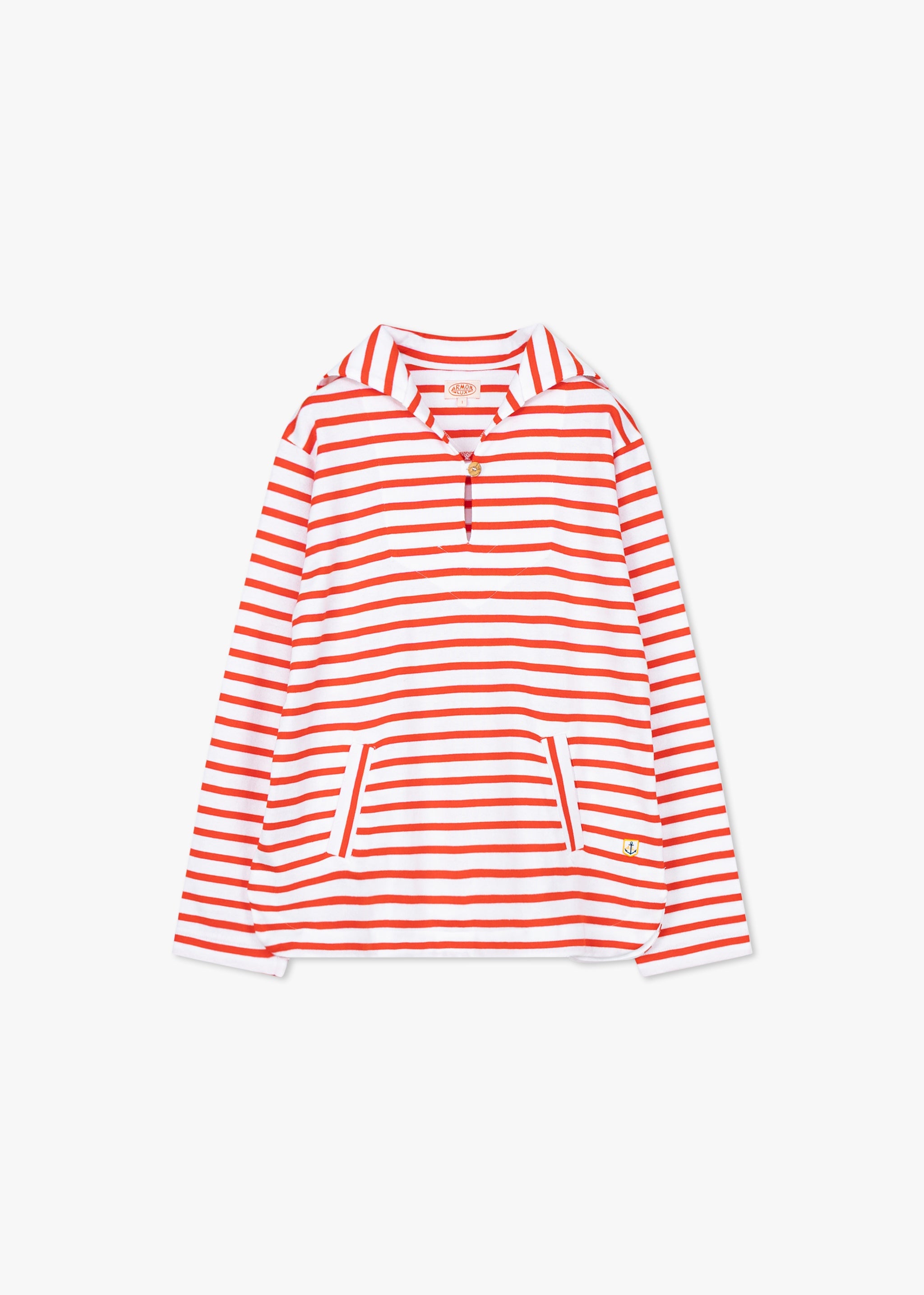 Striped Longsleeve 'Marinière' from Armor Lux made of cotton, sailor collar with V-neck, chest yoke, dropped shoulders, long sleeves, kangaroo pocket, small logo patch, rounded hem, mid-weight jersey, soft feel.