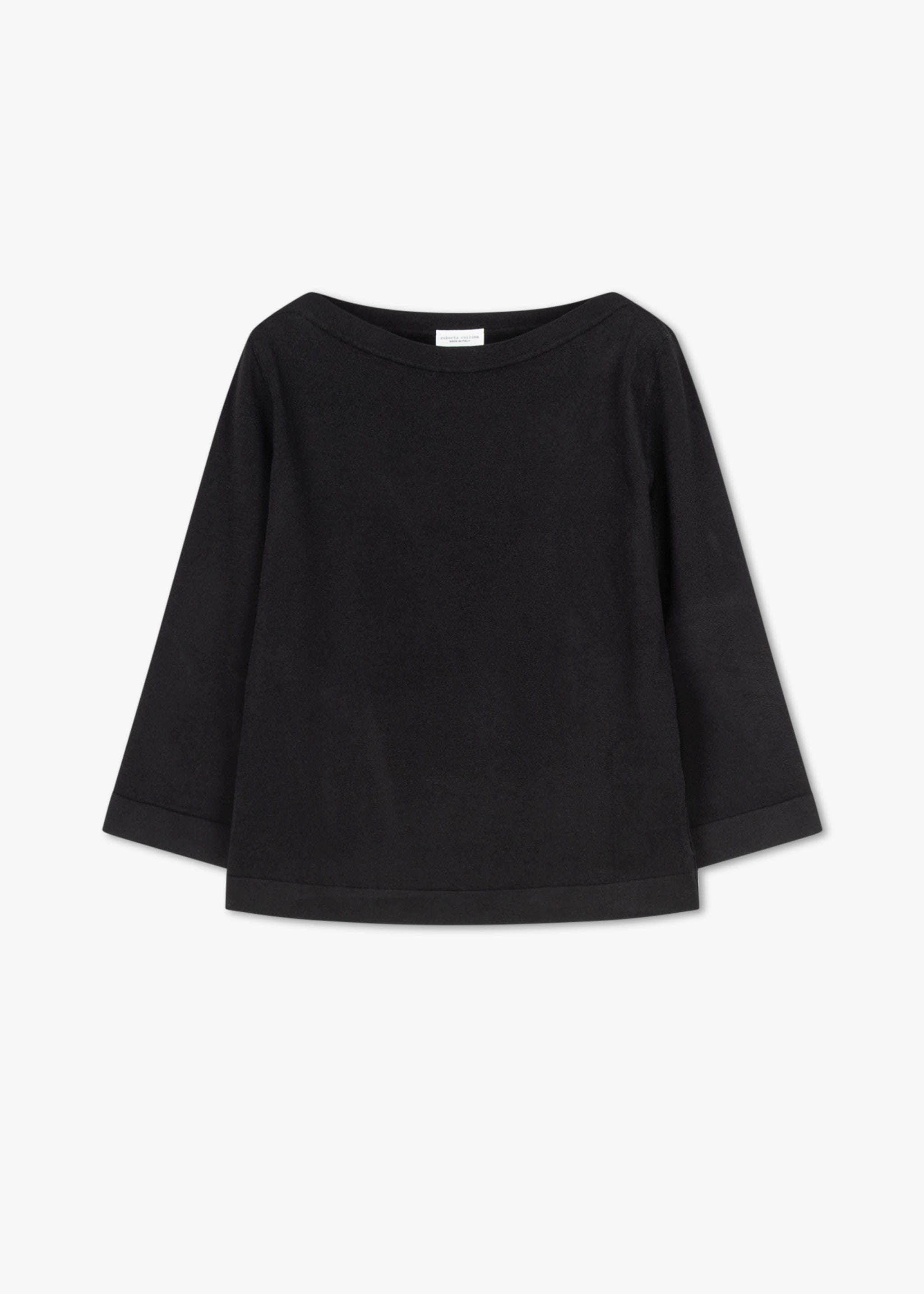 Body-hugging long-sleeved top by Roberto Collina, boat neck, shortened sleeves, slim fit.