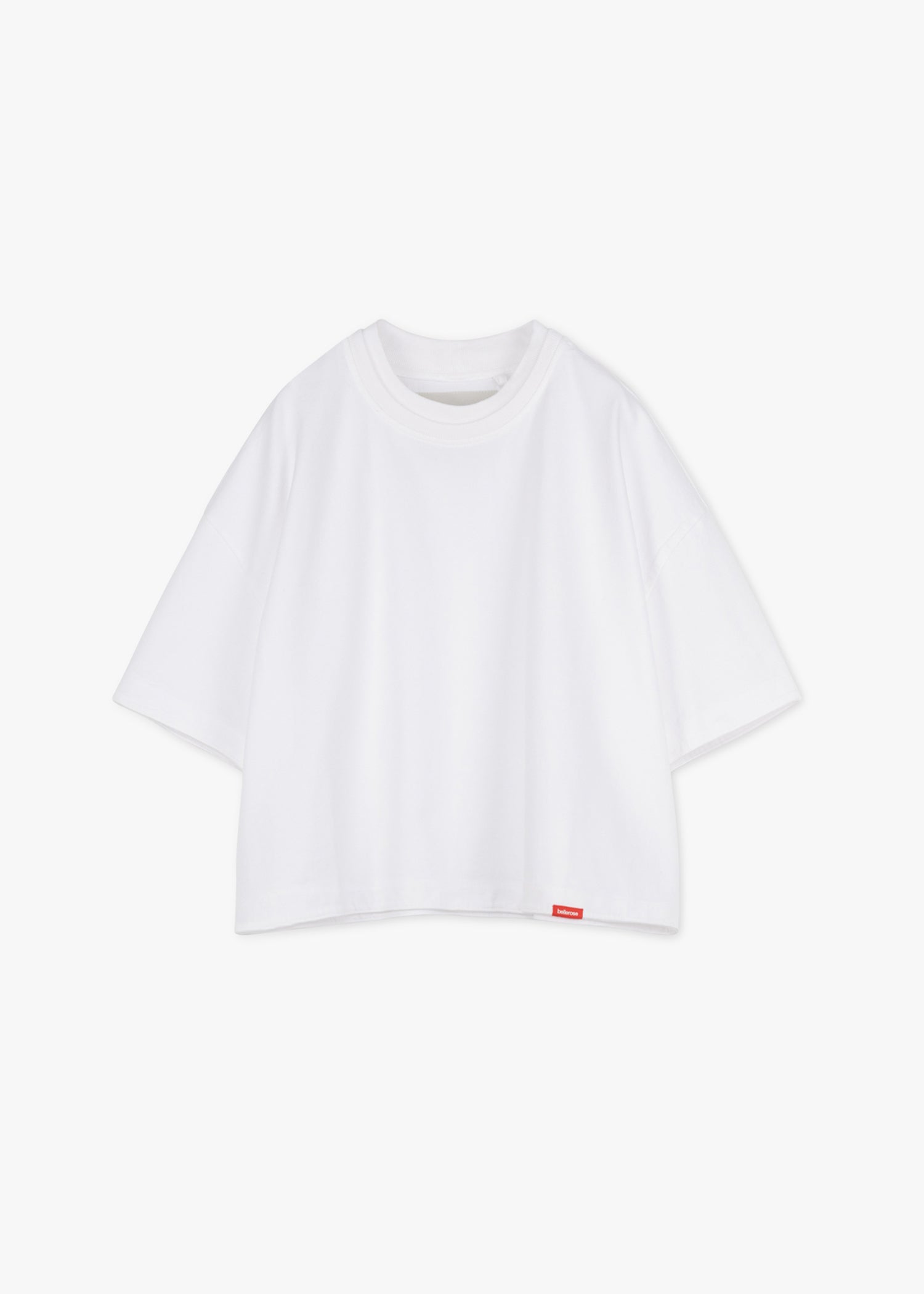 Loose 'Fan' T-shirt by Bellerose, double round neck, dropped shoulders, logo badge, straight hem.