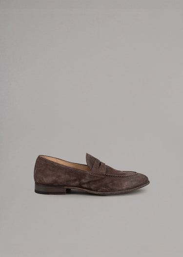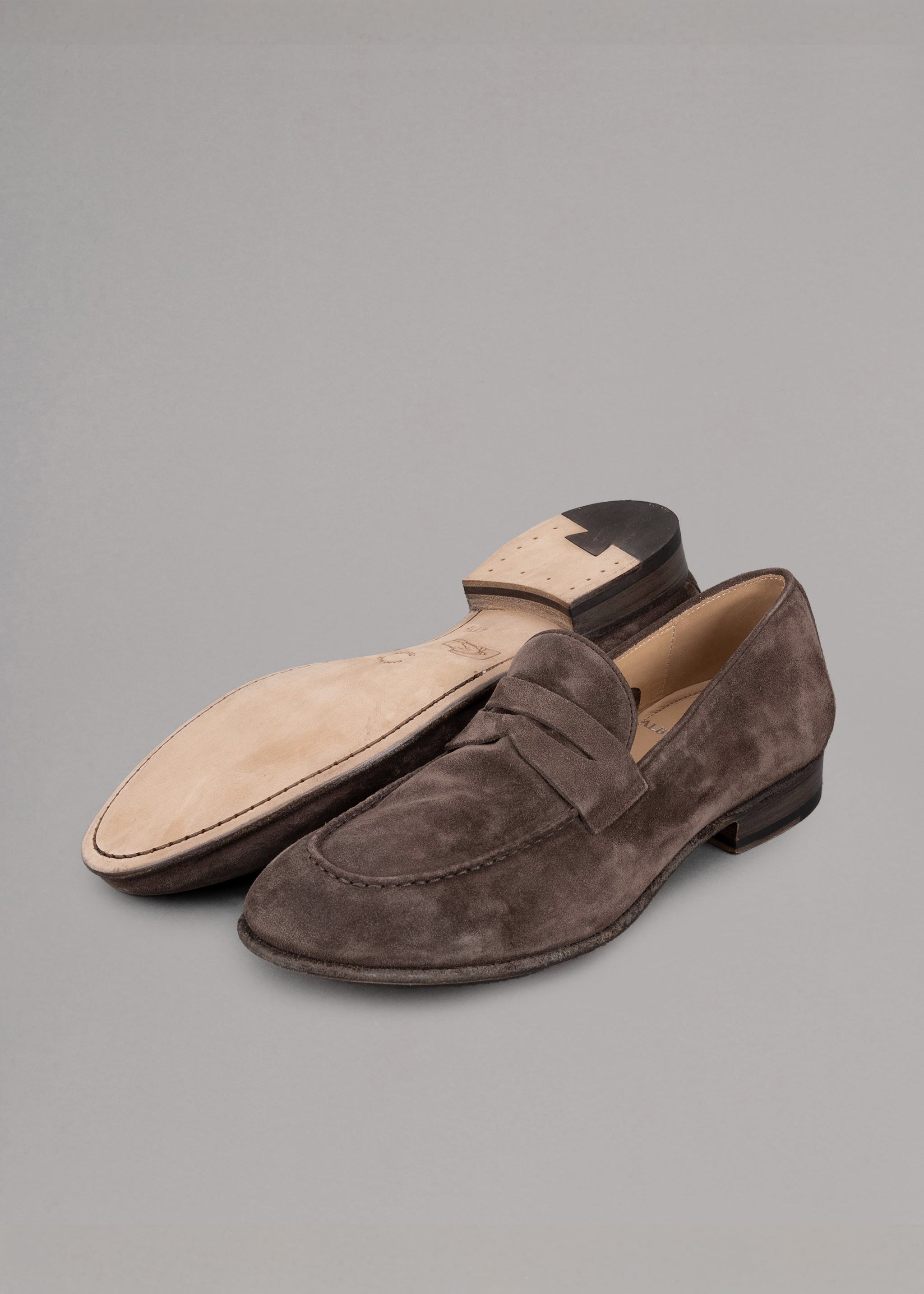 Braune Loafers 'Felix 61011 Sambuco' von Alberto Fasciani aus Kalb-Veloursleder, klassischer Penny-Steg, Sohle aus Leder.
