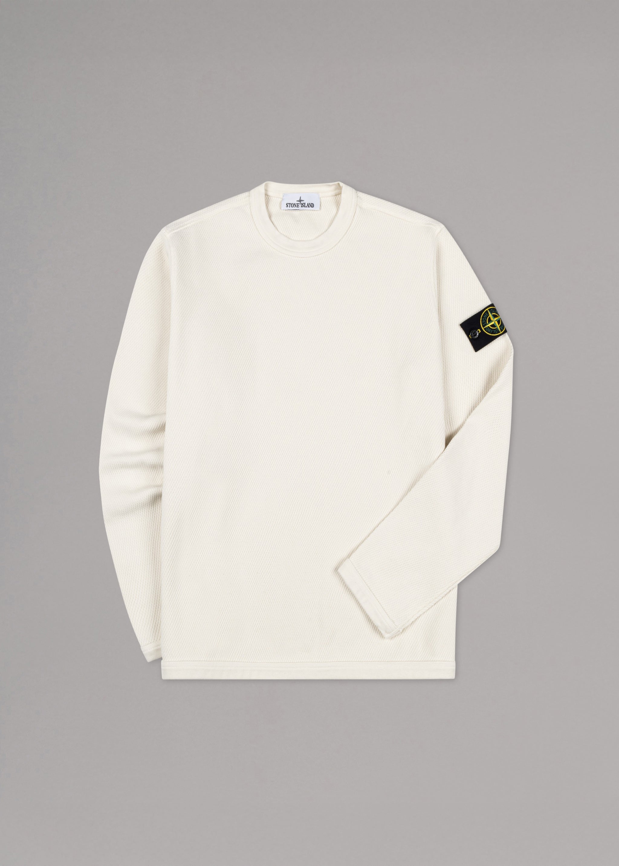 Sweatshirt von Stone Island mit Netzmuster, Rundhalsausschnitt, lange Ärmel, abnehmbares Stone Island-Badge, gerippte Abschlüsse, gerader Saum.