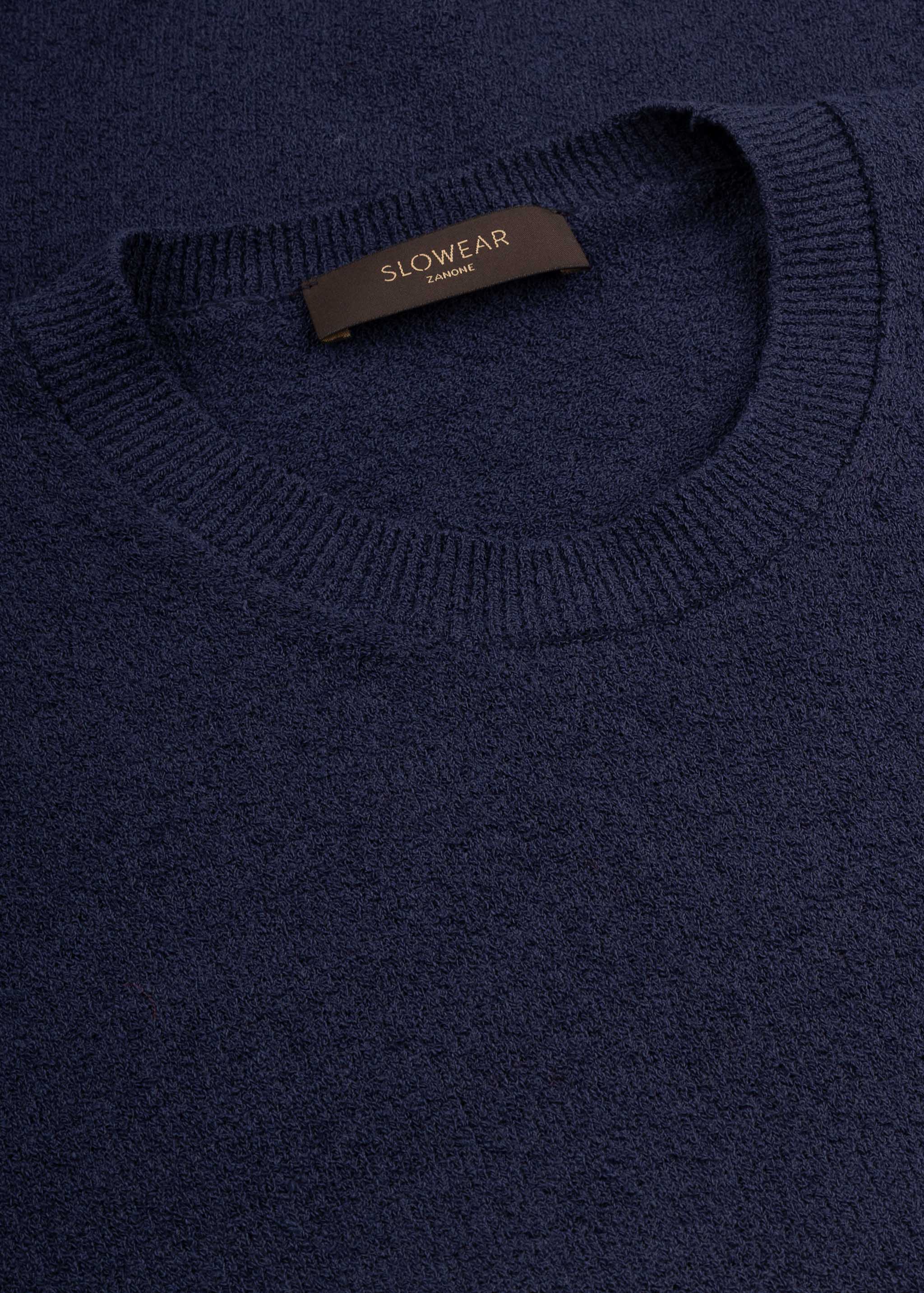 Kurzärmeliger Strickpullover von Zanone aus Baumwollbouclé, Rundhalsausschnitt, gerippte Abschlüsse, gerader Saum.