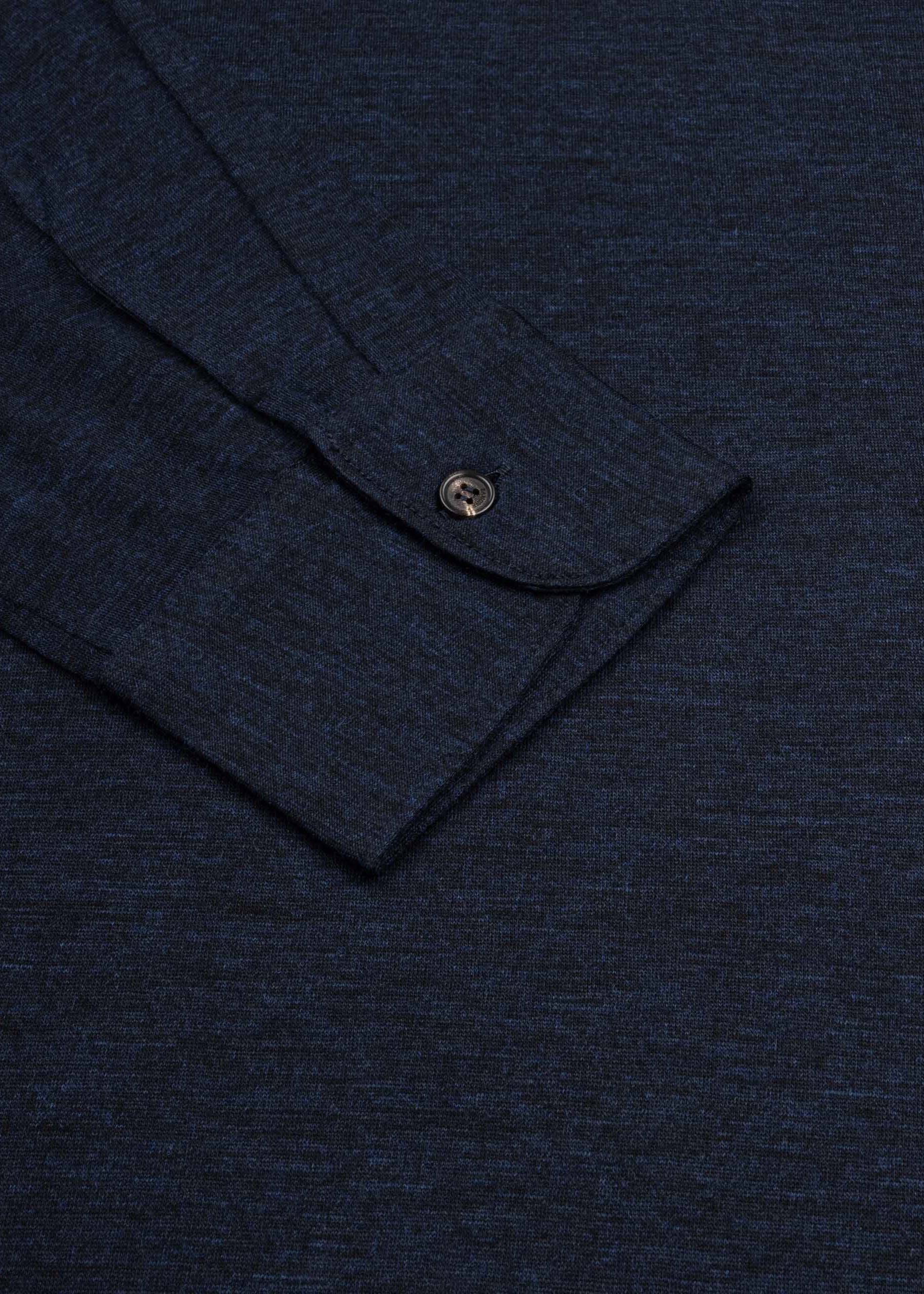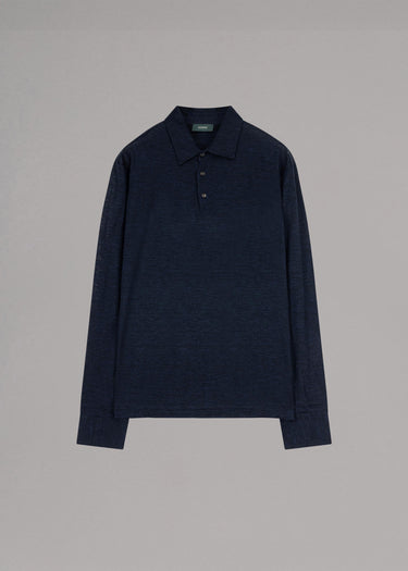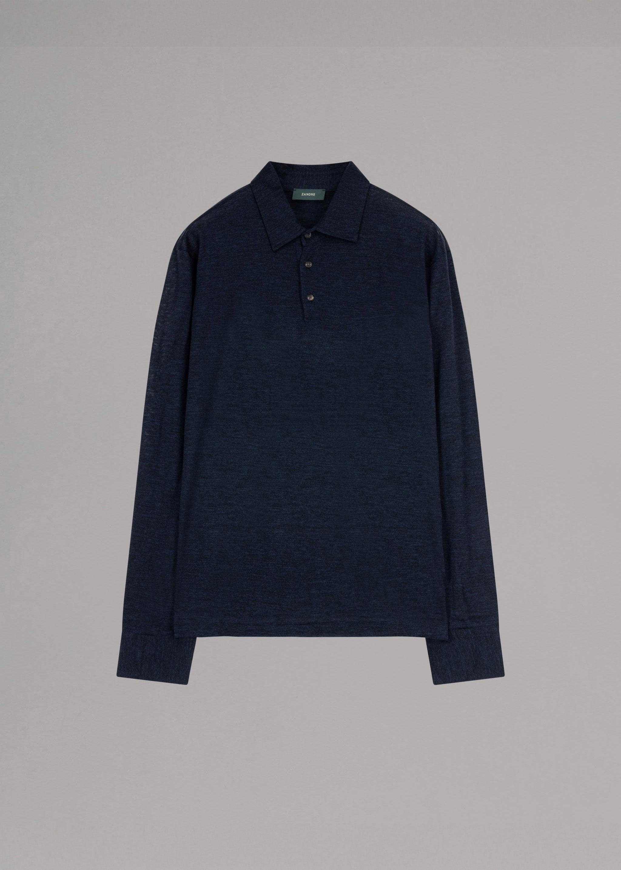 Poloshirt aus ultraleichtem Schurwollgewebe von Zanone, weicher Griff, klassischer Kragen, kurze Knopfleiste mit drei Perlumut-Knöpfen und lange Ärmel mit Knopfmanschette, kurze Schlitze seitlich.