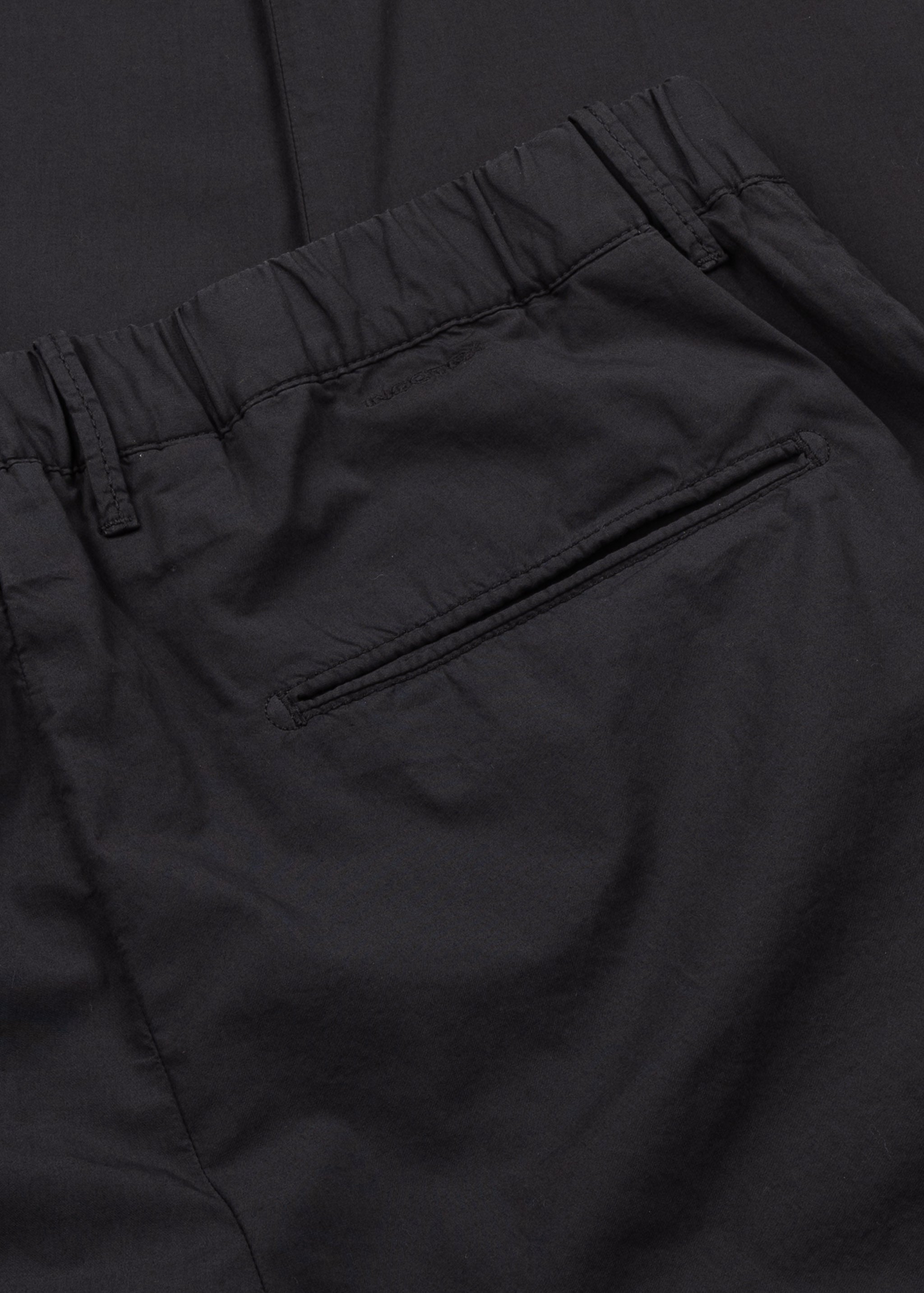 Schmale Hose von Incotex aus feiner Baumwolle, Gürtelschlaufen, Knopf- und Reißverschluss, elastischer Bund mit Tunnelzug, Bügelfalten, Eingriffstaschen, Paspelgesäßtaschen, Stretch-Anteil.