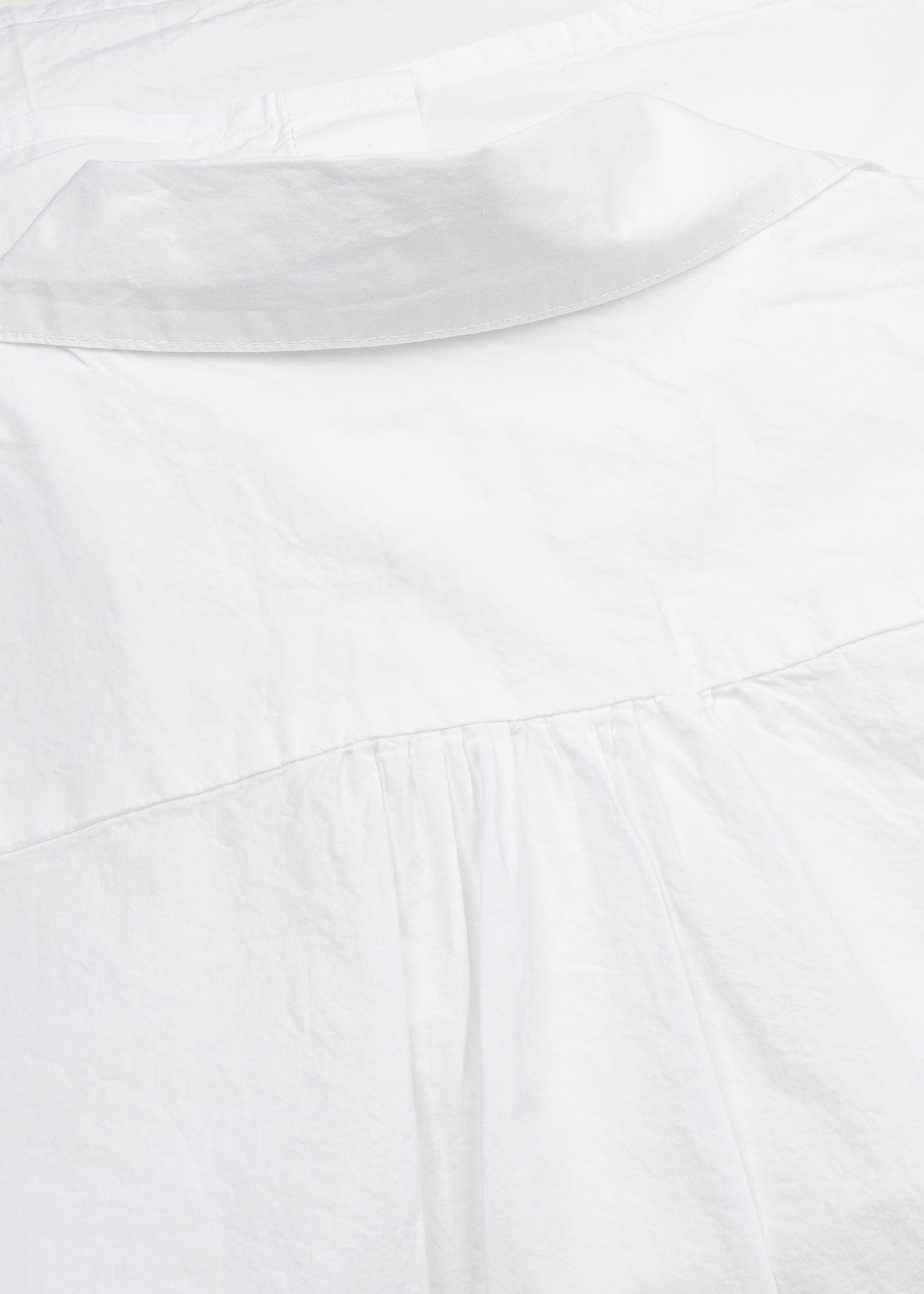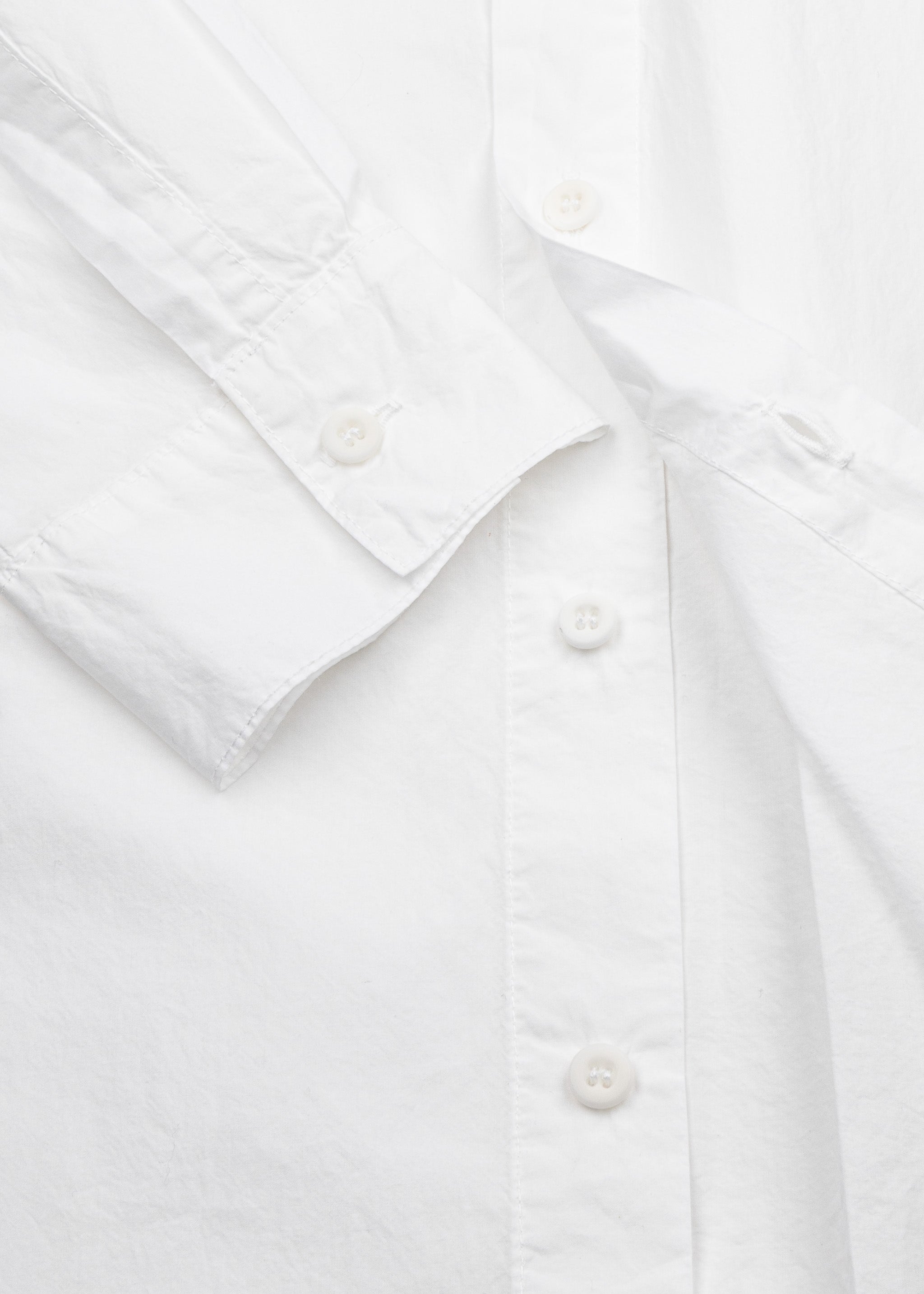 Lockere Bluse 'Eolia Sushi' von Labo Art aus feiner Baumwolle, klassischer Kragen, Rückenpasse mit Quetschfalte, durchgehende Knopfleiste, überschnittenen Schultern, weite Ärmel mit Knopfmanschette, gerader Saum, leicht transparent.