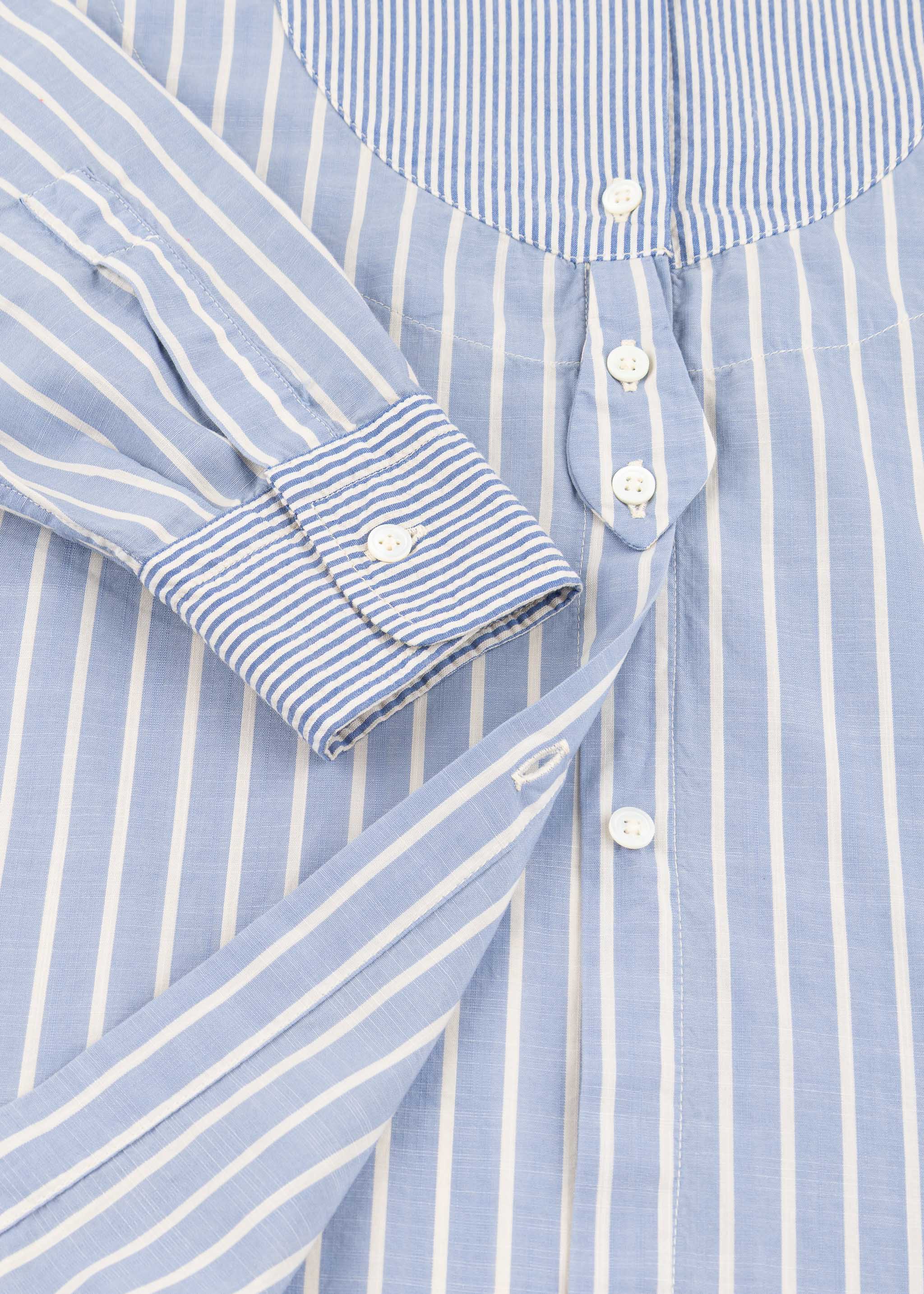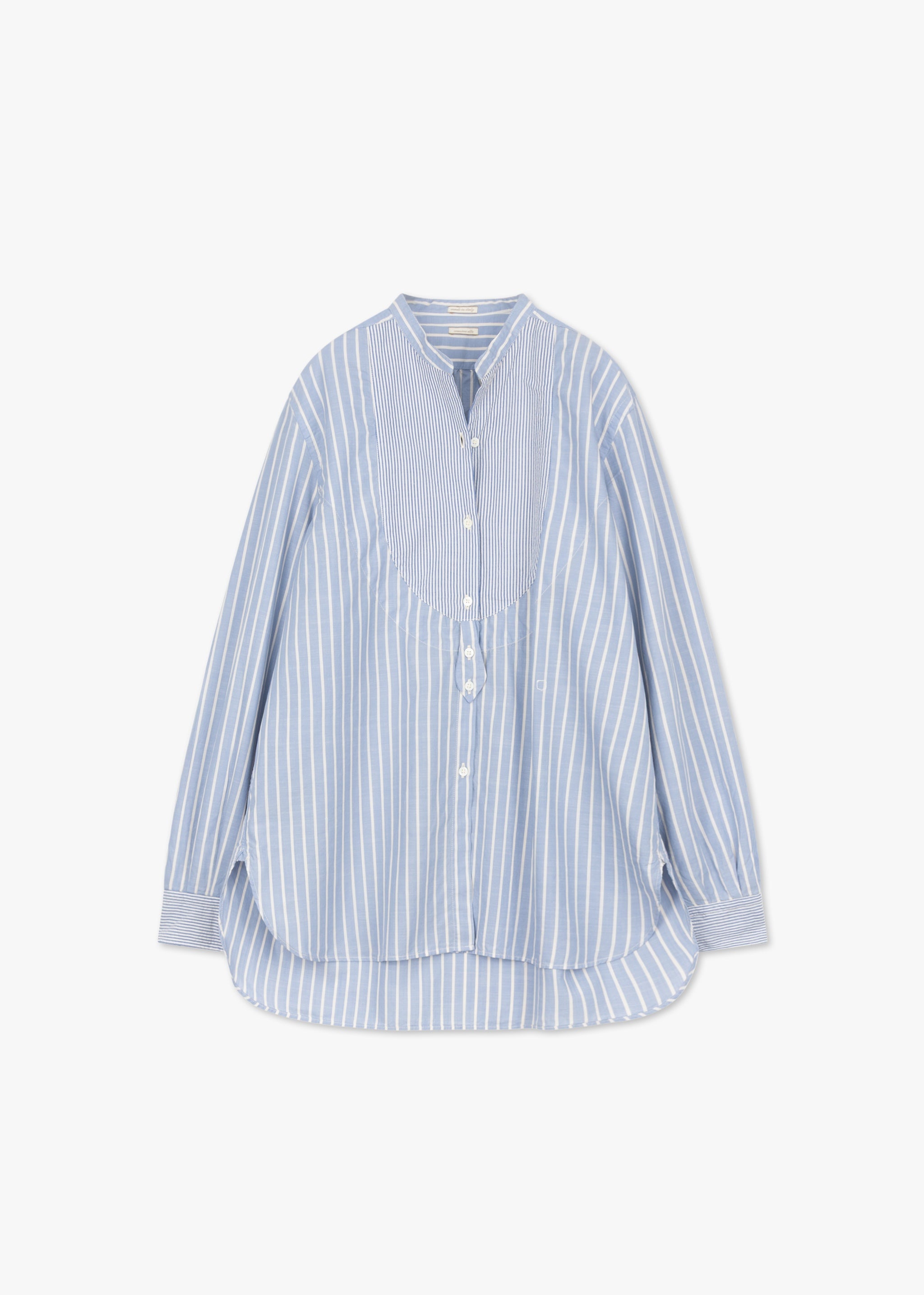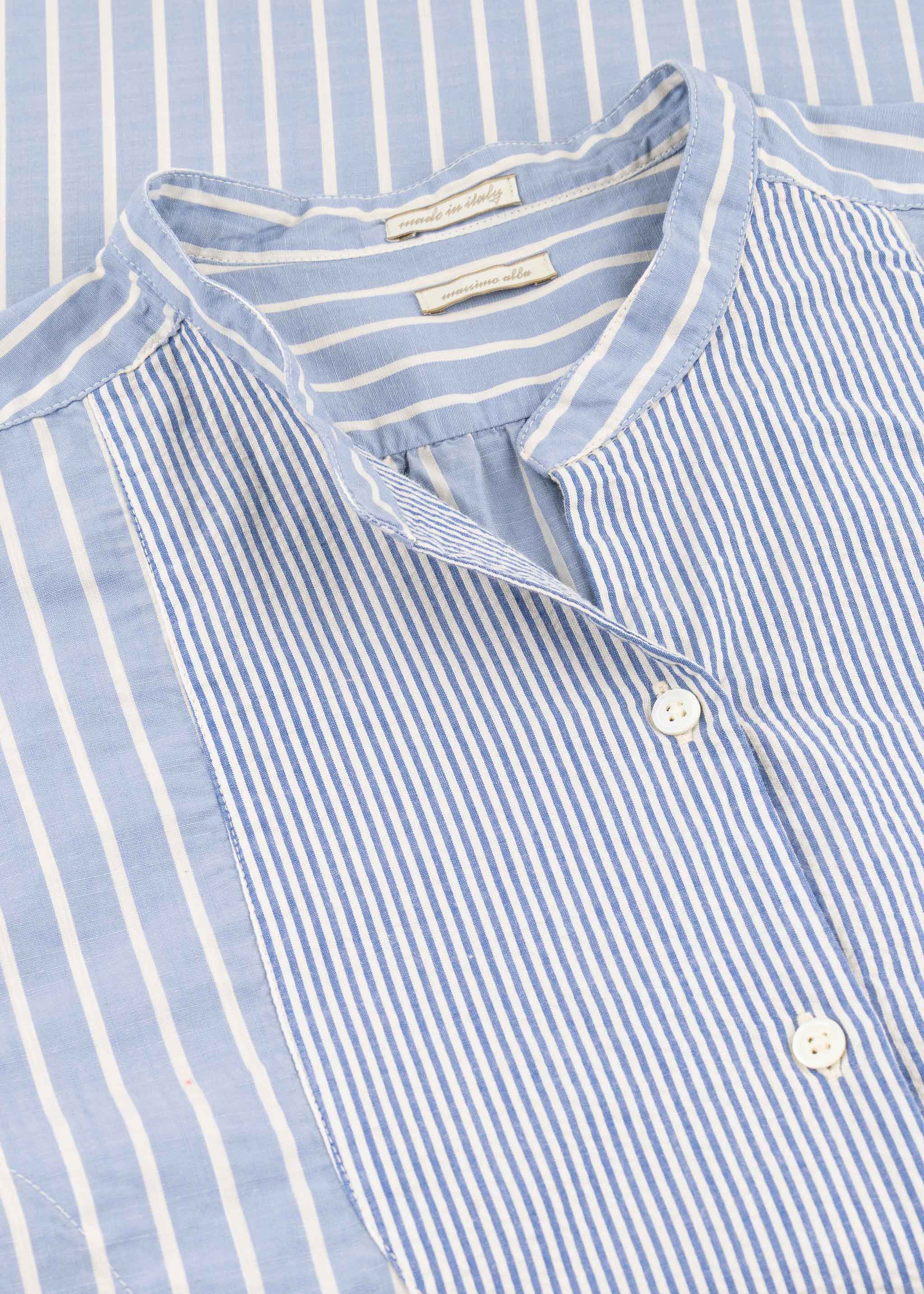 Gestreifte Bluse 'Partenope' von Massimo Alba aus weicher Baumwolle, Stehkragen, lange Ärmel mit Knopfmanschetten, Rückenpasse mit gelegten Falten, Knopfleiste, Brustbesatz und Manschetten aus Seersucker, Vokuhila-Saum, locker geschnitten.