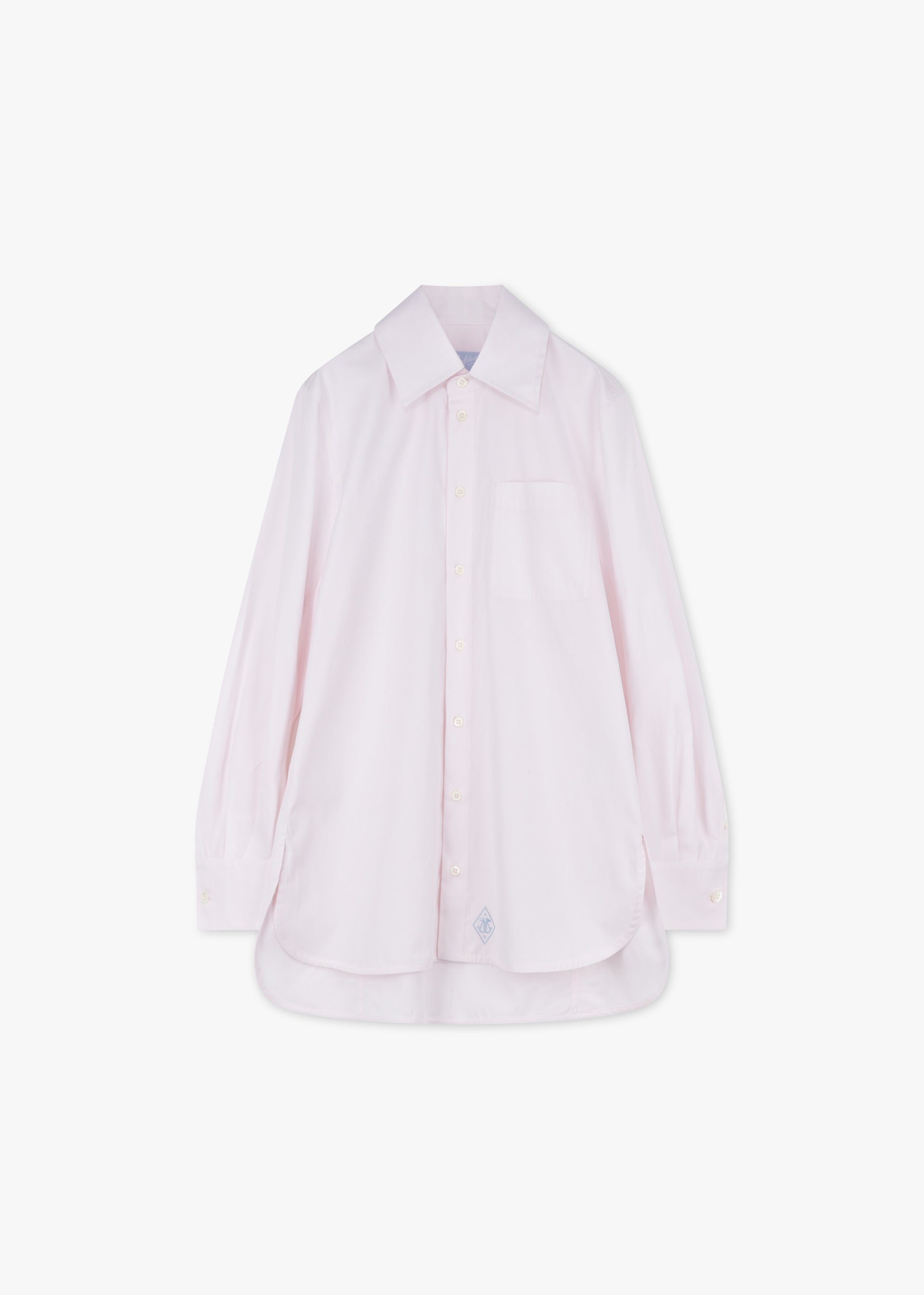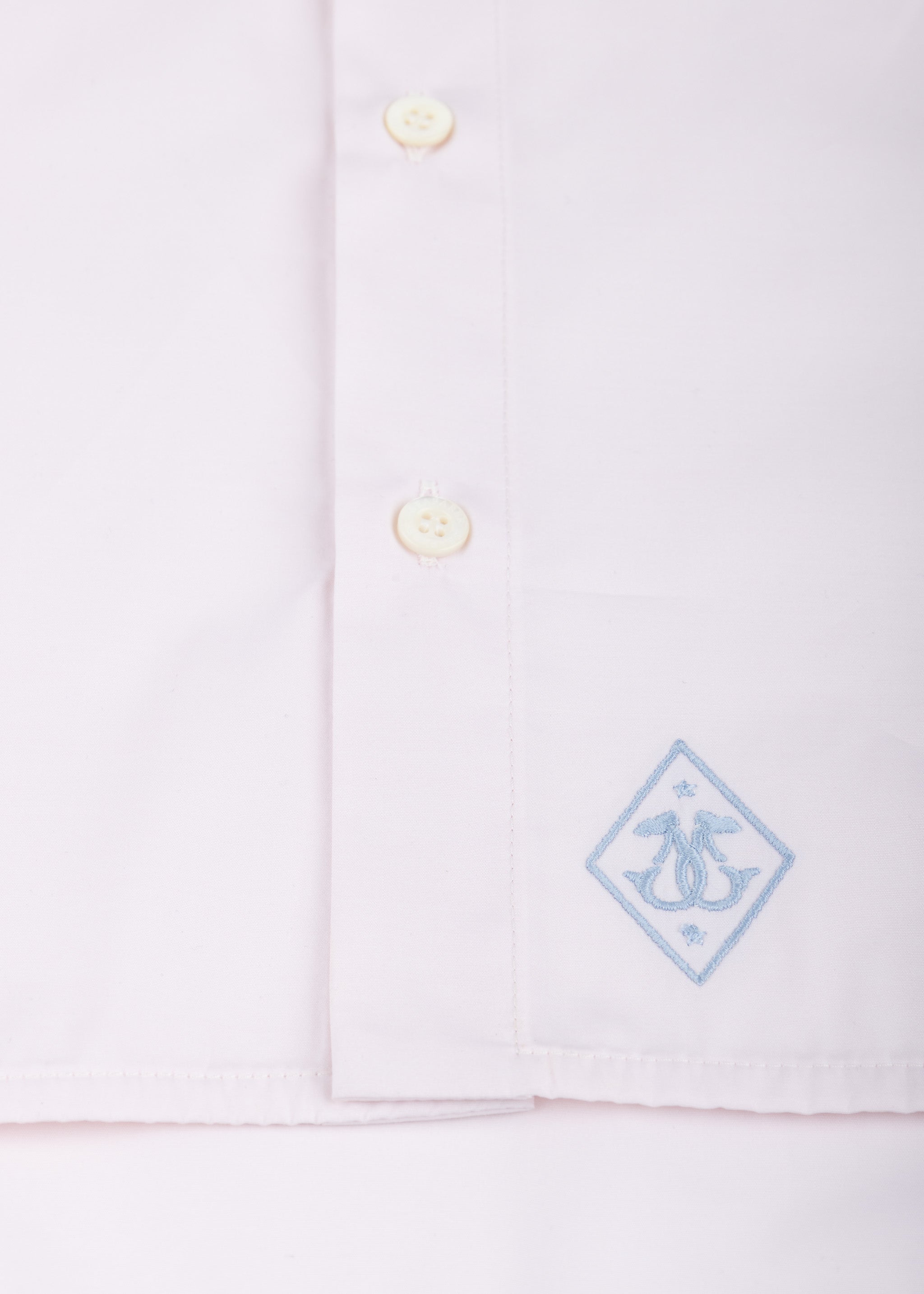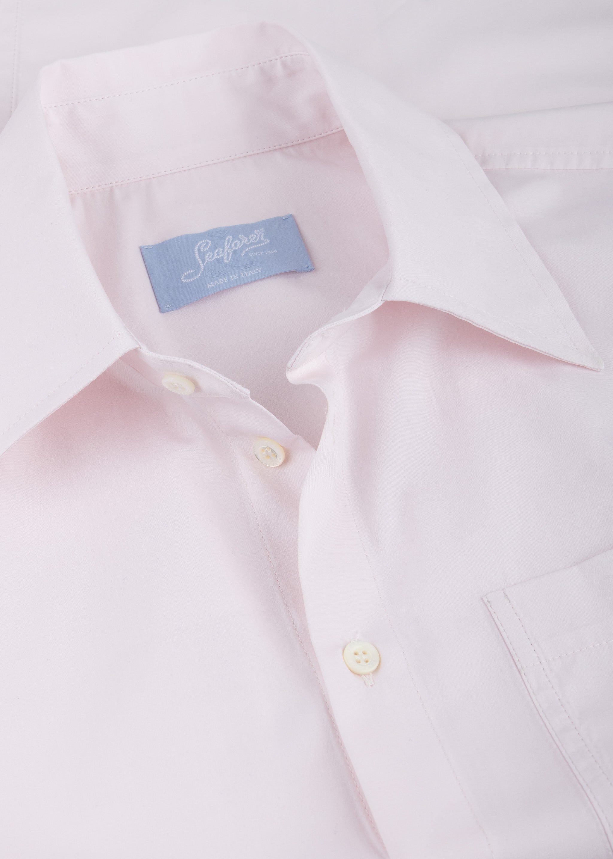 Lockere Bluse' Tara' von Seafarer aus weicher Baumwolle, spitzer Kragen, passgenaue Schultern, Rückenpasse, Knopfleiste, eine Brusttasche, lange Ärmel mit Knopfmanschetten, Vokuhila-Saum, Logo-Strickerei, feines Material.