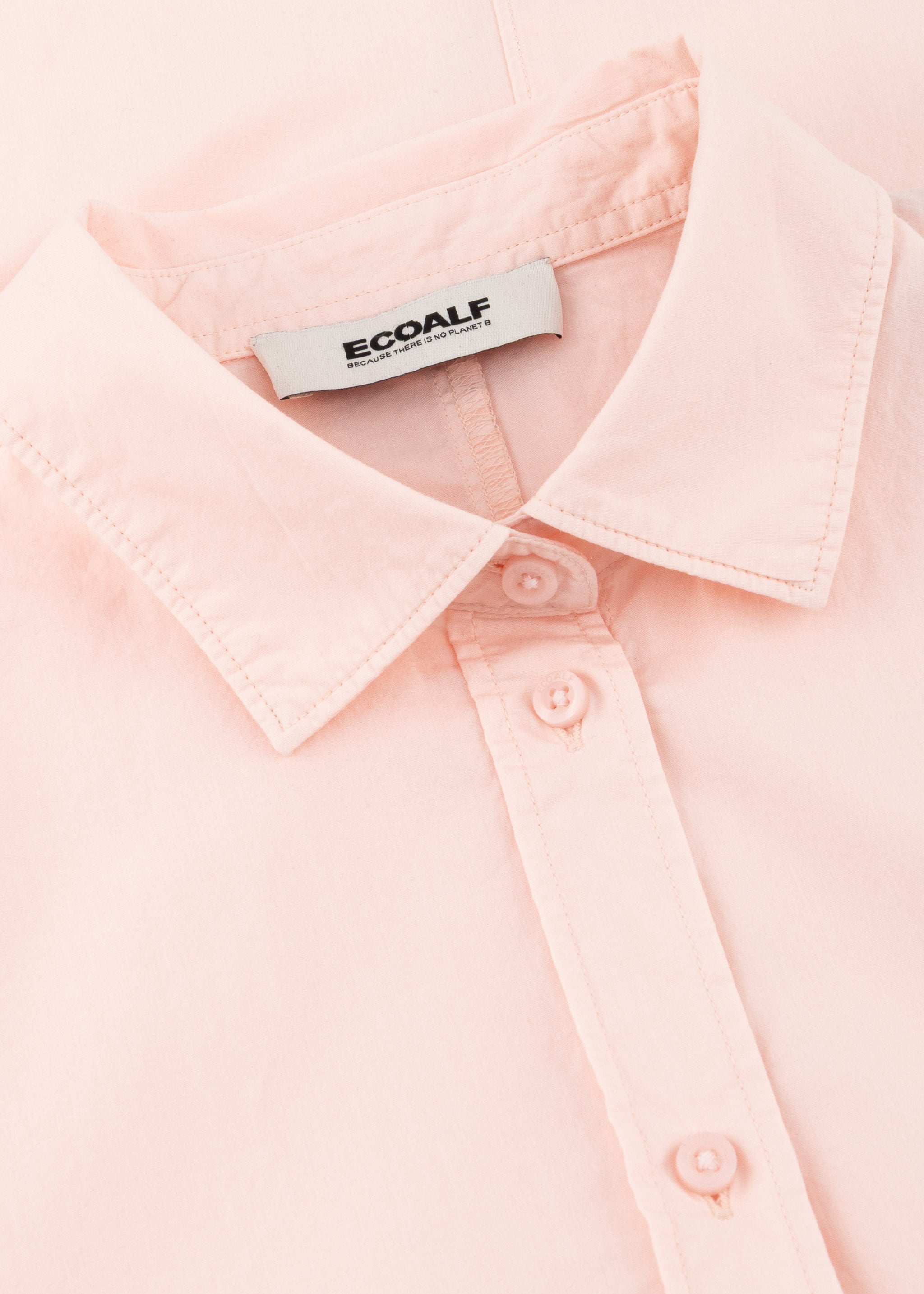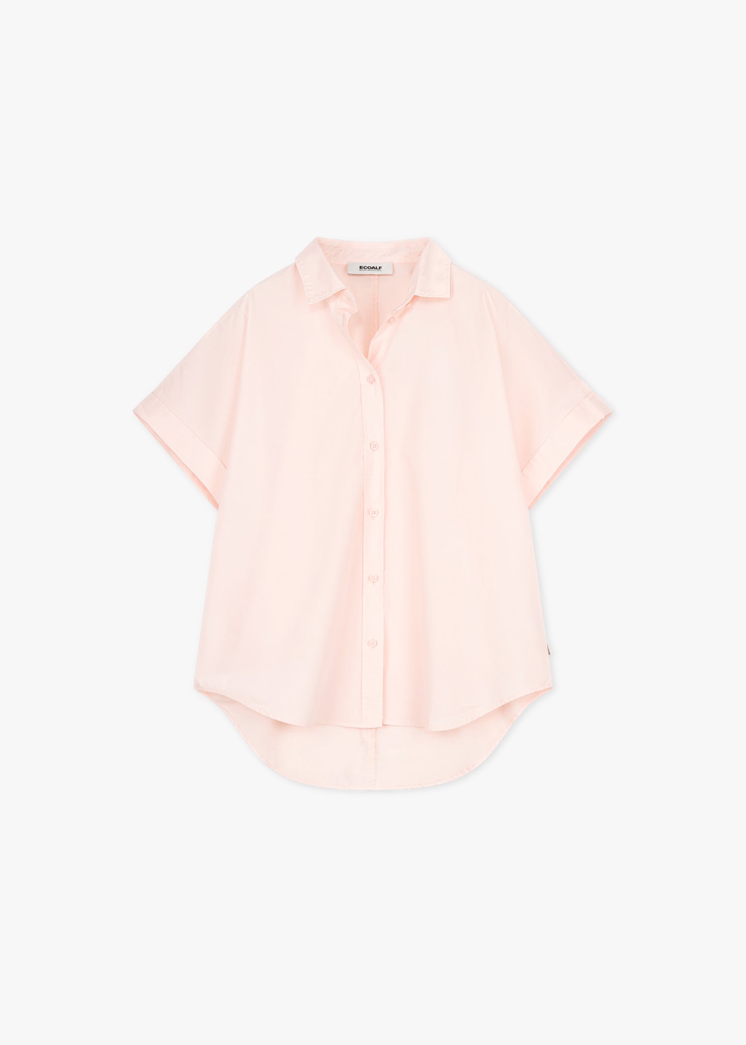 Lockere Bluse 'Isabel' von Ecoalf aus regenerativer Baumwolle, klassischer Kragen, Knopfleiste, überschnittene Schultern, kurze Ärmel mit Umschlag, Vokuhila-Saum, weicher Griff.