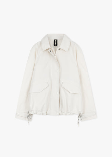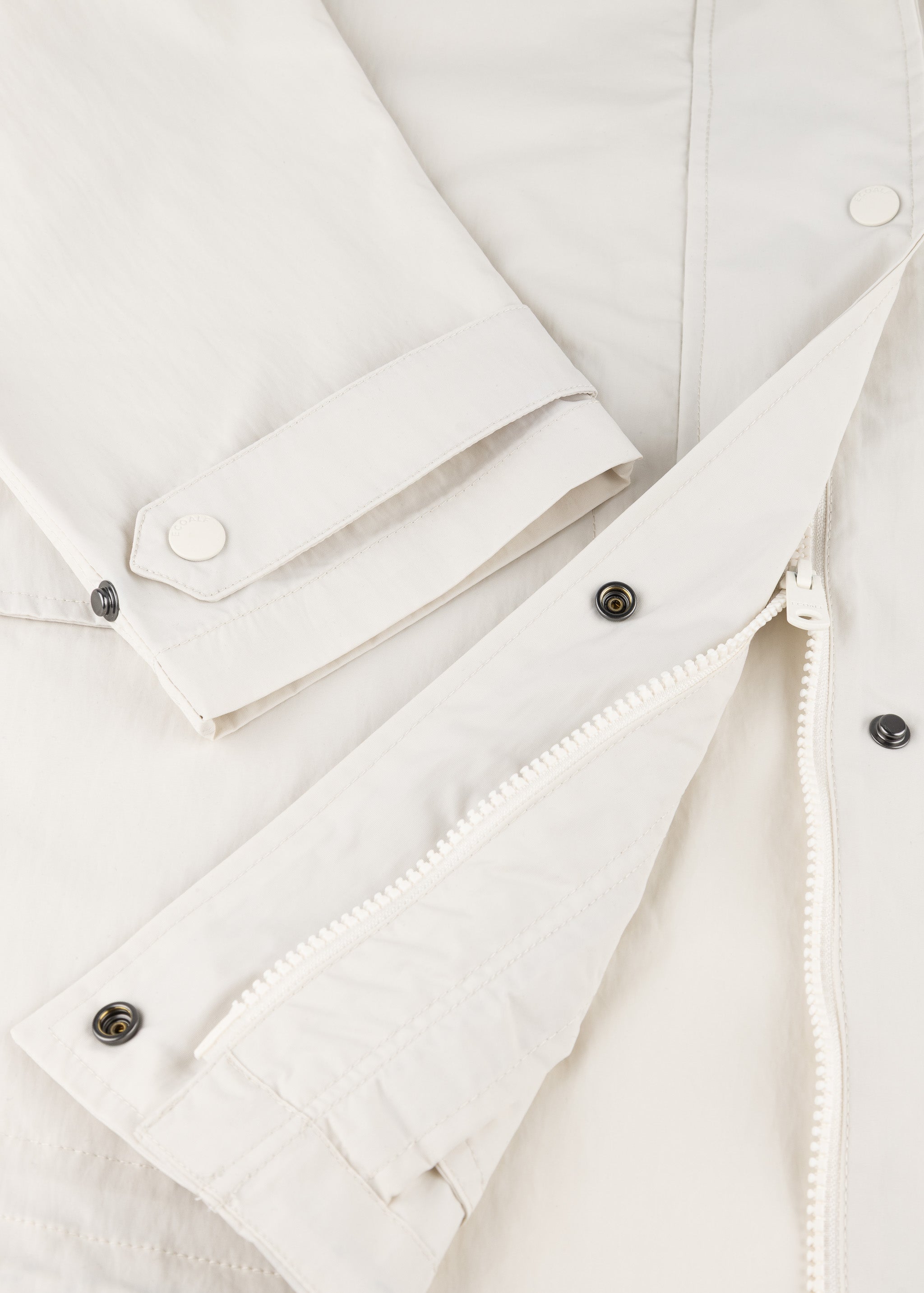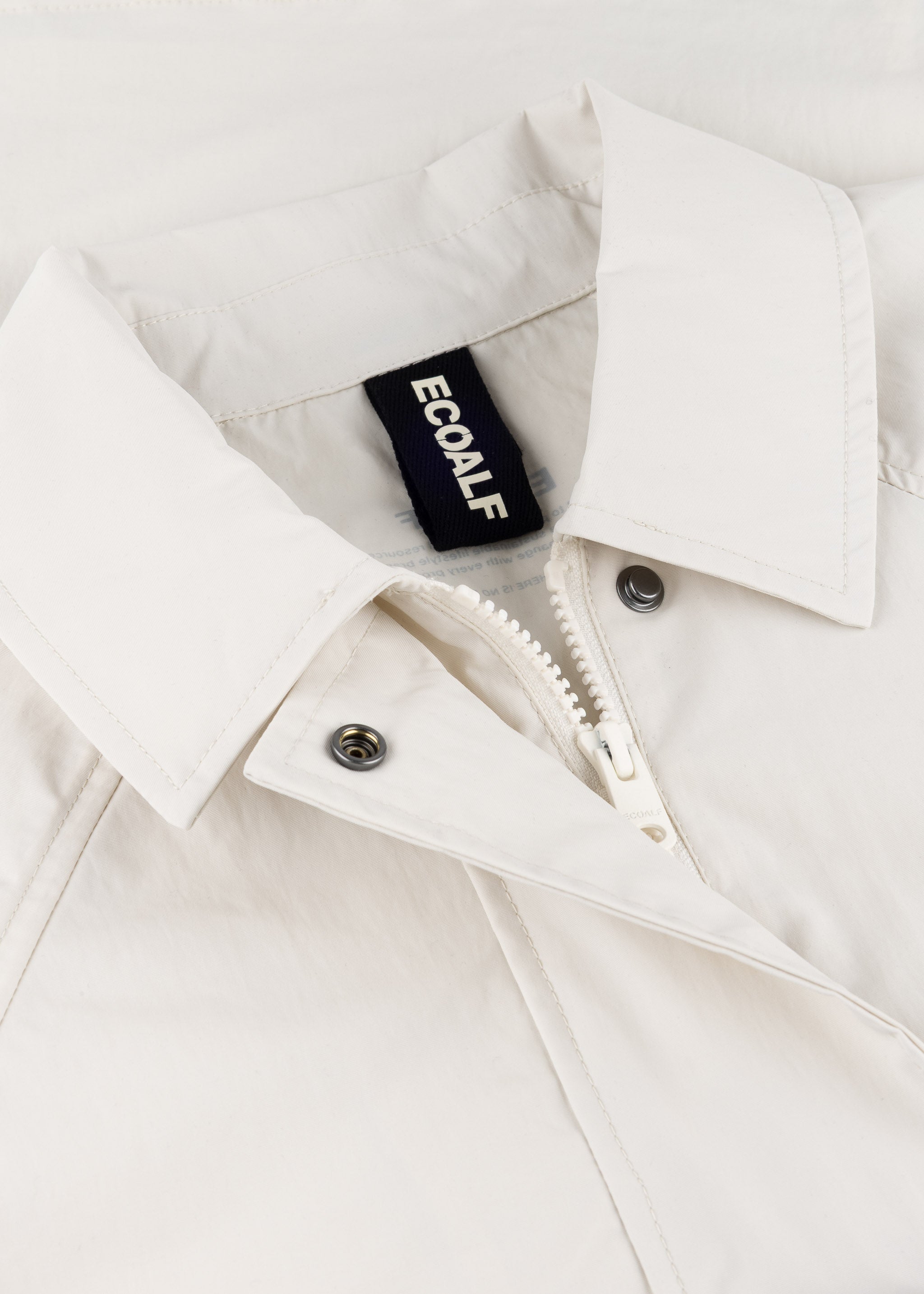 Jacke 'Major' von Ecoalf aus recycelten Nylon, klassischer Kragen, Raglanärmel mit Lasche zum Knöpfen, Zwei-Wege-Reißverschluss, verdeckte Druckknopfleiste, seitliche Patschentaschen, gerader Saum mit Tunnelzug, ungefütterte Verarbeitung.