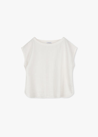 Cropped Shirt von Rosso35 aus weichem Leinen, Rundhalsausschnitt, Rückenpasse mit Quetschfalte, abgerundeter Saum mit Seitenschlitzen, leicht transparent.