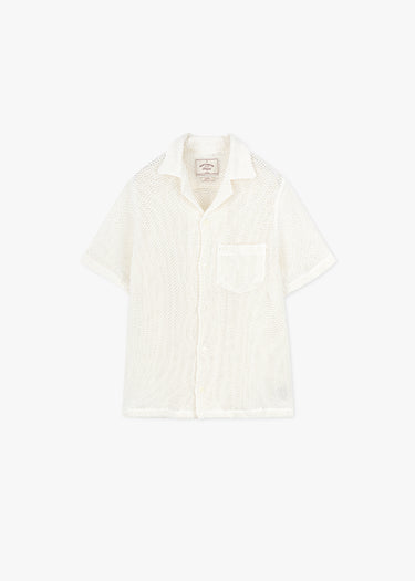Gewebtes Hemd 'Agora' im Lockstrick-Design von Portuguese Flannel, klassischer Kragen, Rückenpasse, durchgehende Knopfleiste, eine aufgesetzte Brusttasche, gerader Saum, semitransparent, bewusst locker geschnitten.