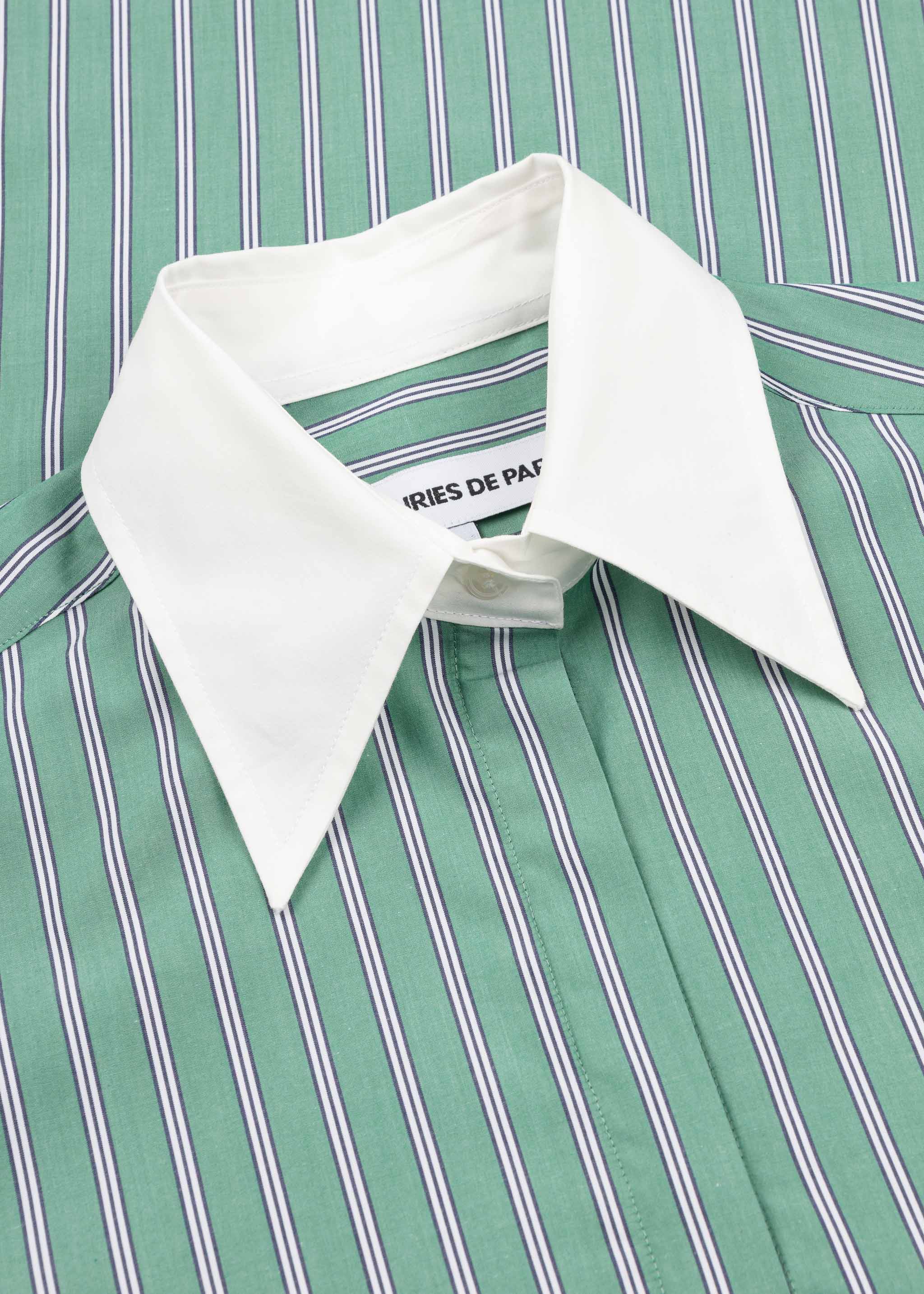 Lange Hemdbluse 'Oxford' von Les Prairies de Paris, klassischer Kragen, verdeckte Knopfleiste, leicht überschnittene Schultern, Ärmel mit Knopfmanschette, Rückenpasse mit Quetschfalte, abgerundeter Saum.