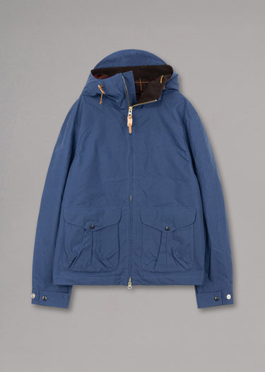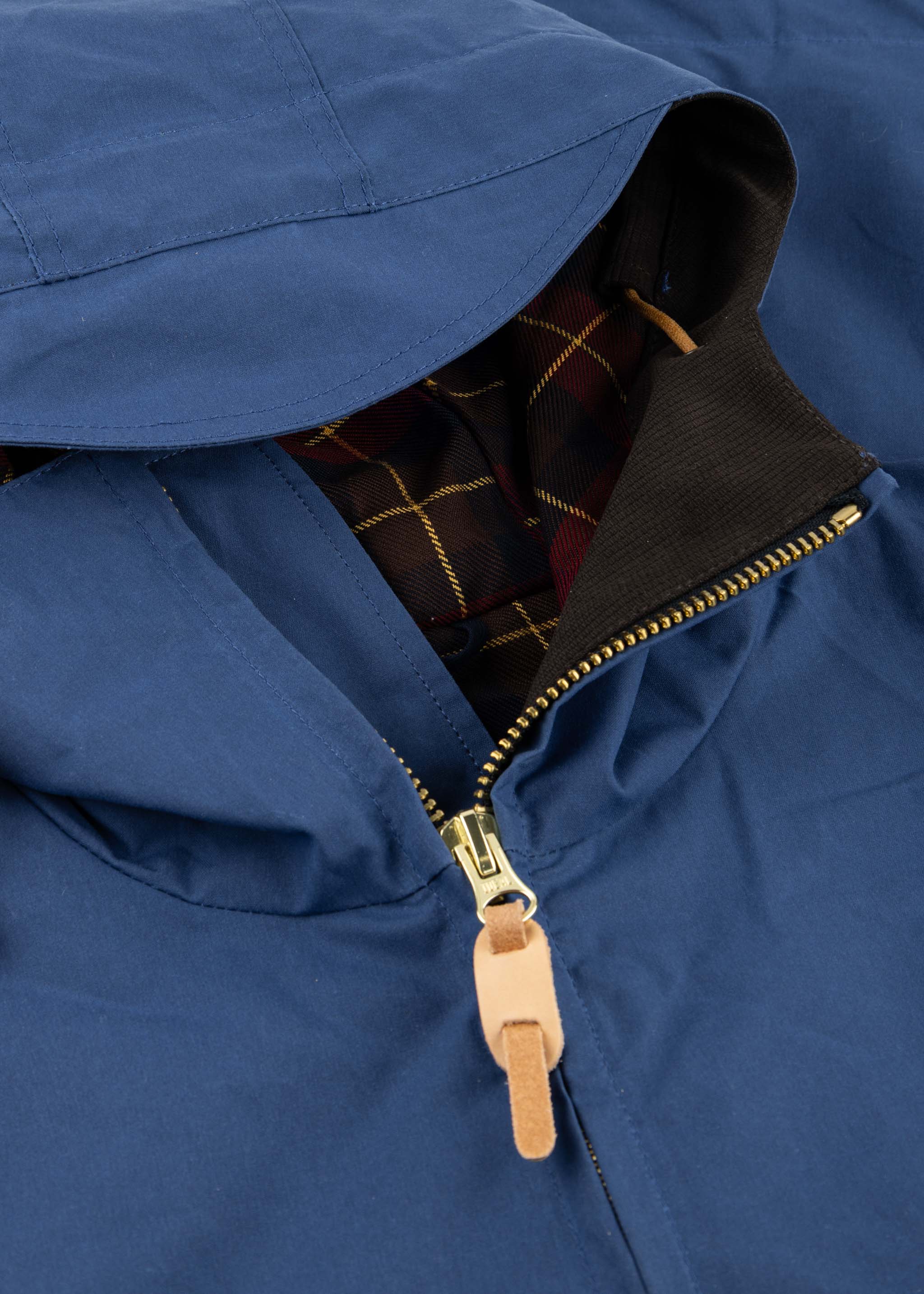 Wasserabweisende Jacke 'Rain Weekender' von Ceccarelli aus gewachster Baumwolle, Stehkragen mit Kapuze und Tunnelzug, Zwei-Wege-Reißverschluss, Knopfverschluss, lange Ärmel mit Riegel, vier aufgesetzte Pattentaschen mit seitlichem Eingriff, eine Innentasche mit Zip, kariertes Innenfutter, innenliegender Tunnelzug, gerader Saum.