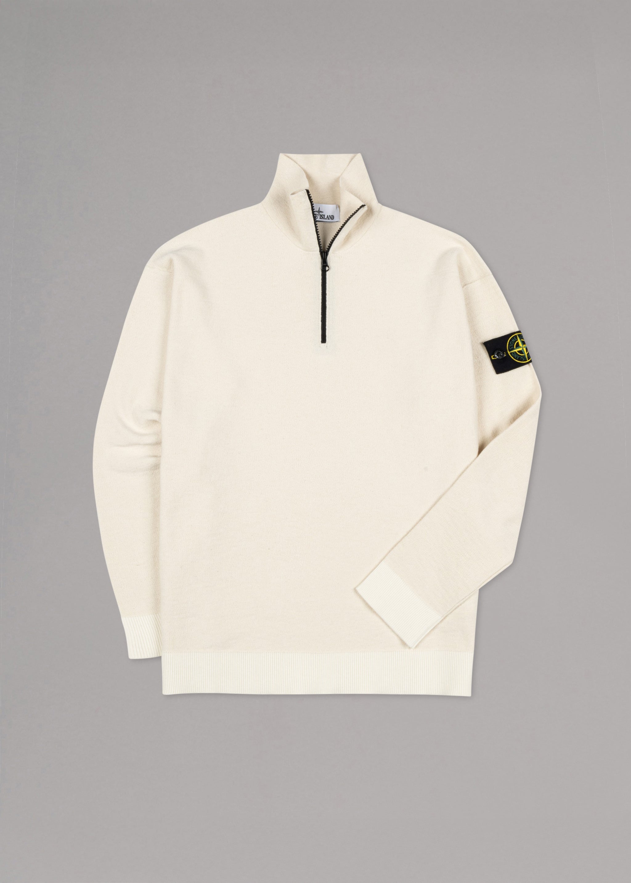 Strickpullover von Stone Island, Stehkragen mit Reißverschluss, lange Ärmel, abnehmbares Stone Island-Badge, gerippte Abschlüsse, gerader Saum.