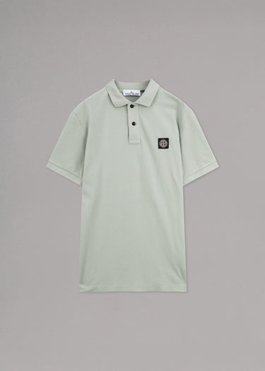 Piqué Poloshirt von Stone Island, klassischer Kragen, kurze Knopfleiste, Compass-Logo-Patch, gerippte Abschlüsse, gerader Saum.