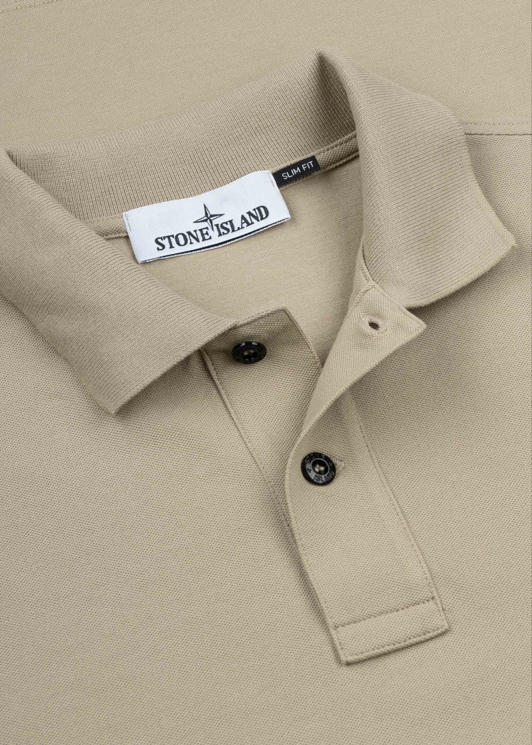 Poloshirt von Stone Island, gerippter Kragen, kurze Knopfleiste, Logo-Patch, gerippter Saum mit Schlitzen.