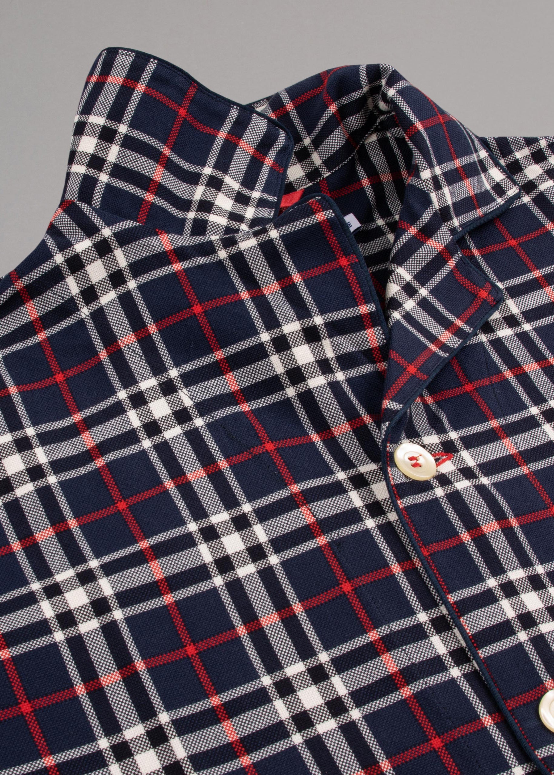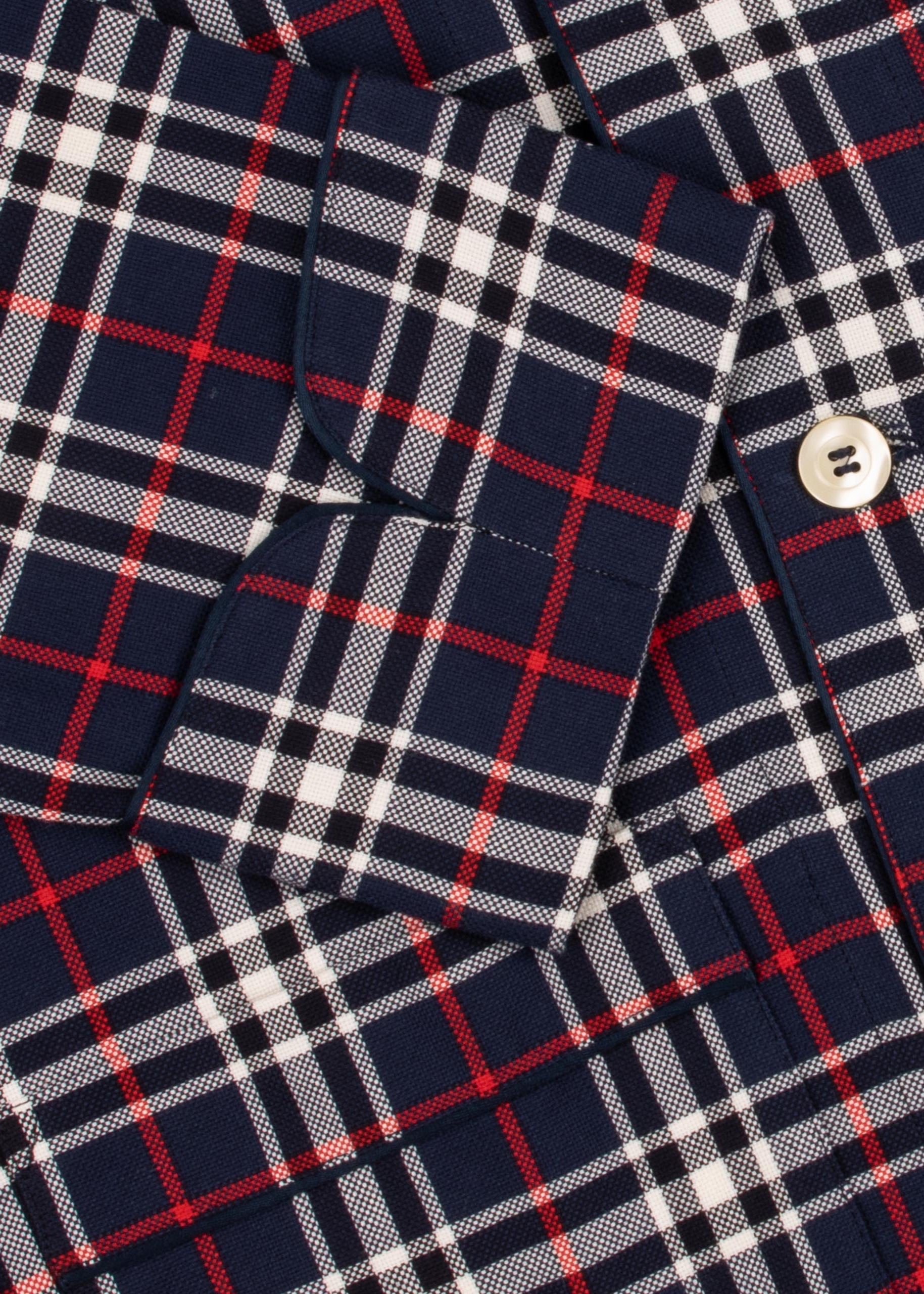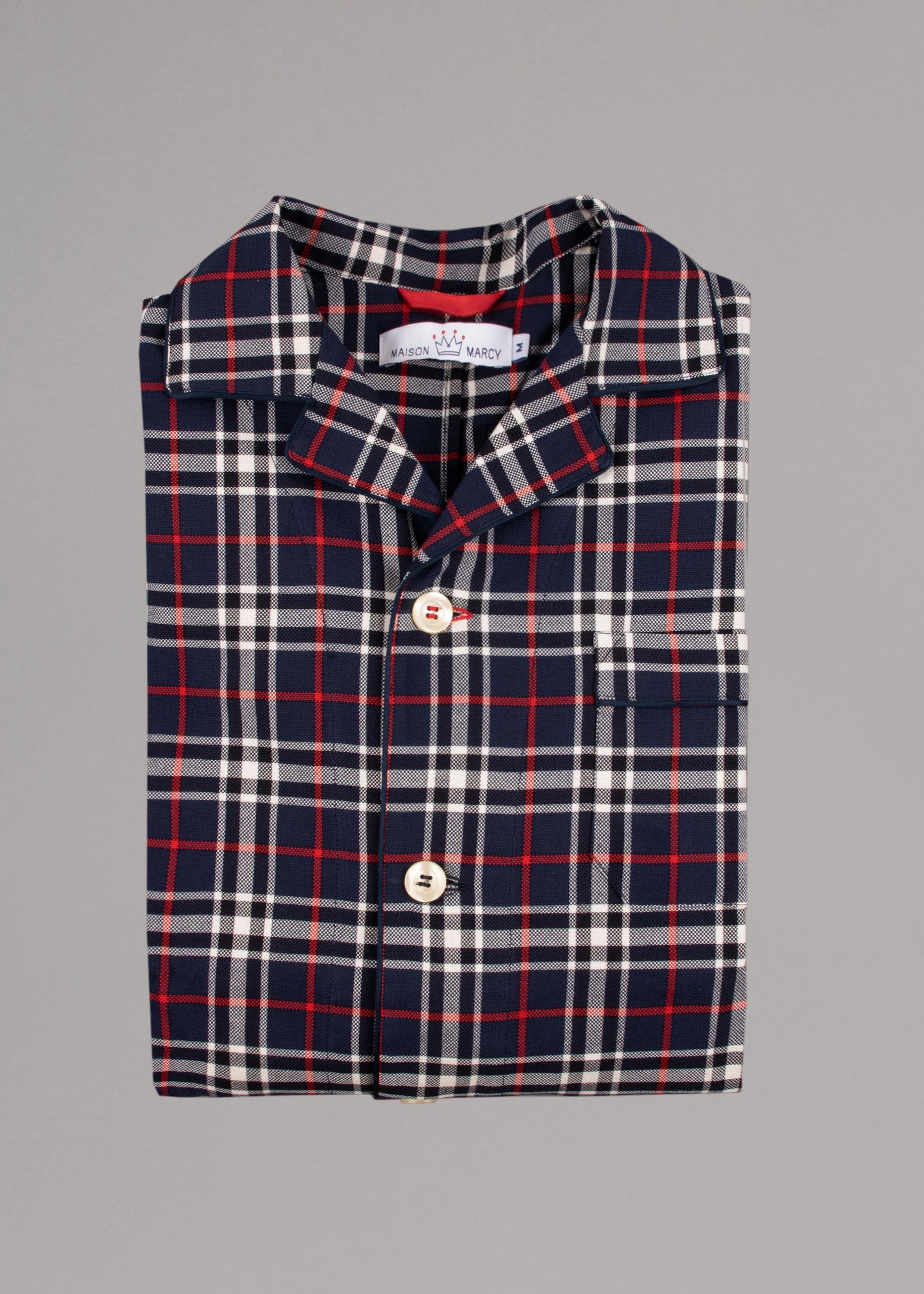 Karierter Pyjama von Maison Marcy aus Baumwolle, Reverskragen, eine Brusttasche, durchgehende Knopfleiste, Hose mit elastischem Bund und Knopfverschluss.