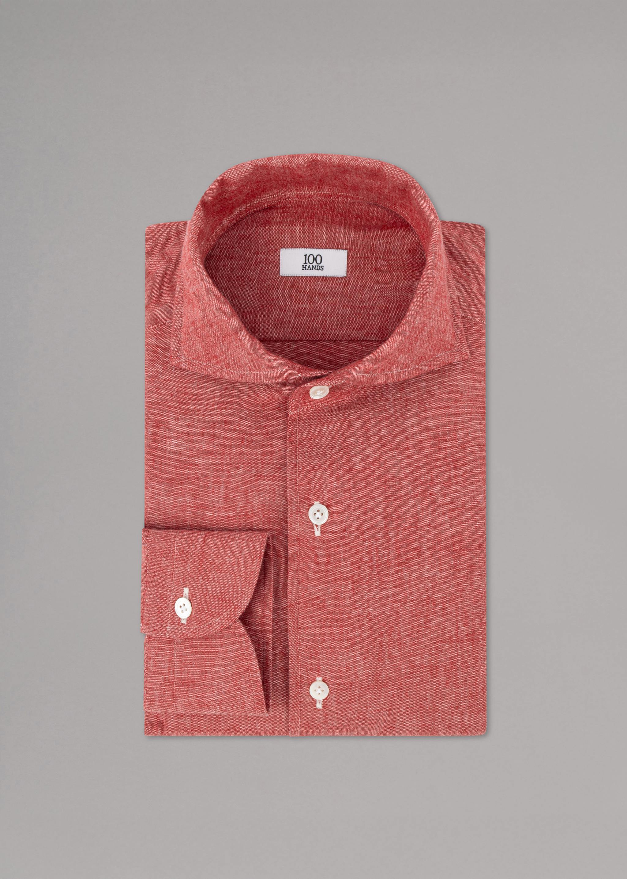 Hemd 'Shiller' von 100 Hands aus Baumwolle, Haifischkragen, durchgehende Perlmuttknopfleiste, lange Ärmel mit Knopfmanschette, Abnäher im Rückenteil, abgerundeter Saum.