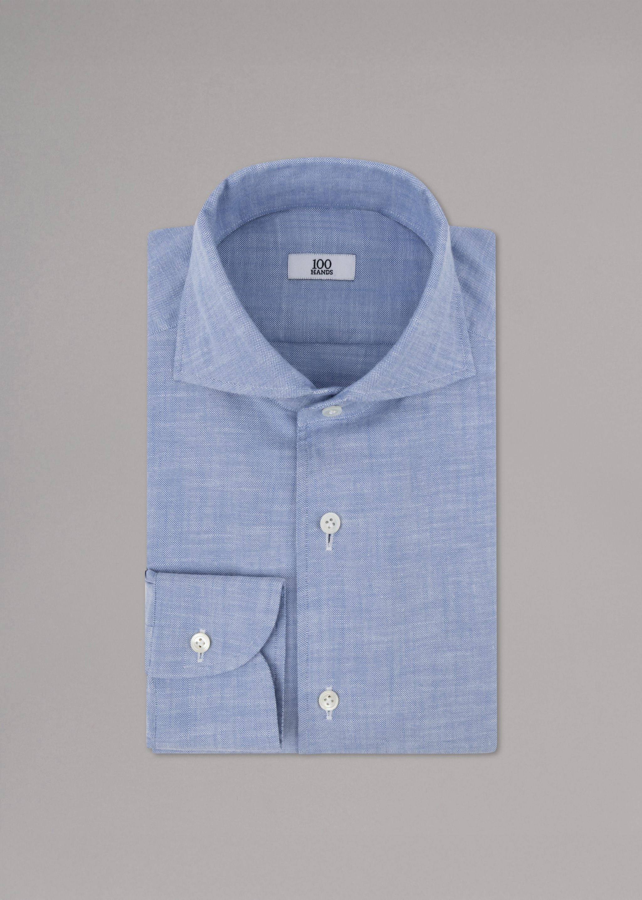 Hemd 'Shiller' von 100 Hands aus strukturierter Baumwolle, Haifischkragen, durchgehende Perlmuttknopfleiste, lange Ärmel mit Knopfmanschette, Abnäher im Rückenteil, abgerundeter Saum.
