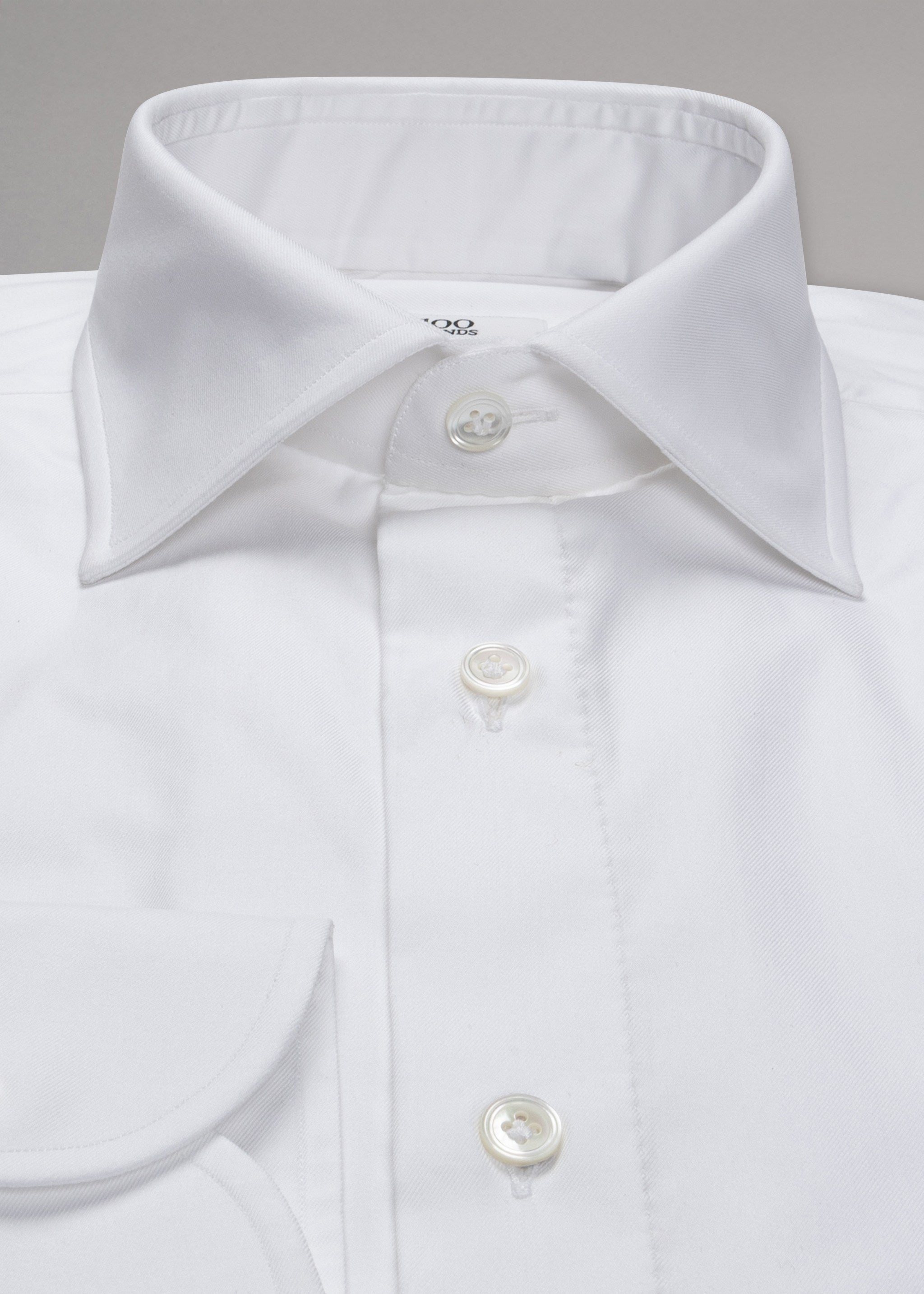 Handgefertigtes Hemd 'Shiller' von 100 Hands aus weicher Baumwolle, klassischer Kragen, durchgehende Perlmuttknopfleiste, Ärmel mit Knopfmanschette, Abnäher im Rückenteil, abgerundeter Saum.