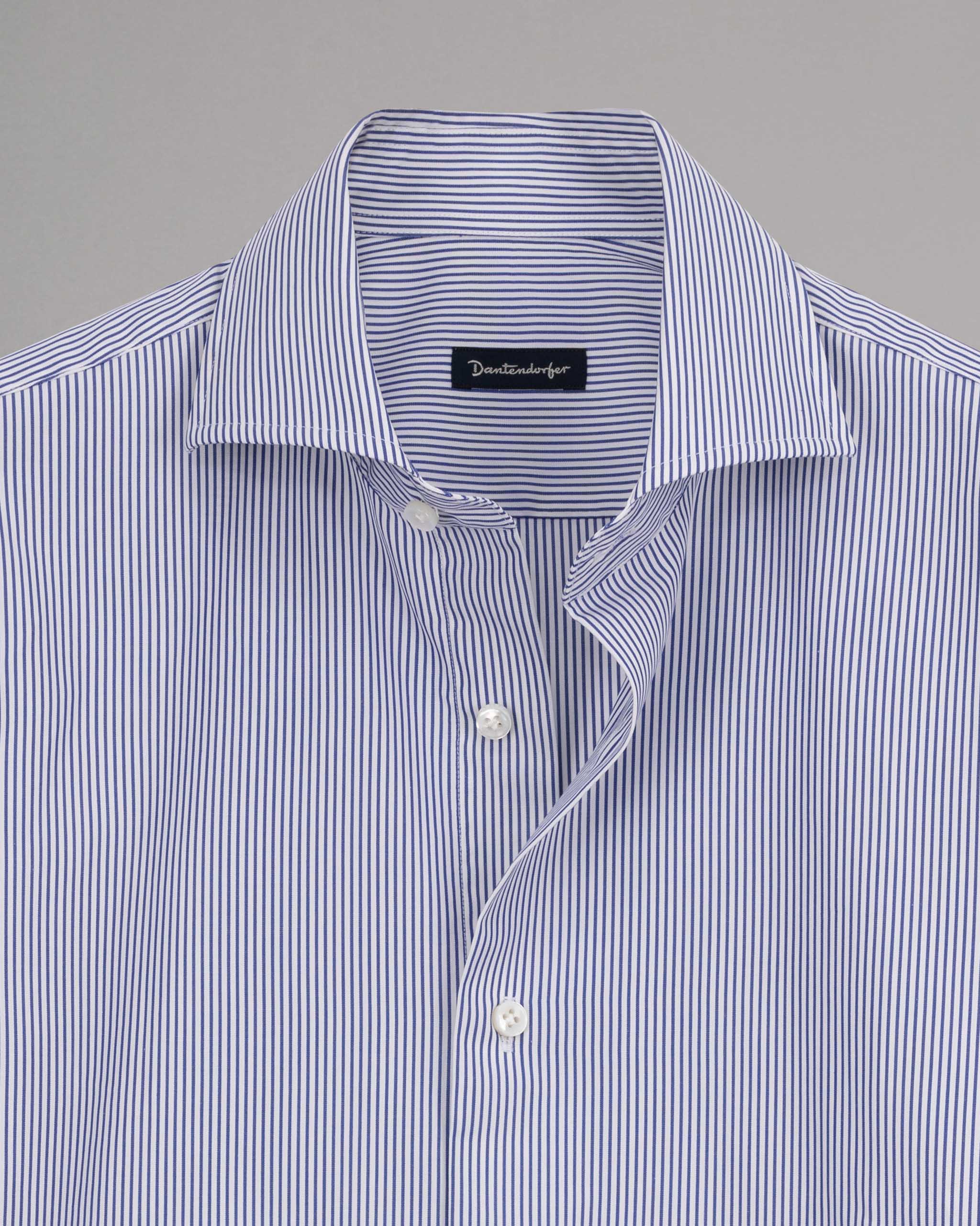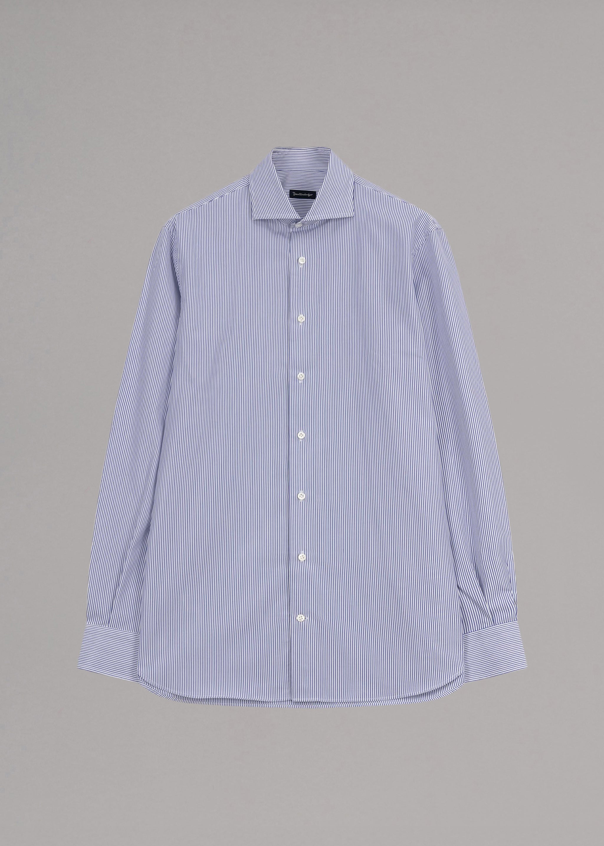 Gestreiftes Hemd von Dantendorfer, Haifischkragen, lange Ärmel mit Knopfmanschette, durchgehende Knopfleiste, abgerundeter Saum.