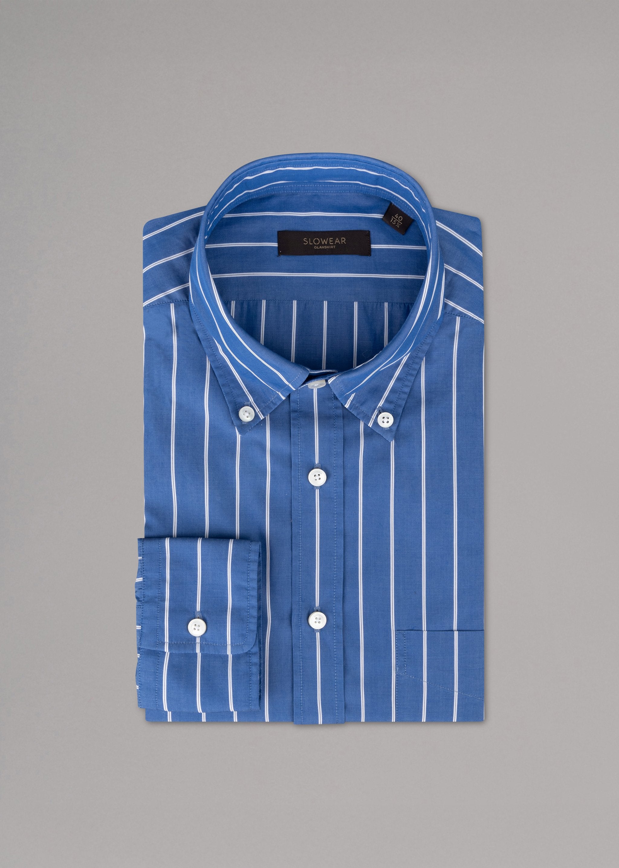 Casual-Fit Hemd von Slowear/Glanshirt aus weicher Baumwolle, Button-Down Kragen, durchgehende Knopfleiste, Ärmel mit Knopfmanschette, abgerundeter Saum.