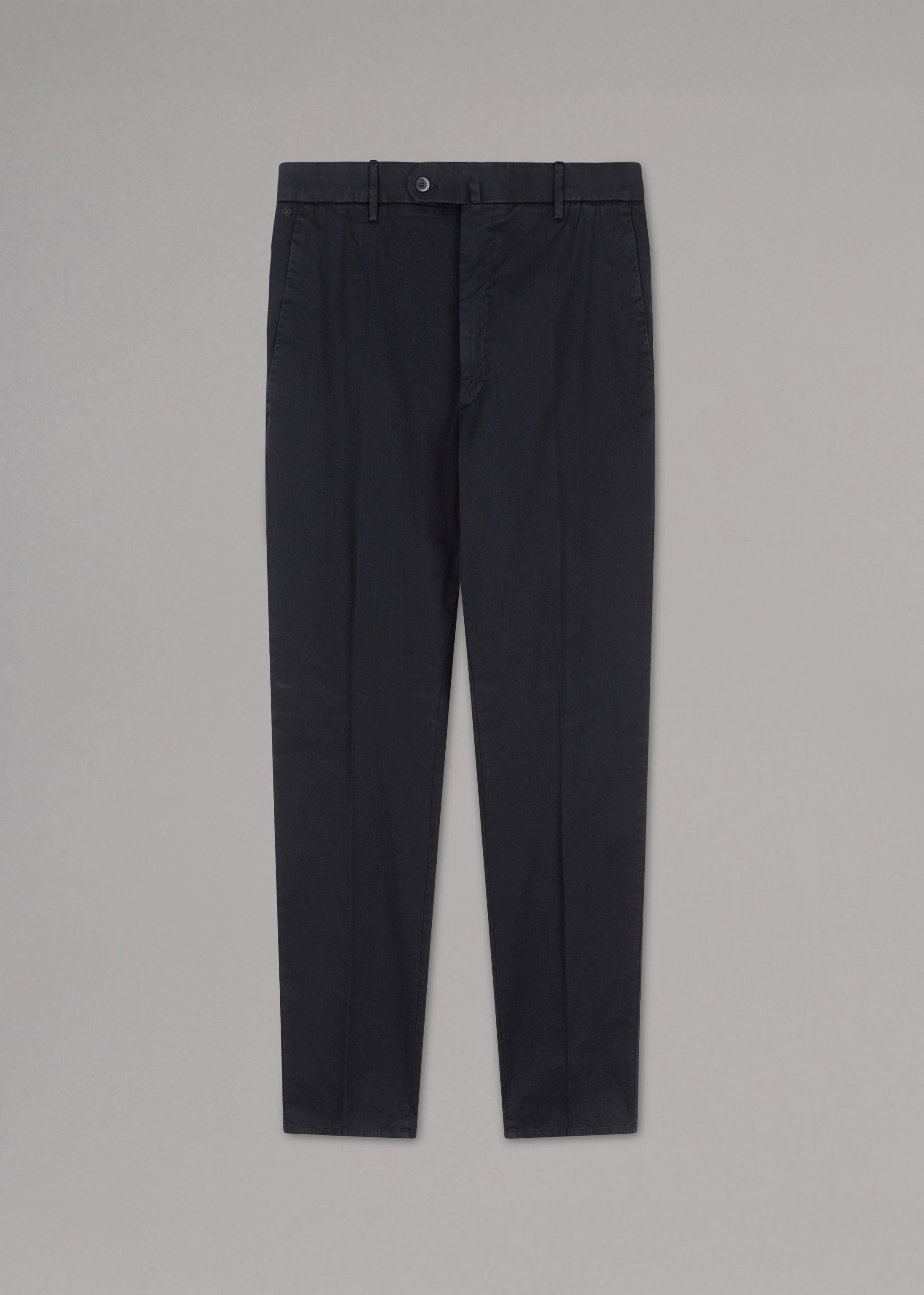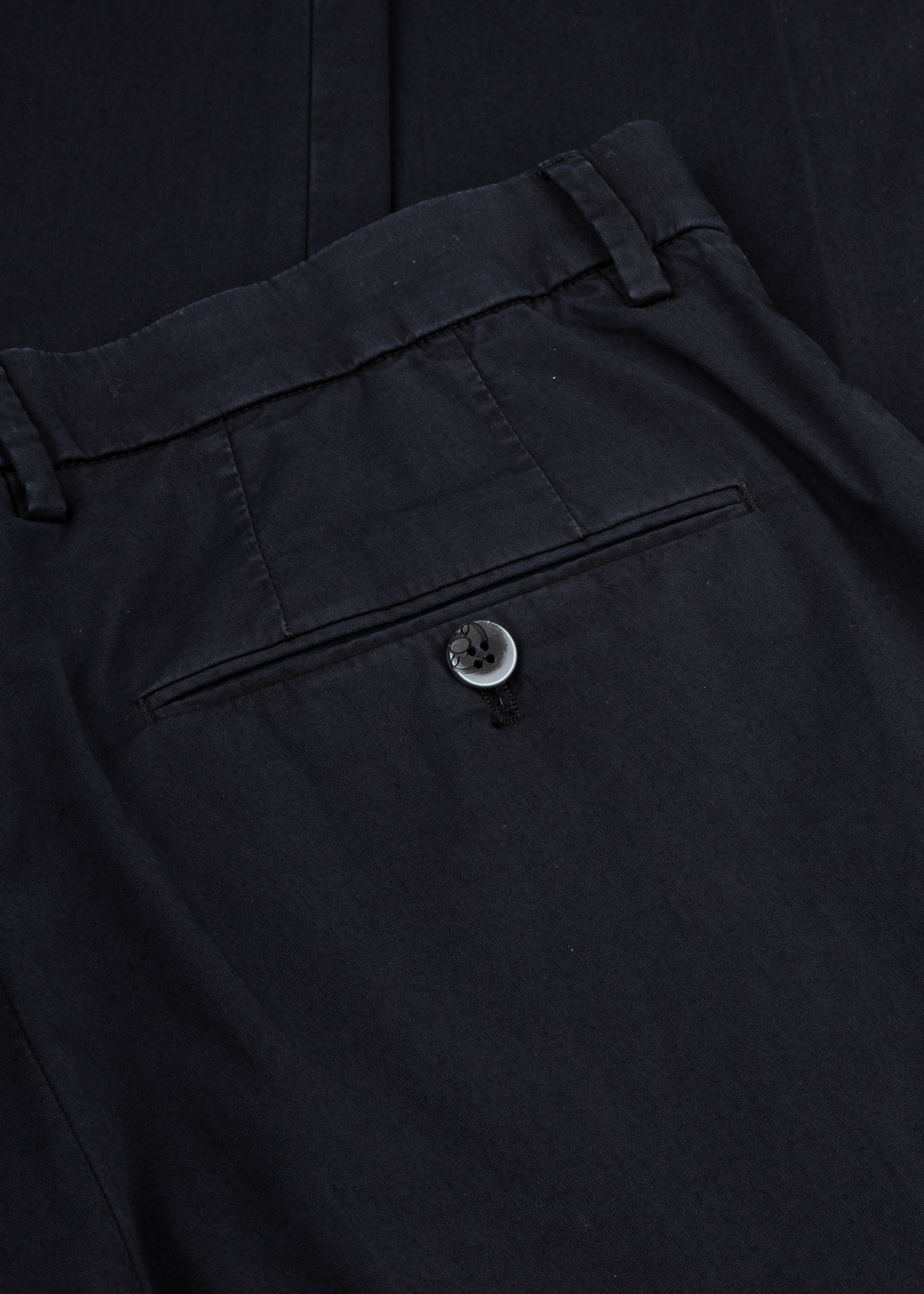 Regular-Fit Hose 'Federico' von GTA, Gürtelschlaufen, elastischer Bund mit Knopf- und Reißverschluss, Bügelfalten, seitliche Eingriffstaschen, geknöpfte Paspelgesäßtaschen.