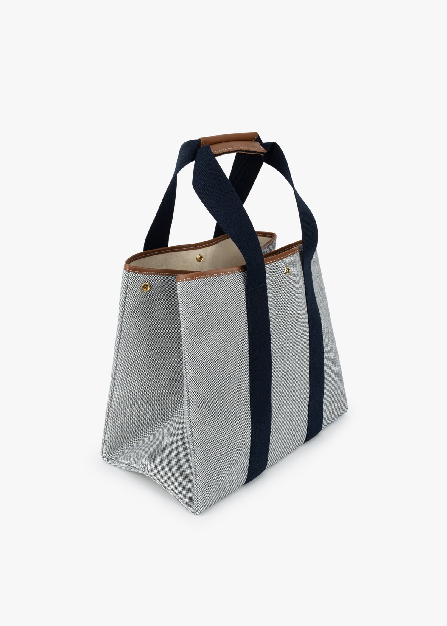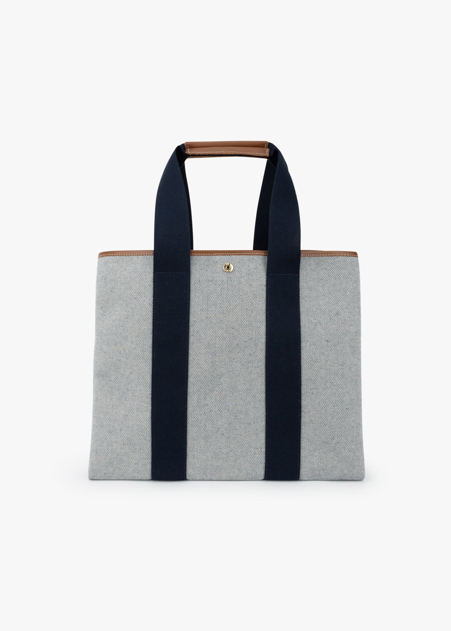 Tote Bag 'Traversée Large Oxford' von Rue de Verneuil, Henkel mit Lederdetails, goldfarbene Beschläge, zwei Innenfächer.