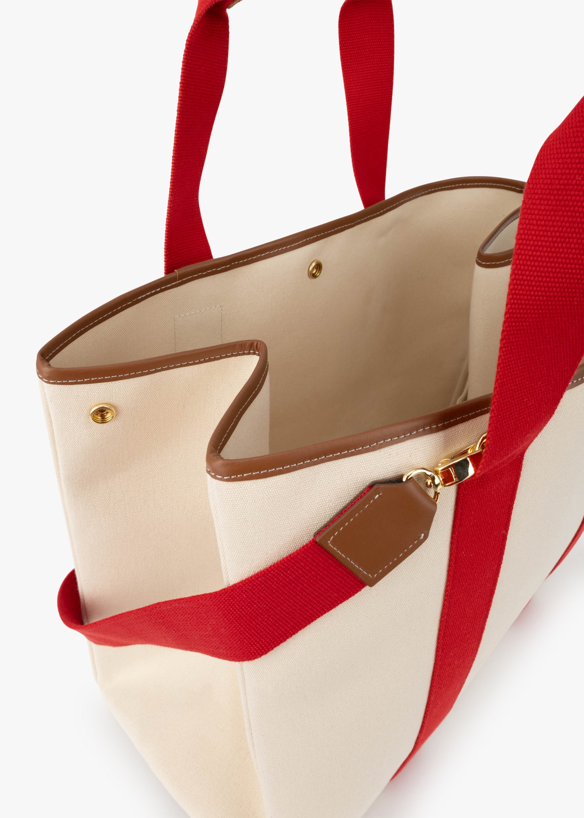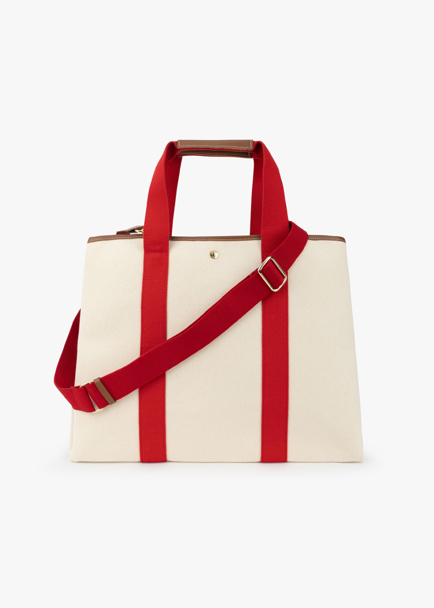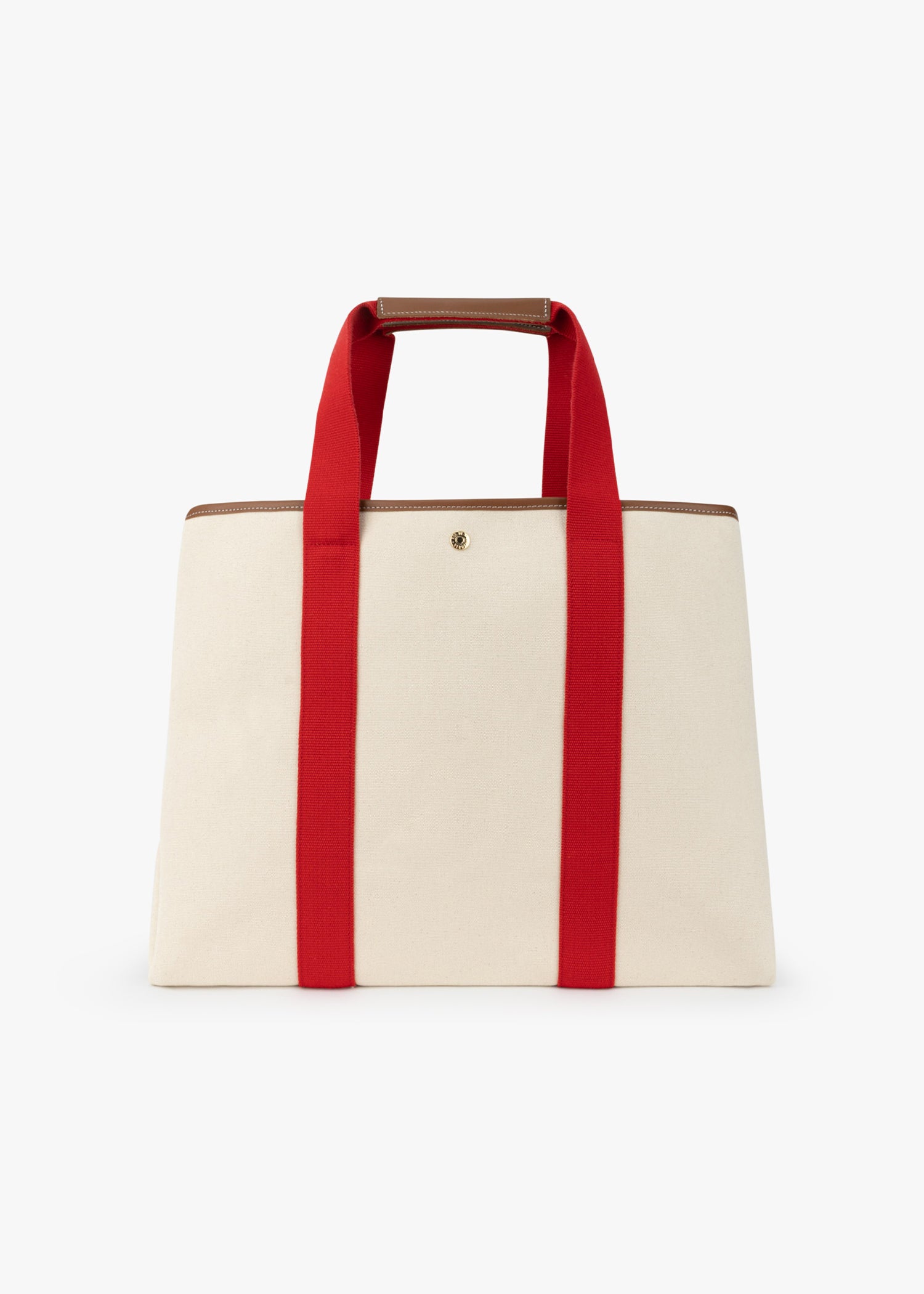 Tote Bag 'Traversée XL' Oxford' von Rue de Verneuil, verstell- und abnehmbarer Schultergut, Henkel mit Lederdetails, goldfarbene Beschläge, zwei Innenfächer.