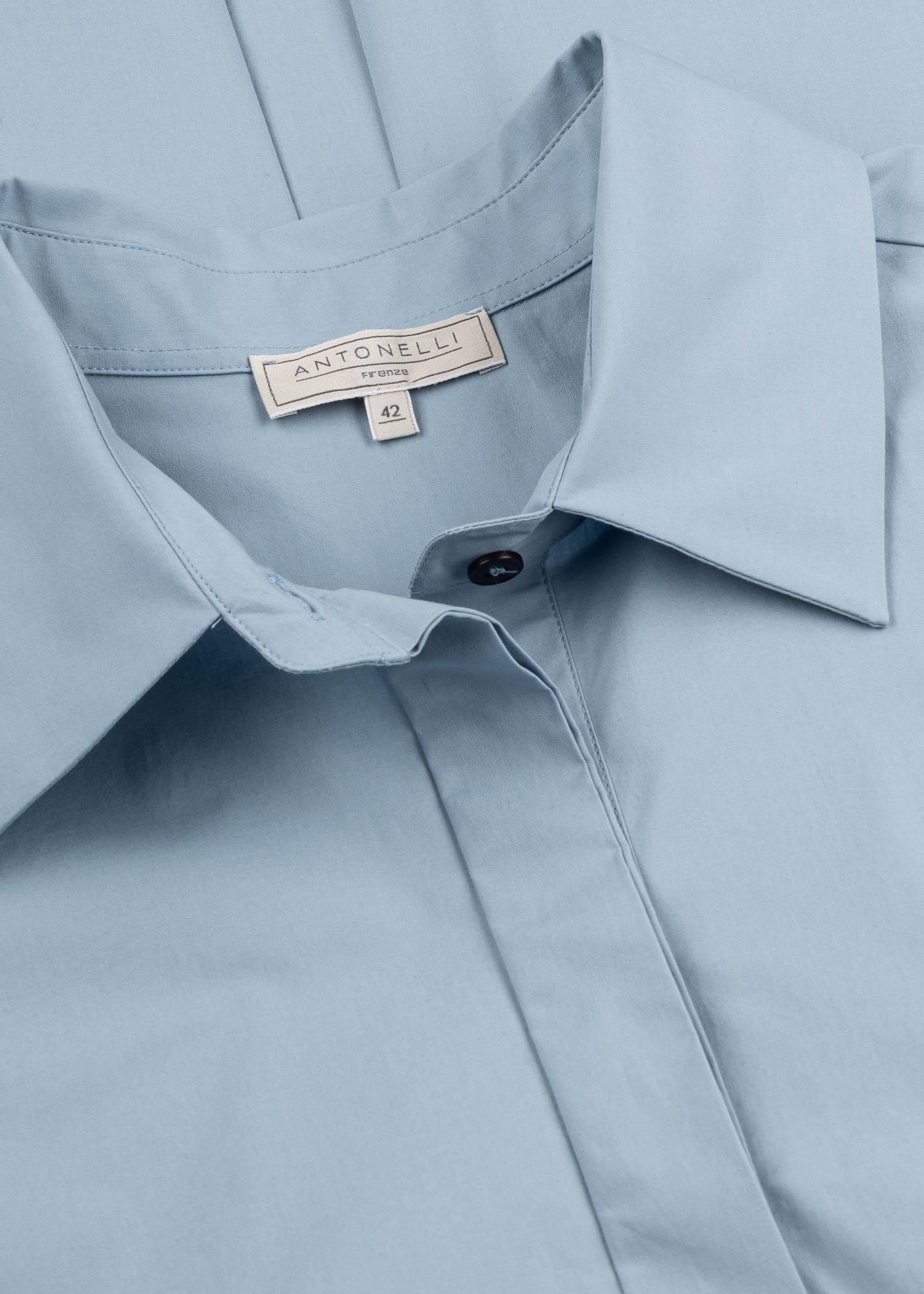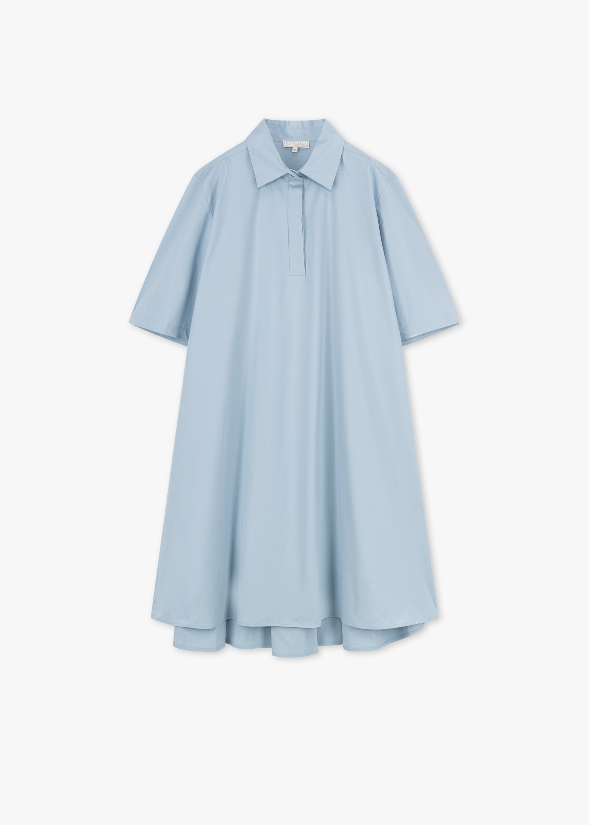 Kurzärmeliges Kleid 'Matthew' von Antonelli aus einem Baumwoll-Stretch-Mix, klassischer Kragen mit kurzer Knopfleiste, Rückenpasse mit gelegten Falten, seitliche Eingriffstaschen, Ärmel, gerader Saum.