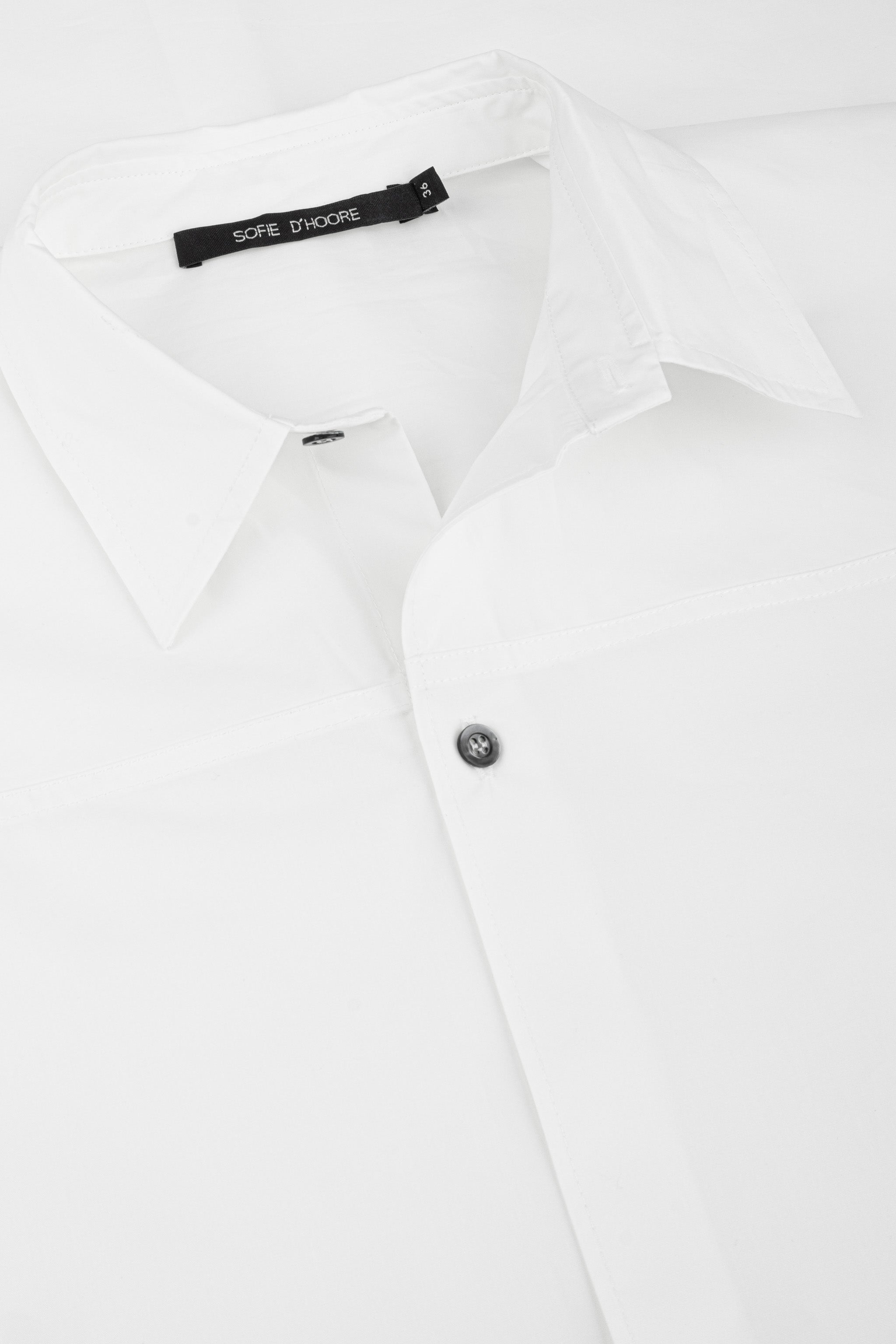 Übergroßes Hemdkleid 'Duchy' von Sofie d'Hoore aus feiner Baumwolle, klassischer Kragen, kurzärmelig, durchgehende Knopfleiste, zwei aufgesetzte Taschen, gerader Saum, weicher Griff.