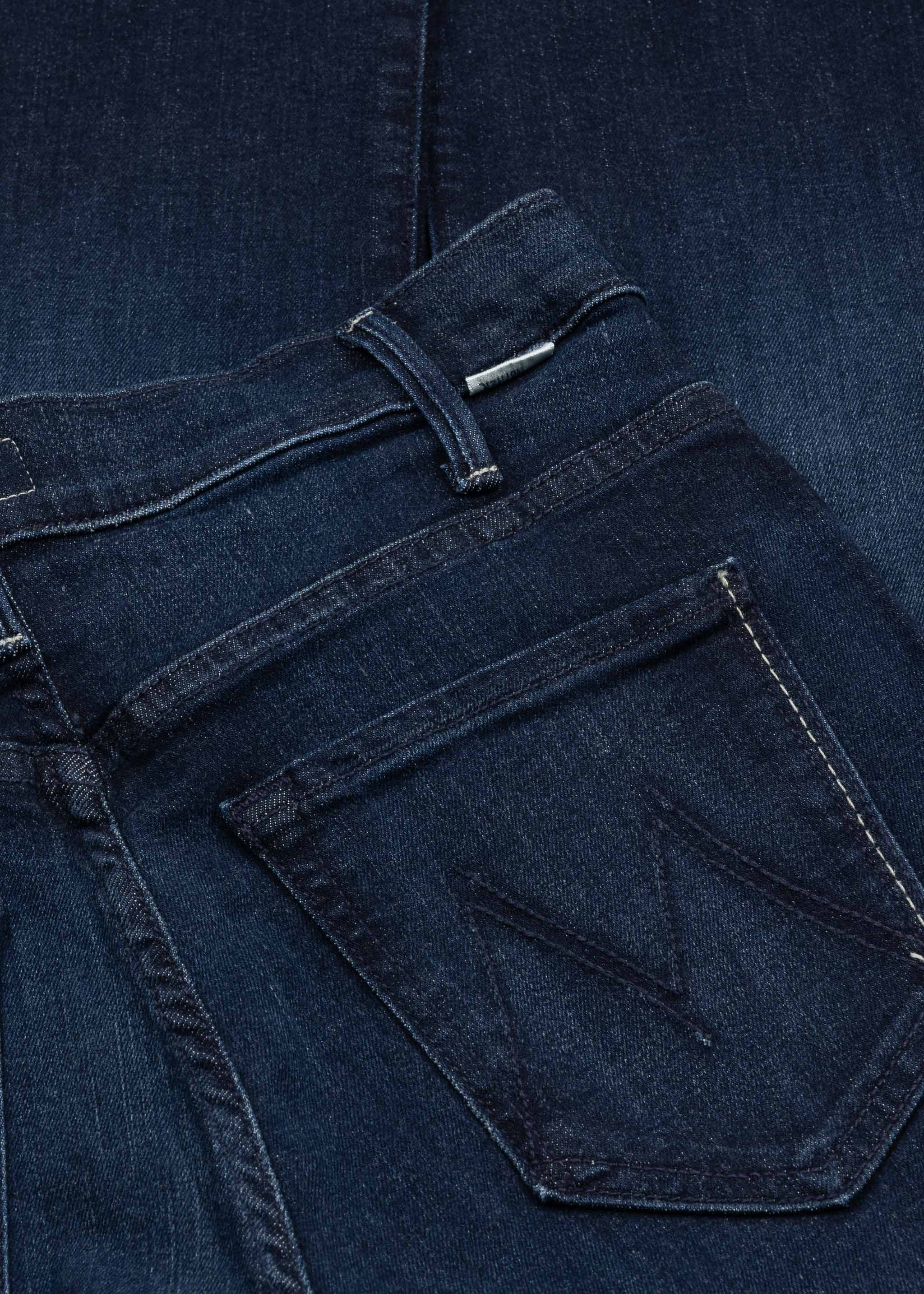 Verkürzte Jeans 'The Weekender Fray' von Mother, Gürtelschlaufen, 5 Pocket Style, Knopf- und Reißverschluss, Bügelfalten, ausgestelltes Bein, Fransensaum.