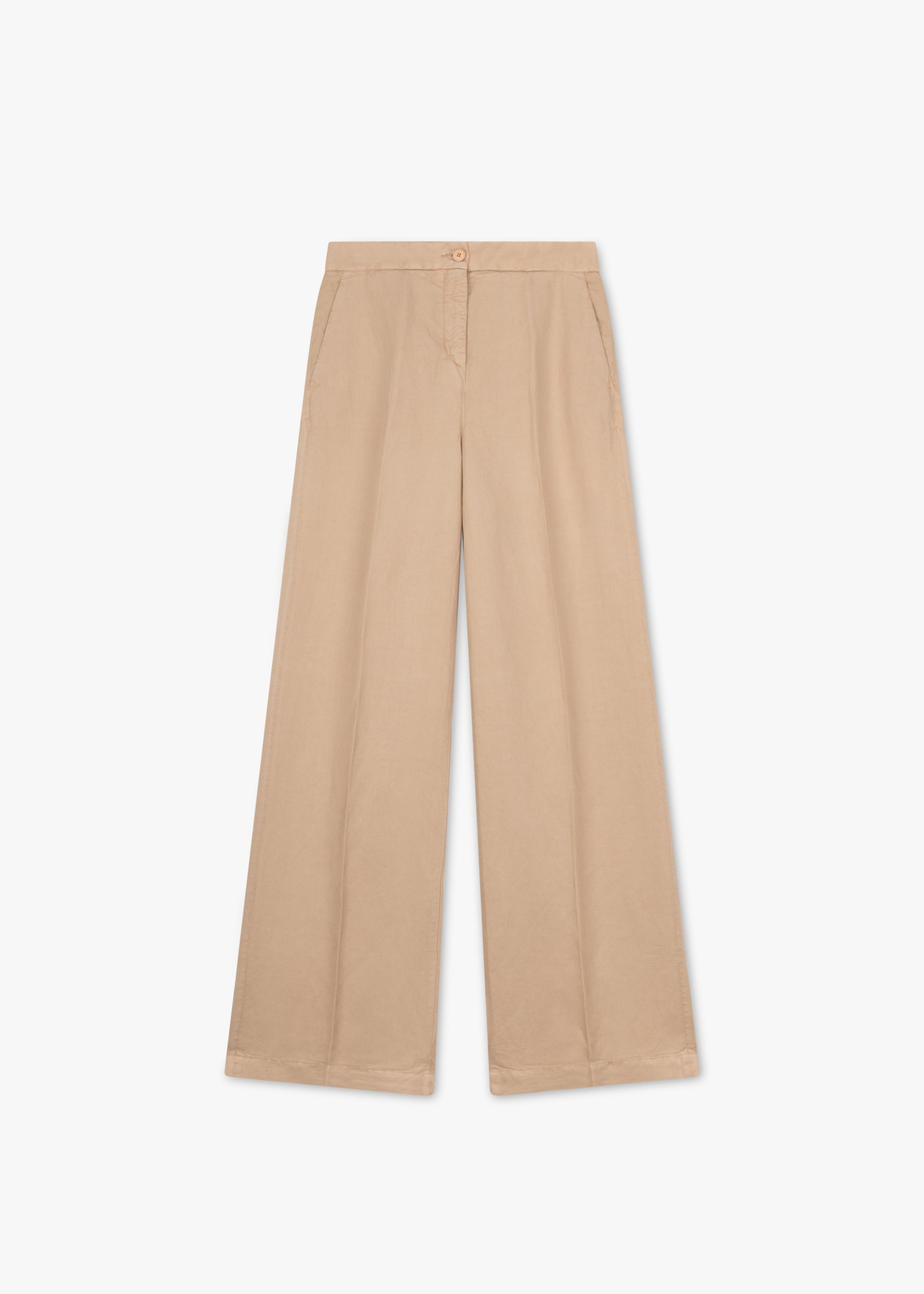 Lange Hose 'Panama' von Via Masini 80, Knopf- und Reißverschluss, Bügelfalten, Abnäher am hinteren Hosenbund, seitliche Eingriffstaschen, weites Bein, weicher Griff.